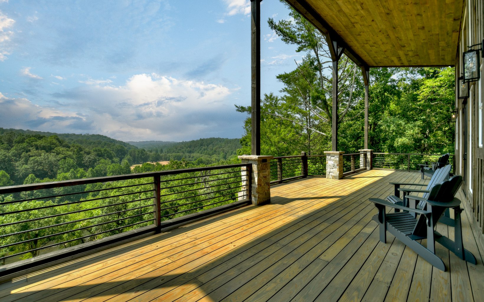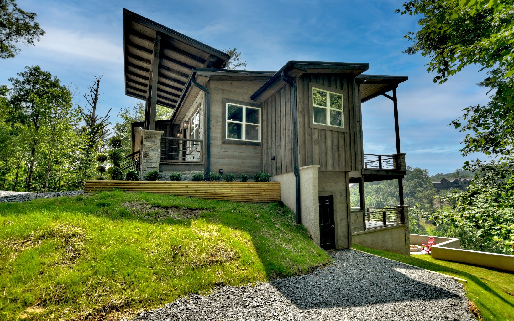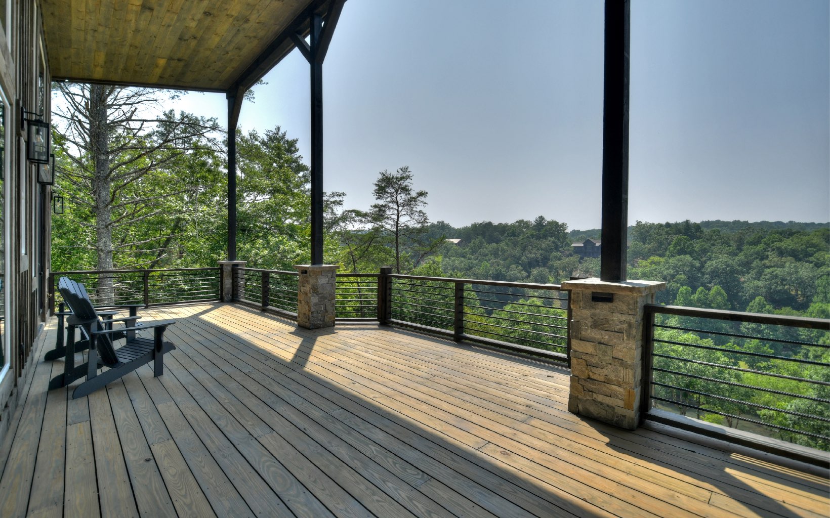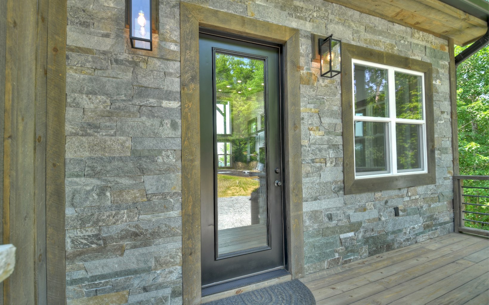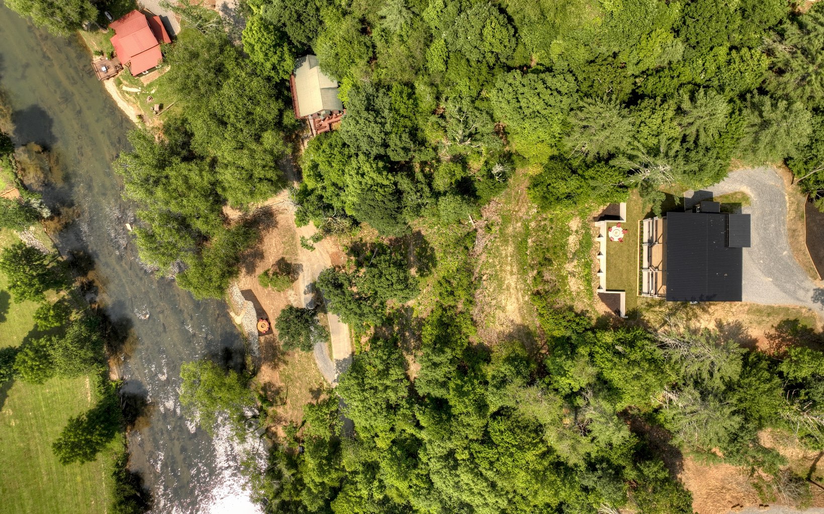 Refined Rustic Riverfront stunner with Contemporary Lines & Modern Motif in the overlooking …the Toccoa and layered mountains…this 4 bedroom/4.5 bath charmer is nestled on gorgeous wooded lot atop the mountain with long range mountain & unobstructed river views ...warm wood finishes with light & bright layout, plentiful glass & soaring ceilings, industrial and custom touches with massive steel fireplace in great room, doors open to expansive party porch with outdoor firepit, two spacious masters feature ensuite "spa feel" bathrooms with eye catching tile, upscale fixtures & soaking tub, stainless appliances & granite counters w spacious cabinetry, modern lighting & beam work enhance the flow of the cozy but open floorpan, full finished terrace level offers split guest quarters, spacious den/rec room, wet bar, storage & entertaining porch with outdoor …kitchen…uniquely inviting with low maintenance landscape and yard area, riverside firepit & stone steps into the water…15 minutes to historic downtown & move in ready…bring your fishing poles and kayaks…this is one you'll want to see!