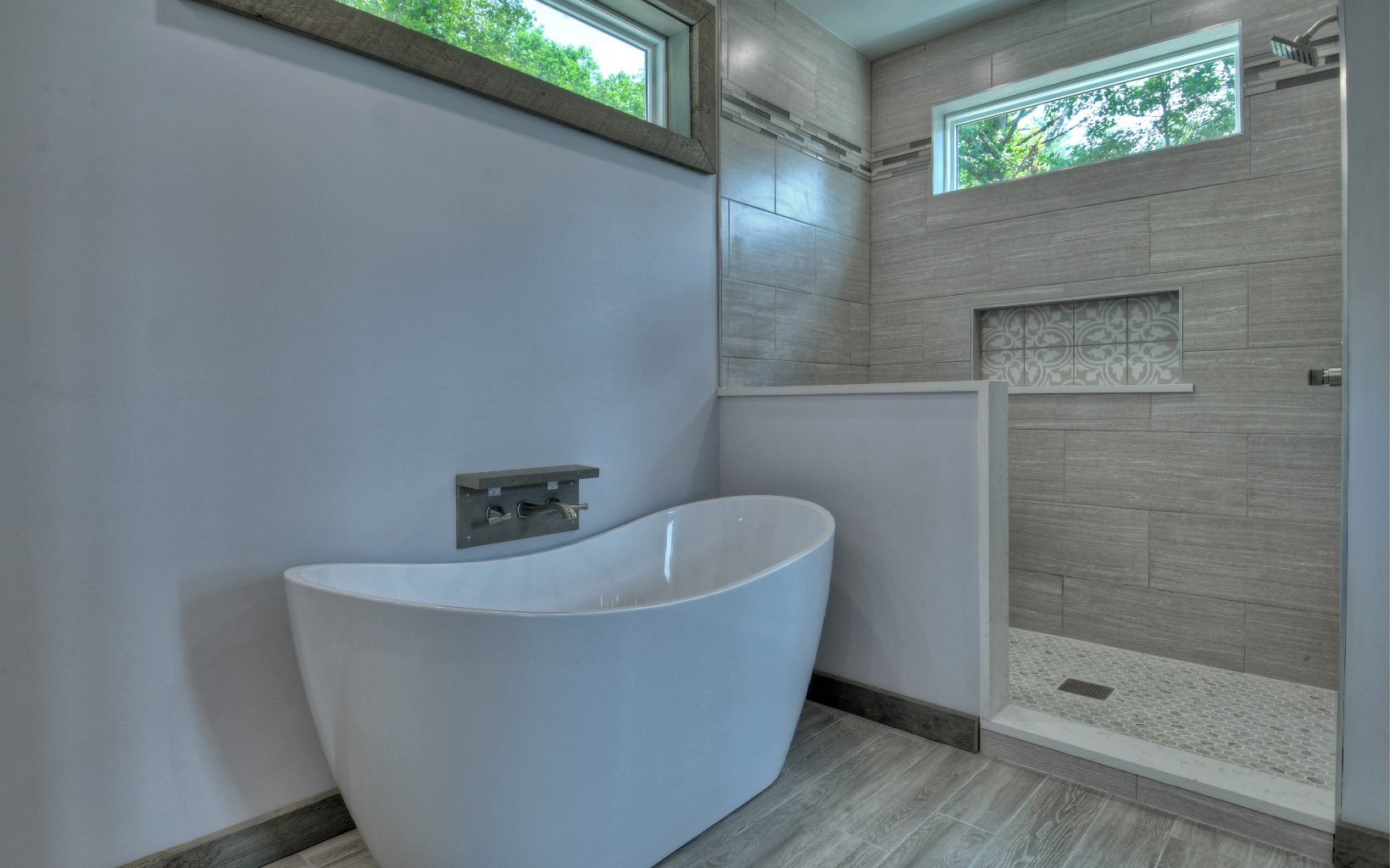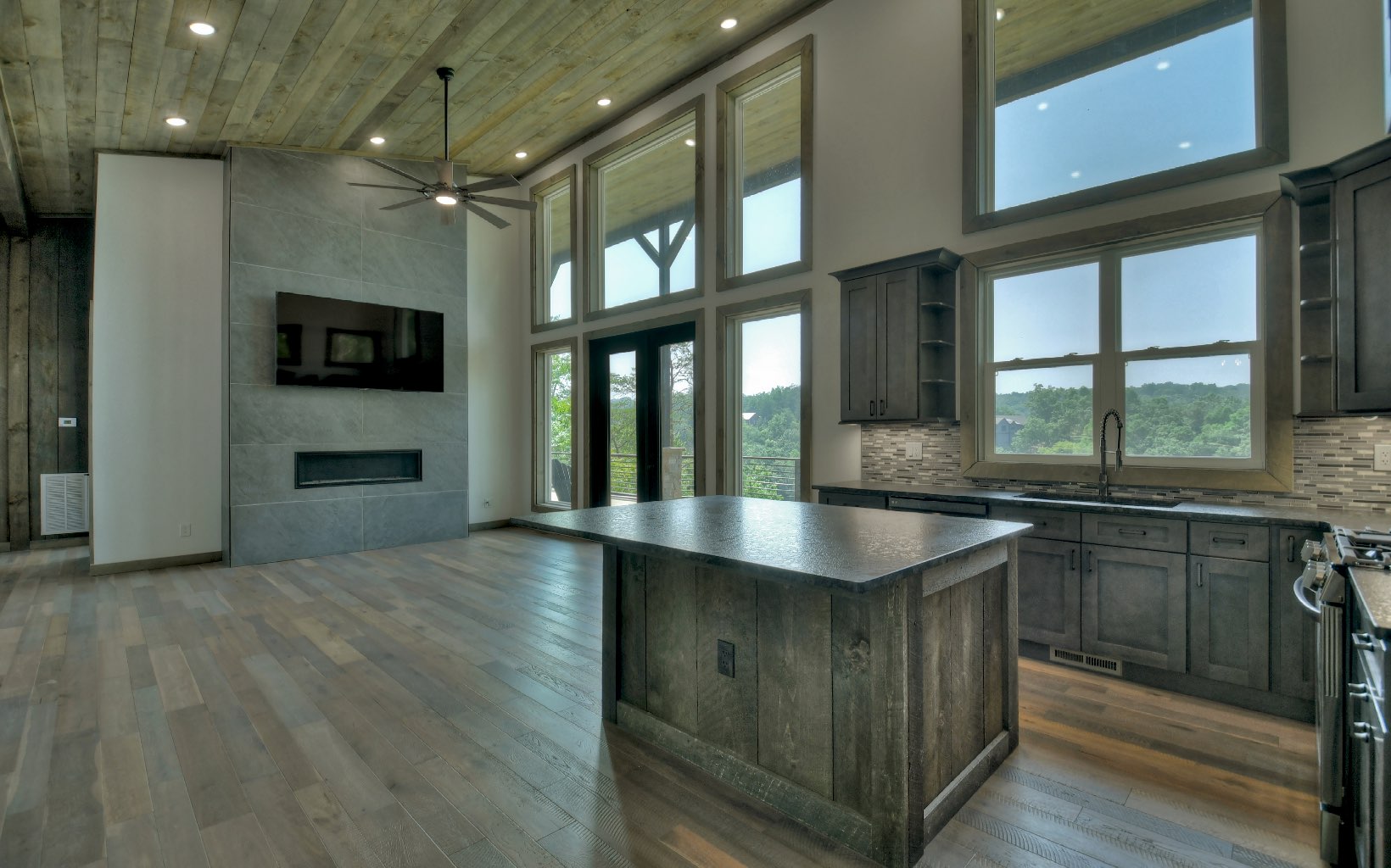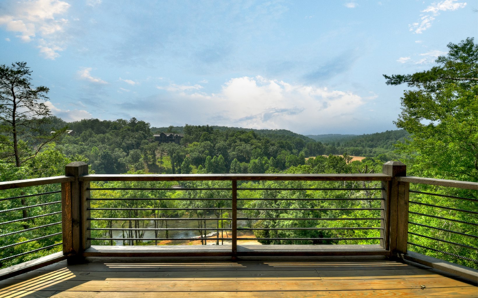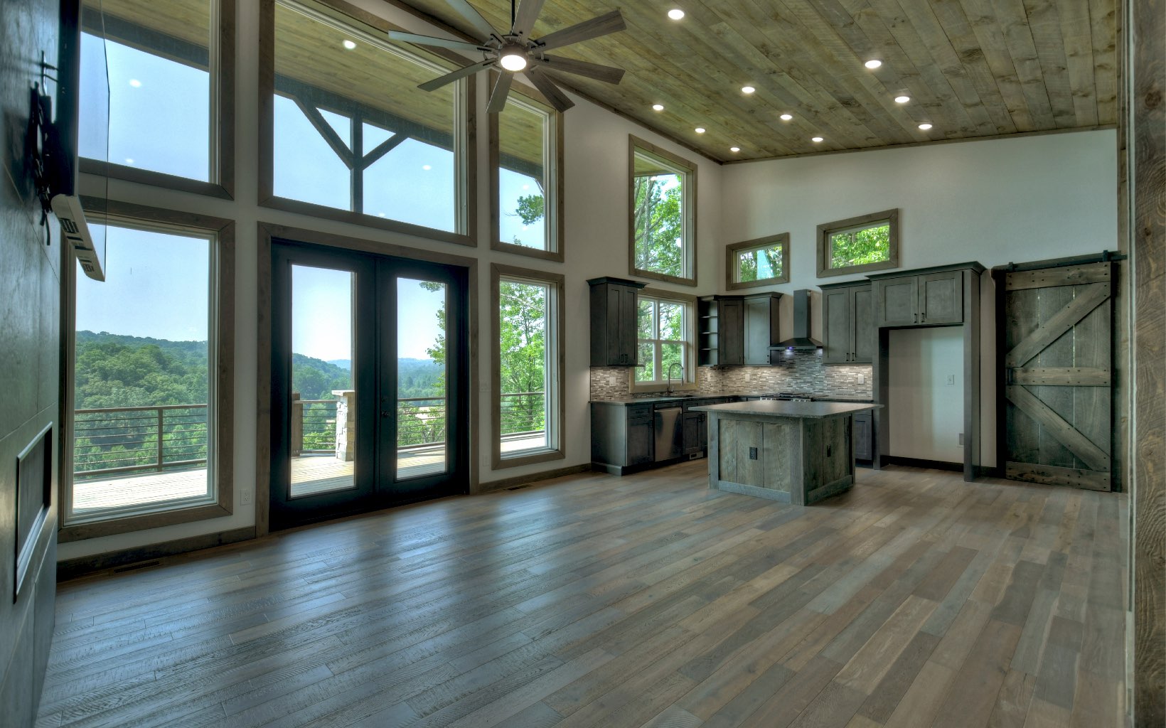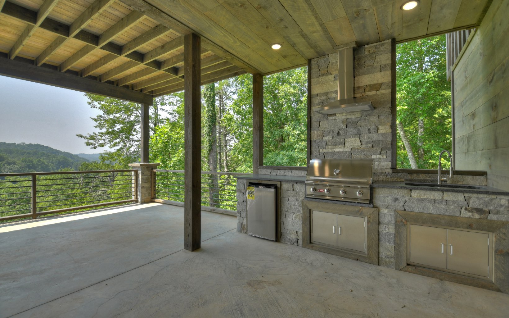 Refined Rustic Riverfront stunner with Contemporary Lines & Modern Motif in the overlooking …the Toccoa and layered mountains…this 4 bedroom/4.5 bath charmer is nestled on gorgeous wooded lot atop the mountain with long range mountain & unobstructed river views ...warm wood finishes with light & bright layout, plentiful glass & soaring ceilings, industrial and custom touches with massive steel fireplace in great room, doors open to expansive party porch with outdoor firepit, two spacious masters feature ensuite "spa feel" bathrooms with eye catching tile, upscale fixtures & soaking tub, stainless appliances & granite counters w spacious cabinetry, modern lighting & beam work enhance the flow of the cozy but open floorpan, full finished terrace level offers split guest quarters, spacious den/rec room, wet bar, storage & entertaining porch with outdoor …kitchen…uniquely inviting with low maintenance landscape and yard area, riverside firepit & stone steps into the water…15 minutes to historic downtown & move in ready…bring your fishing poles and kayaks…this is one you'll want to see!