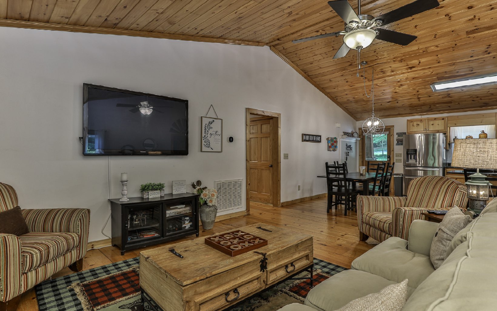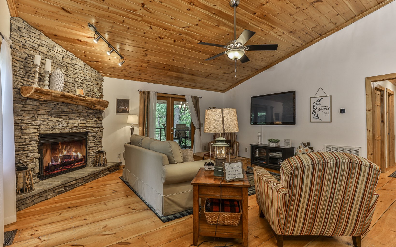 The sunny "Yellow Door Hideaway" will make you smile as soon as you pull into the drive. This hideaway in the N GA Mountains can be your perfect home away from home, full-time residence, or income-producing cabin. There is no shortage of charm here from the cheerful blue wood exterior with stacked stone & cedar shake accents, to the warm & bright blend of drywall with tongue & groove wood accents inside. The great room w/corner stone fireplace & well-laid out granite counter kitchen provides the perfect gathering space. 2 BRs + 2 full BAs on the main and 2 BRs + BA below, along with lower level living area and game room w/ kitchenette allow plenty of space for large families (or in-law setup). Located in the gated Walnut Mountain community, you will have access to a pool, tennis courts, and be within a short distance of apple orchards, wineries, hiking, tubing, and Historic Downtown Ellijay's many shops, antique stores, and restaurants. Open the door to your mountain dream today!