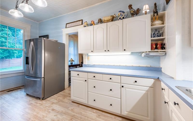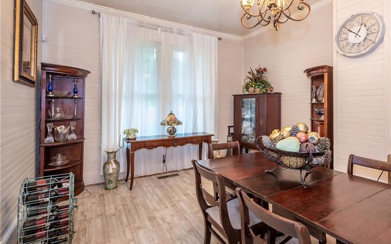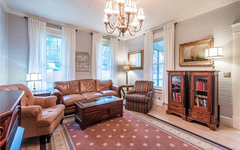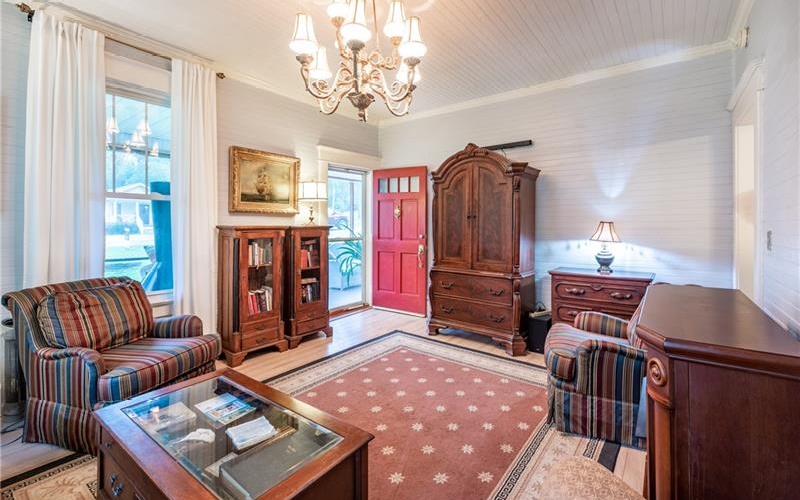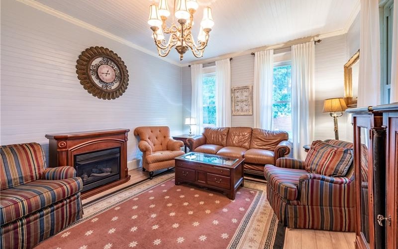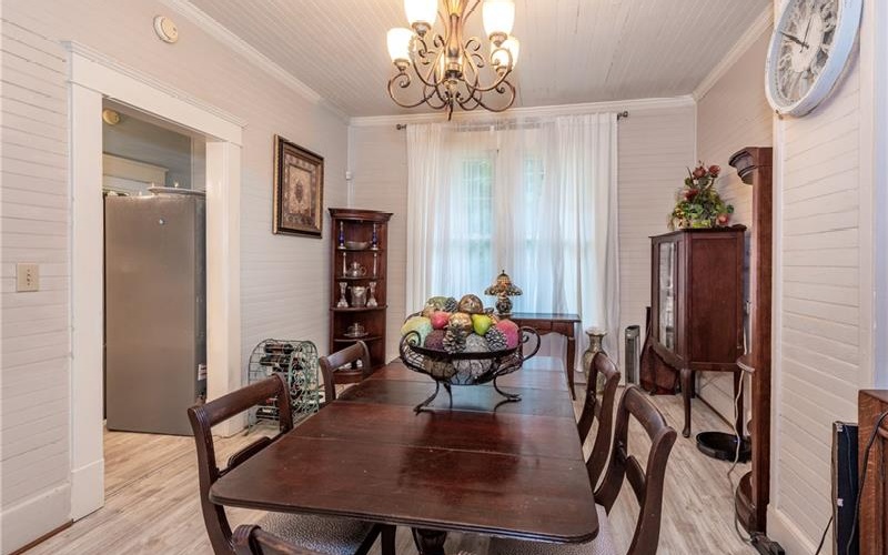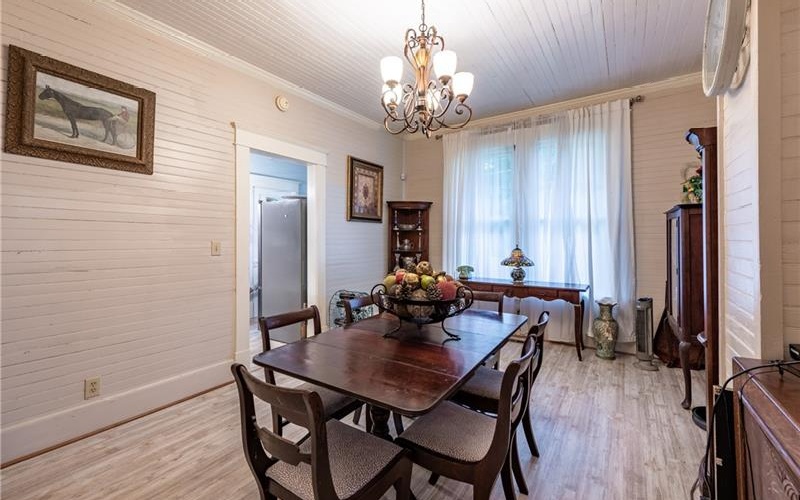 Discover a unique piece of History in the heart of Pickens County. Located in the desirable community of Tate, Georgia. Nestled in a quiet corner of this historic town, the charming home provides the perfect escape from the hustle and bustle of daily life, while still being close to all the amenities you love and need in Jasper, Ball Ground, Ellijay, and Canton, and just a short drive to highway 515. This beautiful home has been lovingly restored to meet modern standards yet retains its historic charm and character. The do-it-yourselfer's paradise is the perfect blend of vintage charm and modern convenience. Several areas for gardening, crafting, and tinkering with planes, trains, and automobiles. Walk up the original Marble steps into this screened in rocking chair front porch! Here you will find a sunny bright living room, a large formal dining room, two spacious bedrooms; all with original beaded tongue and groove on walls and high ceilings throughout, newer extra-long dual glazed vinyl windows that allow lots of natural light. Essential upgrades include: entire house has been shored up with new floor and beams, exterior perimeter footings, concrete block, foundation new insulation in the floor and attic, and stone veneer added in 2022; a new HVAC, new 200 amp power panel with prewiring for a generator, new septic system, stainless steel appliances including a gas stove, whole house Aqua Sana water filtration purification system with UV purification, and a dehumidifier.