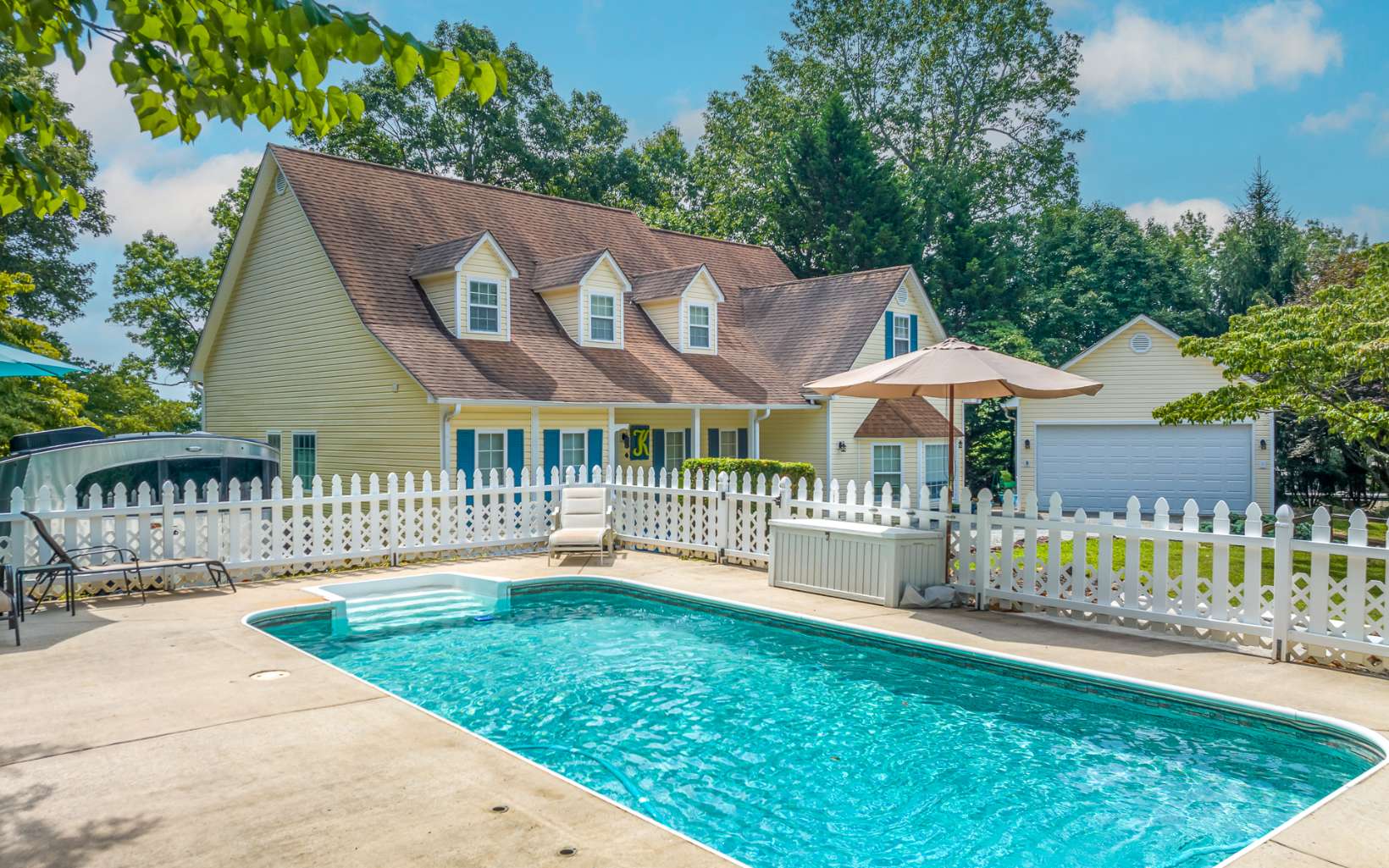Wow - you can see majestic mountains for miles and miles from this beautiful home with all the convenience of being close to town and Gilmer's many vineyards are just a few miles away. Upgraded refrigerator, stove, washer, dryer and wine fridge in the spacious kitchen. Enjoy the view of the mountains from the new deck which runs the entire width of the house or from the sofa viewed thru the wall of windows. The large master bedroom has an ensuite bathroom with separate tub and shower and huge walk-in closet, located on the main floor. Current family room with its own bath could easily become an ideal In-Law Suite by adding a mini kitchen. Since it has a separate entrance, it could become an income producing airb&b or long-term rental. Upstairs are 3 large bedrooms and bath. Then there's the POOL! Beautiful, private, large inground pool to enjoy. This house has everything!