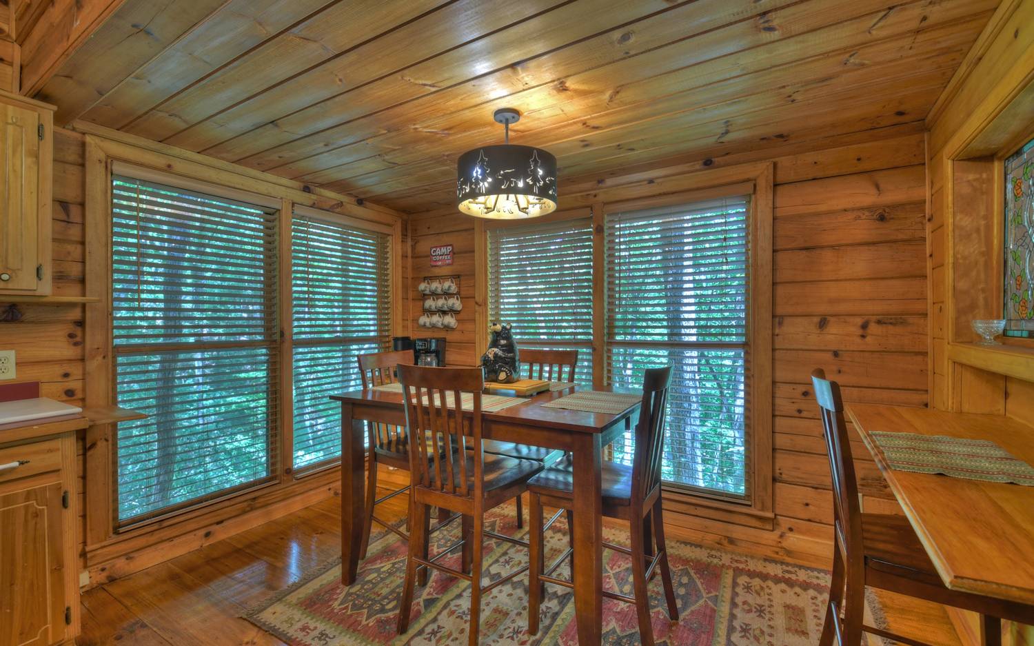 Nestled among the majestic Blue Ridge Mountains, this stunning 3 br/2 ba short term rental is located in one of the most popular communities in Cherry Lake. Enjoy mesmerizing views of nature from every angle with a wall of windows surrounding the dining room and plenty of outdoor deck space. The main level offers 2 bedrooms and 1 bath along with a great room boasting soaring cathedral ceilings, combining drywall and wood for that perfect rustic look. A finished basement provides extra privacy for guests or older children with an additional bedroom and full bath. It comes fully furnished and offers a separate workshop/storage shed perfect for all your outdoor adventures! Plus, you can enjoy easy access to all paved roads as well as high speed internet availability! Stay close to nature while also having all modern conveniences at your fingertips!
