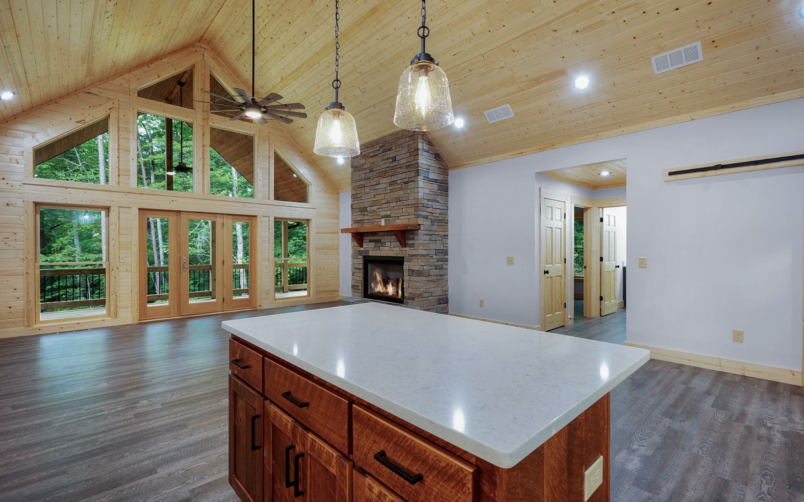 Don't miss this incredible opportunity to own this remarkable home currently under construction (see pictures included) which offers a combination of traditional and rustic finishes. Nestled in a serene setting, this home offers captivating seasonal mountain views. Bright and open floor plan, tongue and groove vaulted ceilings, stone fireplace, with large windows, featuring upgraded aluminum clad exteriors and warm wood interiors. The kitchen features quartz countertops, central island, & stainless steel appliances. Two generously sized bedrooms on the main and spacious bathrooms with tile showers quartz counters. Covered back deck w/ vaulted tongue and groove ceilings. One car garage & a full basement, which has already been prepared for the addition of a bathroom, two bedrooms, and large living area. Situated in the heart of North Georgia Mountains, this gated community offers an array of amenities. Estimated completion is January 1st. Photos are representative of the finished home.