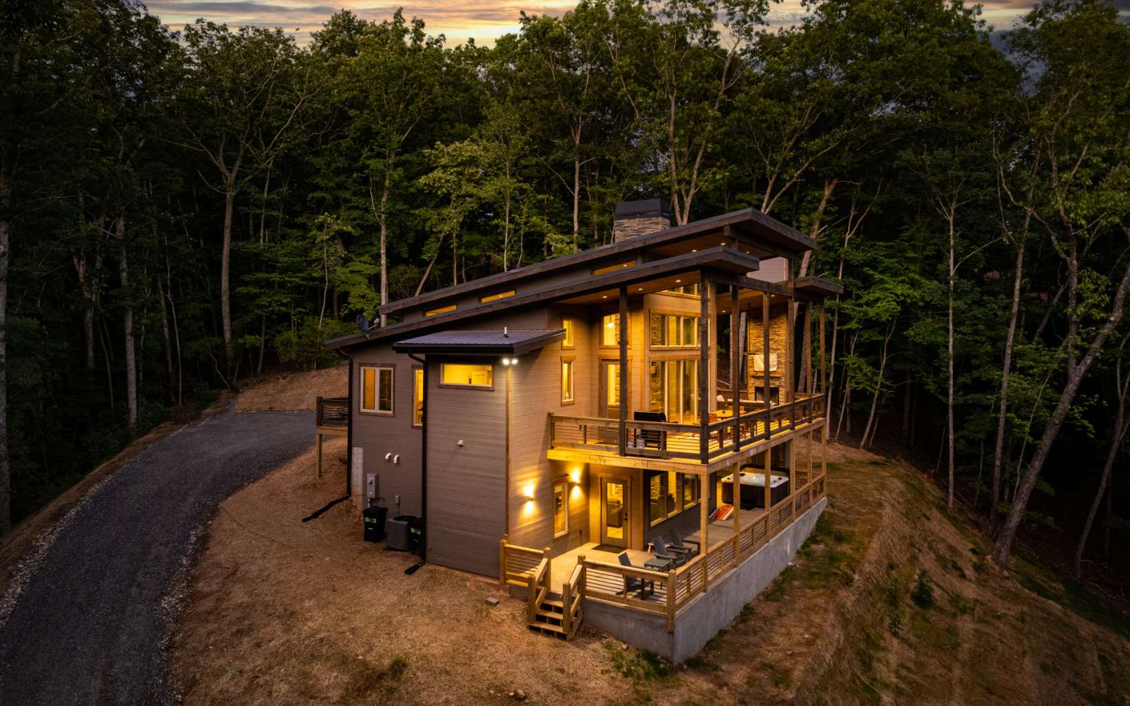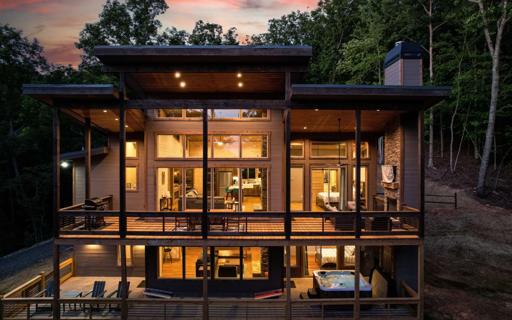 Turnkey rental or luxury vacation home in the beautiful north GA mountains. Grossed 127k July '22 to July '23 as a vacation rental. Comes fully furnished as seen in the listing. Includes seasonal décor & supplies. Modern chalet just minutes from Blue Ridge. This 3-bedroom chalet offers 2 full-size bathrooms, 1 half bath, and room for 10, along with a convenient location about 12 miles (18 min) from downtown Blue Ridge. That means easy access to all the wonderful attractions and splendor of Blue Ridge while enjoying the privacy and seclusion of Morganton. Featuring high speed cellular Wi-Fi, 7 seater Hot Tub, Satellite TV, and a large deck with a fireplace to enjoy all those cool nights with others. Features • 3 Bed/2 Bathroom Chalet - Sleeps 10 • Large Outdoor Hot Tub • Italian Appliances • Mountain Views & Privacy • 2 Indoor Gas Fireplace/Outdoor Wood Fireplace (gas hookups) • Large Deck for entertaining • Satellite TV & Cellular WIFI • Parking for 4 vehicles