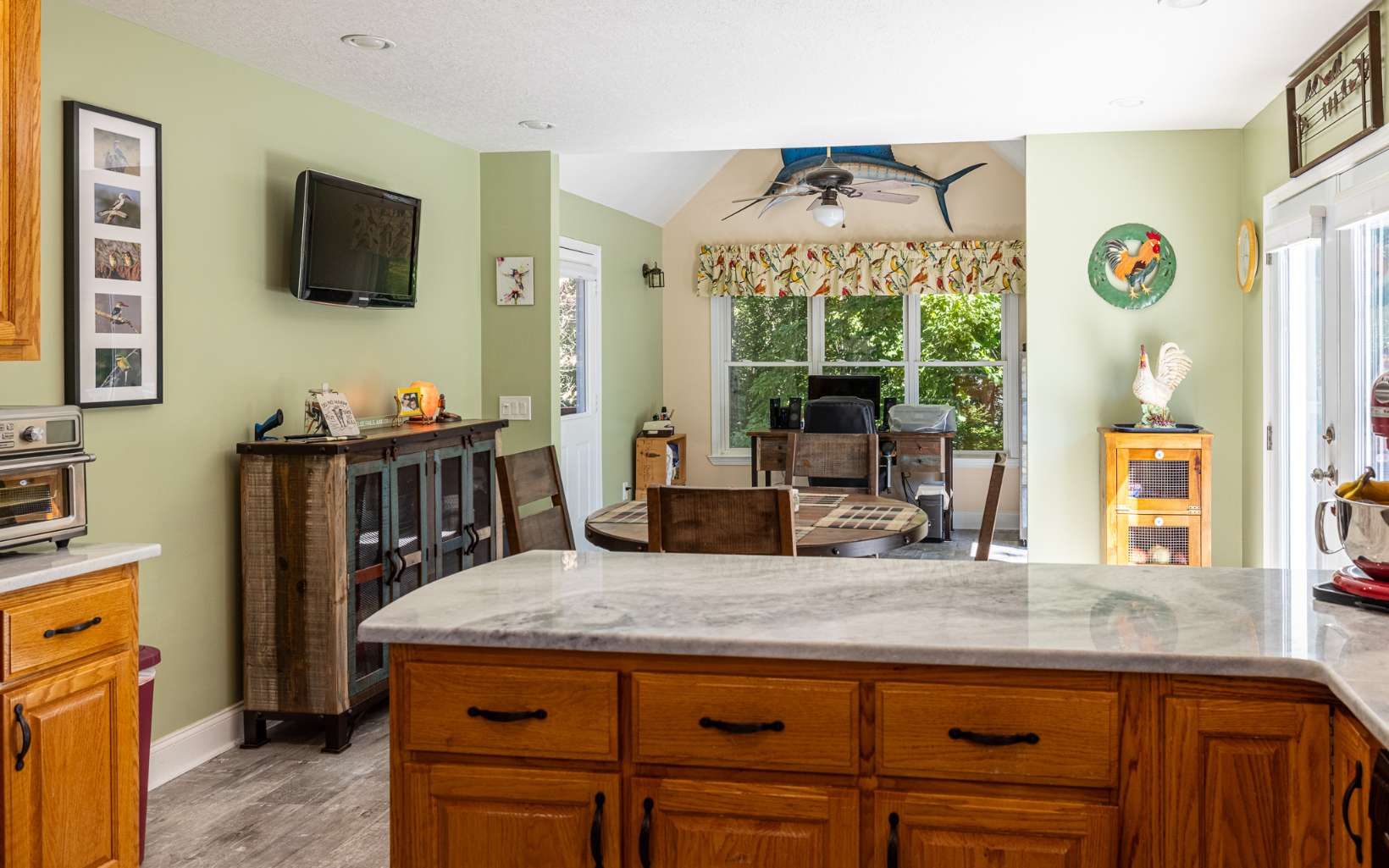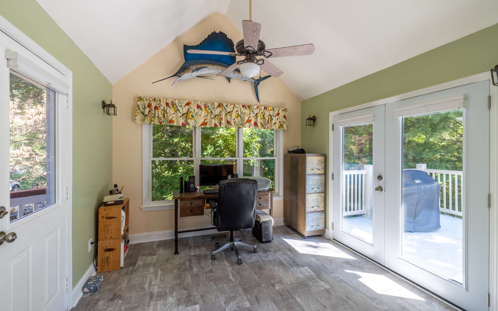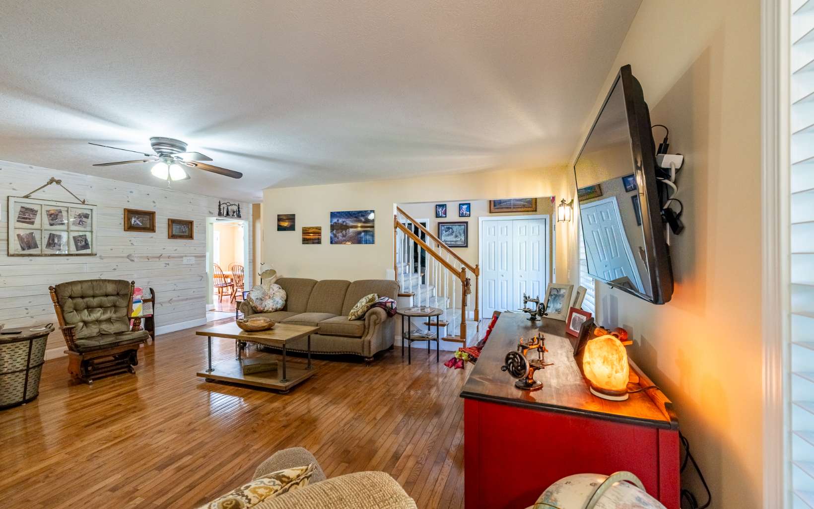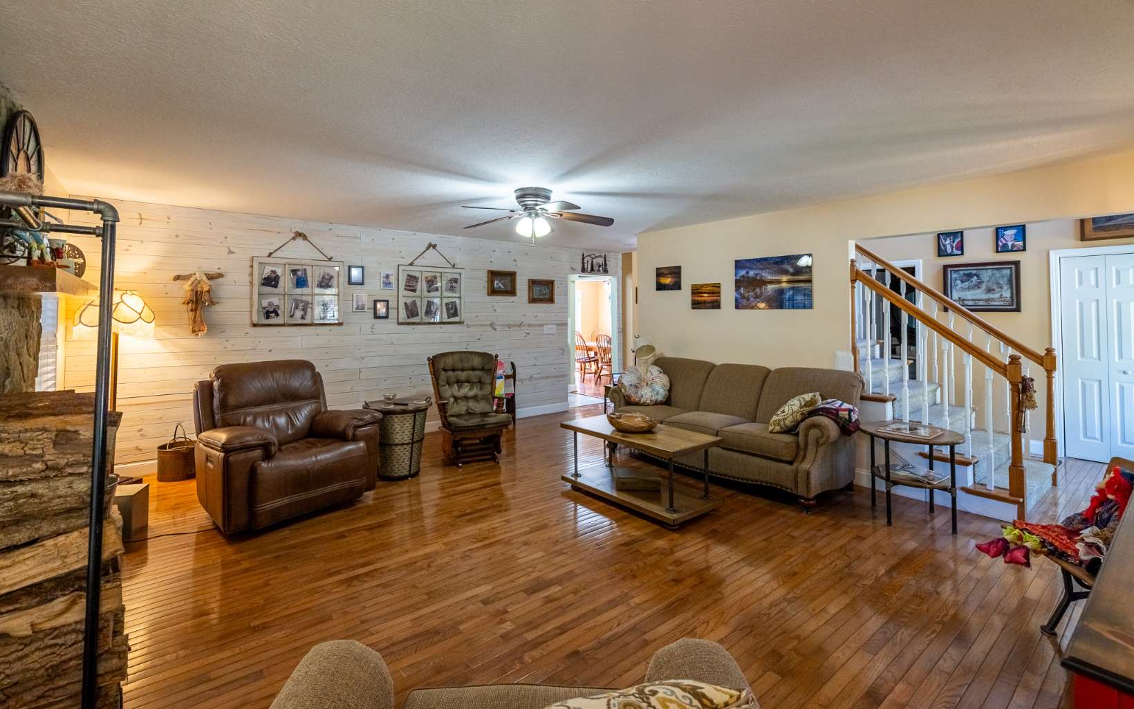 LAKE ACCESS GEM! Spacious home located in upscale community with lake access, private boat ramp for residents and beautiful lake and mountain views! With over 3700 sq ft, this lovely home features a large LR with wood burning FP, separate dining room, gathering room, office, master suite with tiled walk-in shower and large closet, and fabulous bonus room/sunroom. Upstairs guest rooms are bright and spacious with large closets and 2 walk-in attic spaces for storage. Partially finished basement has family room, craft room, half bath, add'l storage/workshop, laundry and 2 car garage. Gorgeous outdoor space has large covered front porch, relaxing patio and garden, large open deck and beautifully landscaped yard. Home is immaculate and comes with RV parking pad, 30 amp hookup and can hold 40’ RV. Select furniture is also available for purchase.