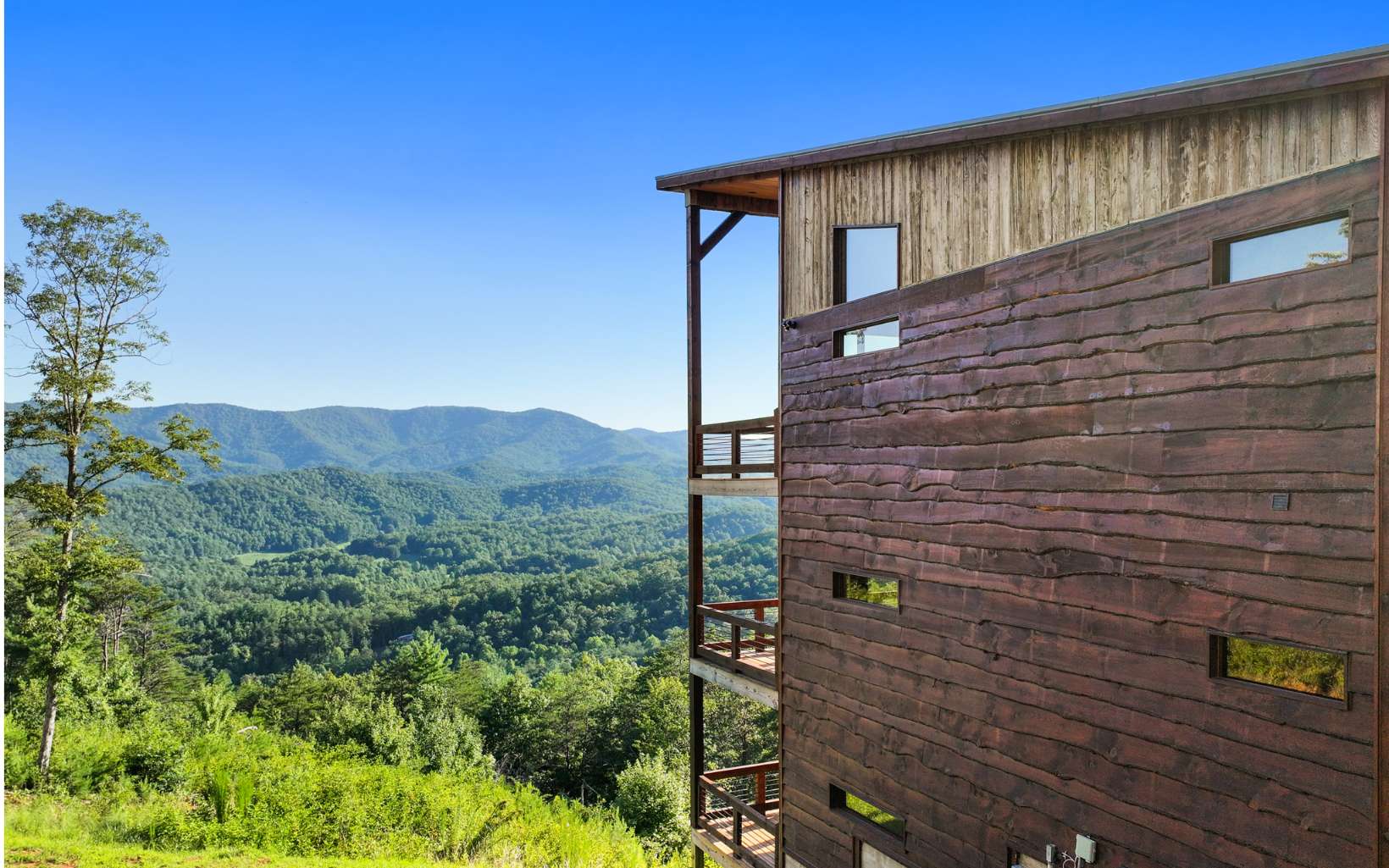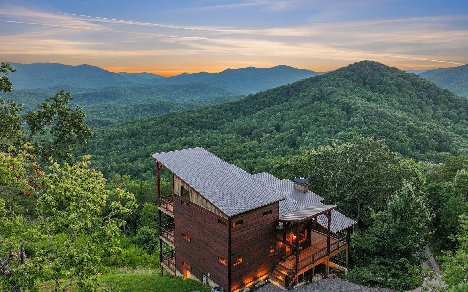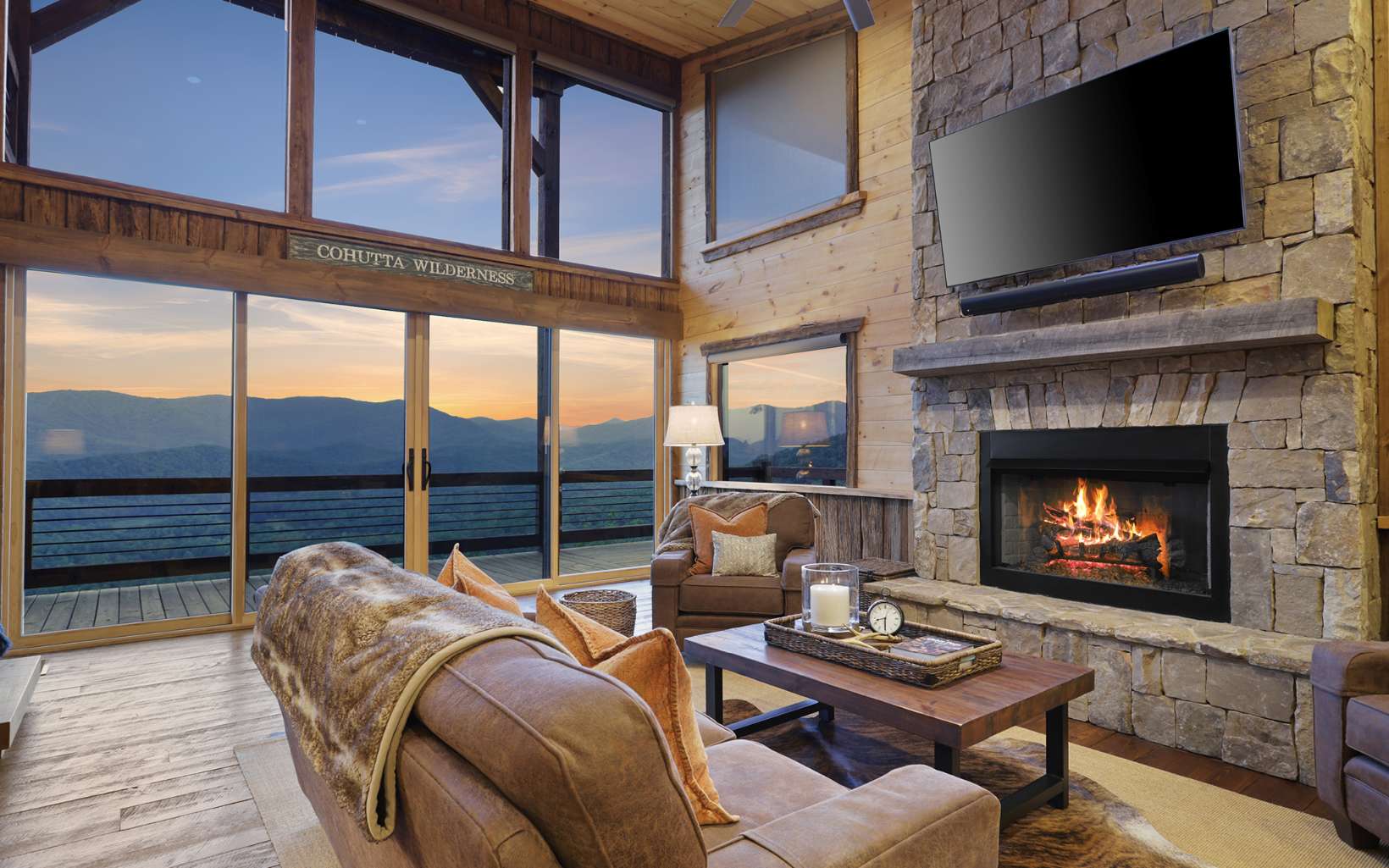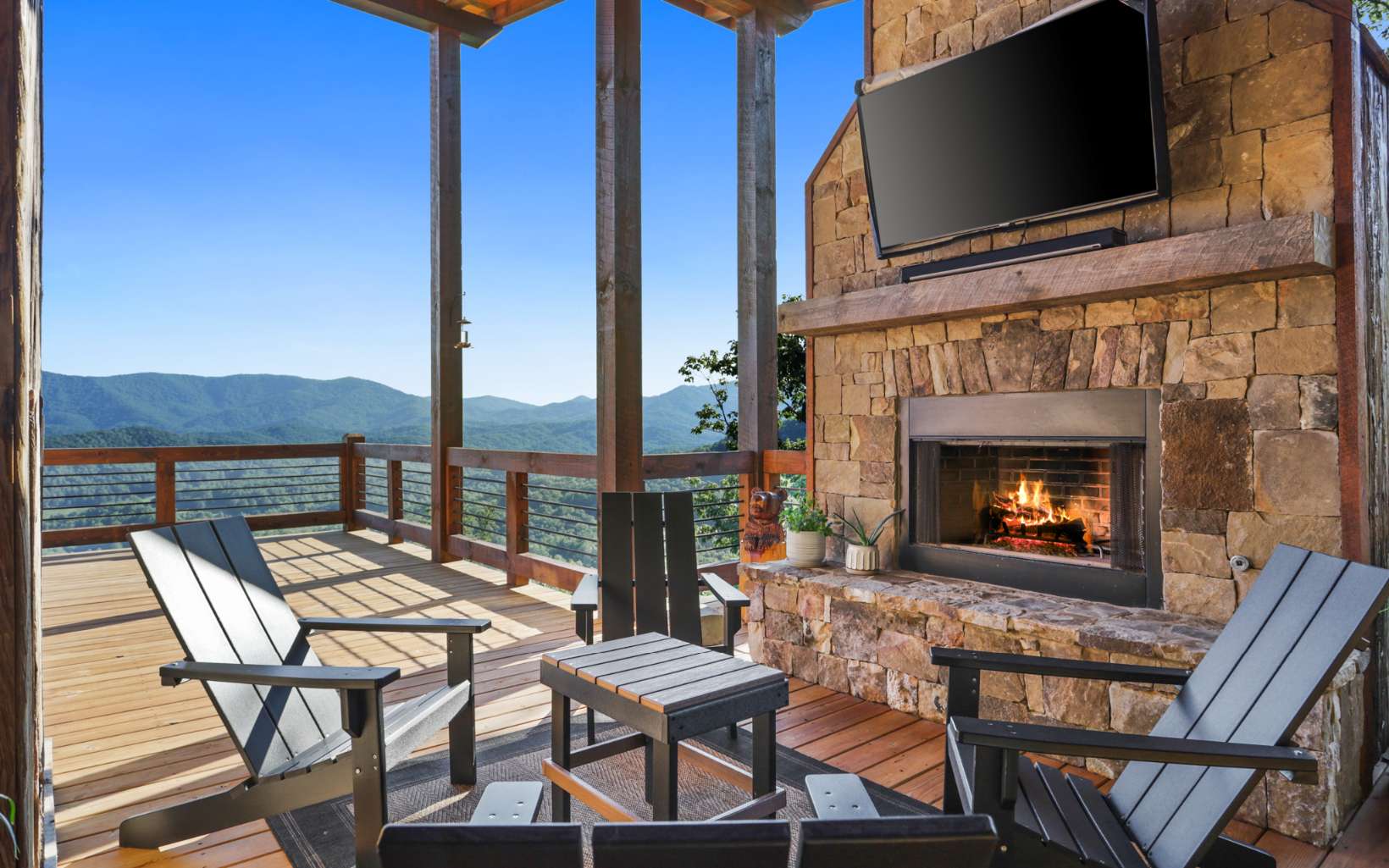 Stunning mountain modern with the BEST VIEWS in BLUE RIDGE! No HOA! Mountain modern design with HUGE unobstructed mountain views of the Cohutta Wilderness from every room! Walls of windows and sliding glass doors showcases the long range views from every room in this well-appointed mountain escape. Grand open floor plan design, oversized great rooms, soaring ceilings, and massive stone fireplaces perfect for family gatherings. Plenty of outdoor entertaining space with an amazing party deck like no other to soak in the views by the fire! Upscale gated community offers all paved road access, fiber internet, community water system and underground power. Close to the Cohutta Wilderness, hiking, horseback trails, waterfalls, and the premiere trout fishing of Fightingtown creek and the Toccoa River! Highly sought after mountain modern cabin design with hard to find views presents an incredible luxury rental investment opportunity. Close to downtown Blue Ridge, Lake Blue Ridge, and the Aska Adventure area!