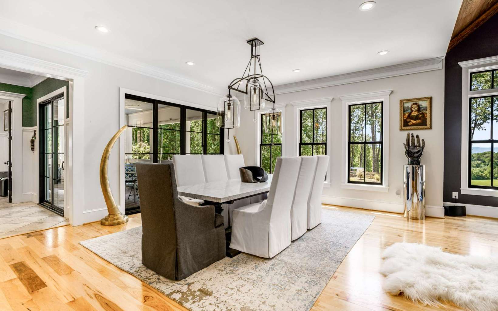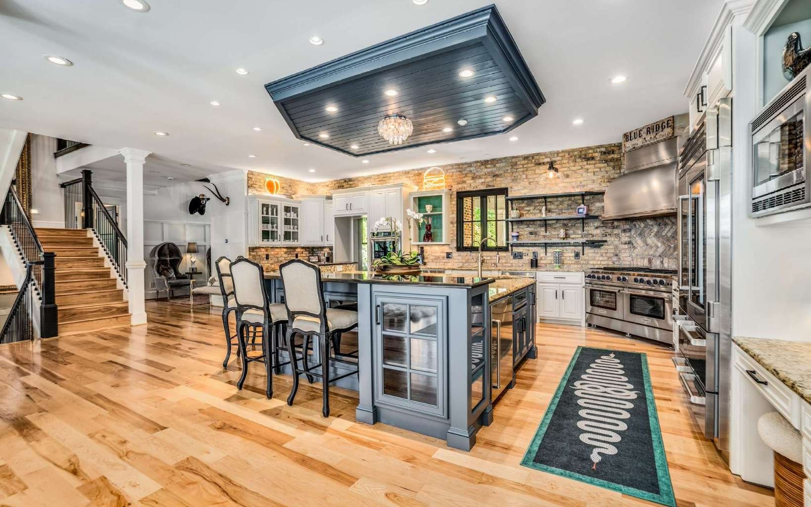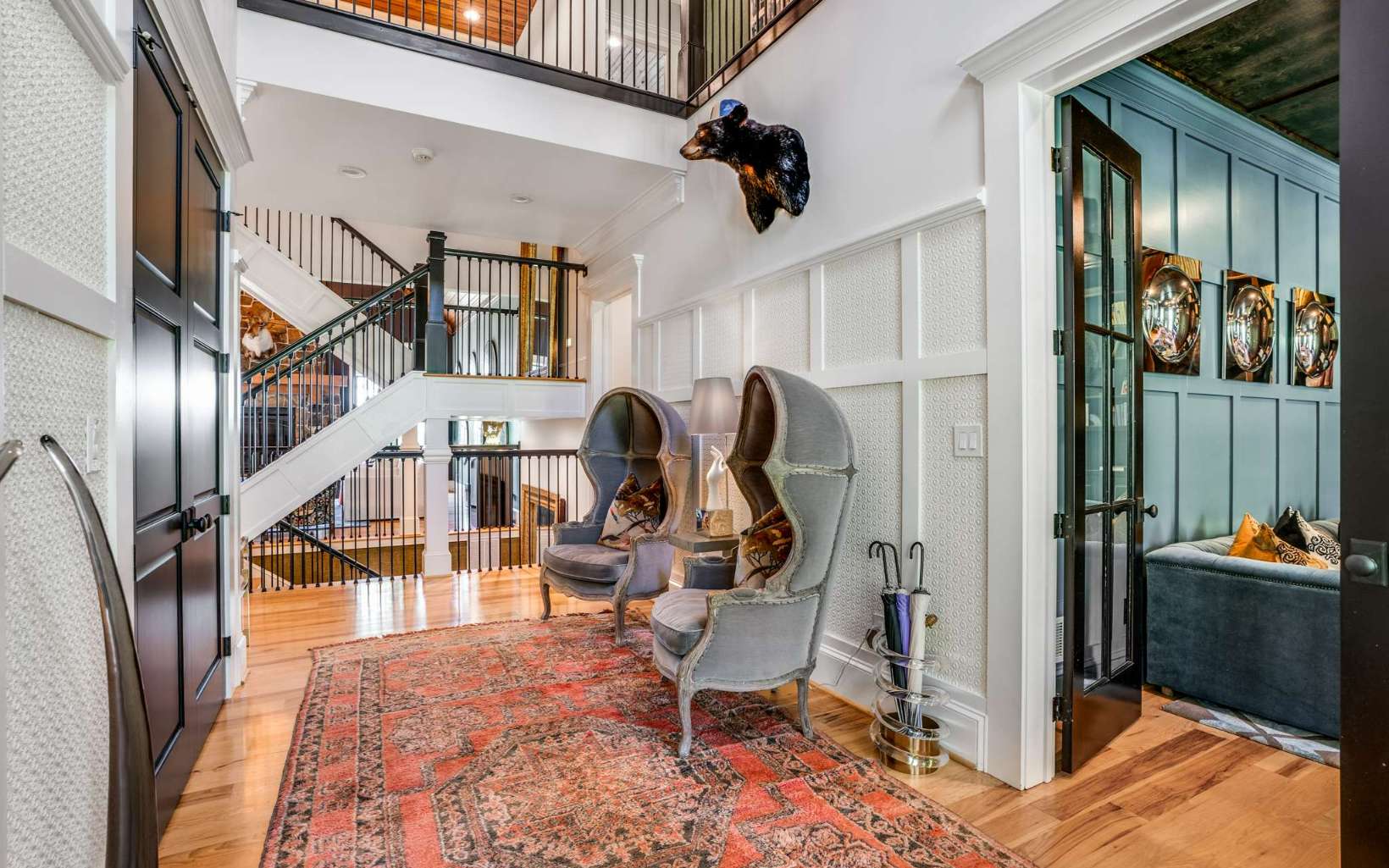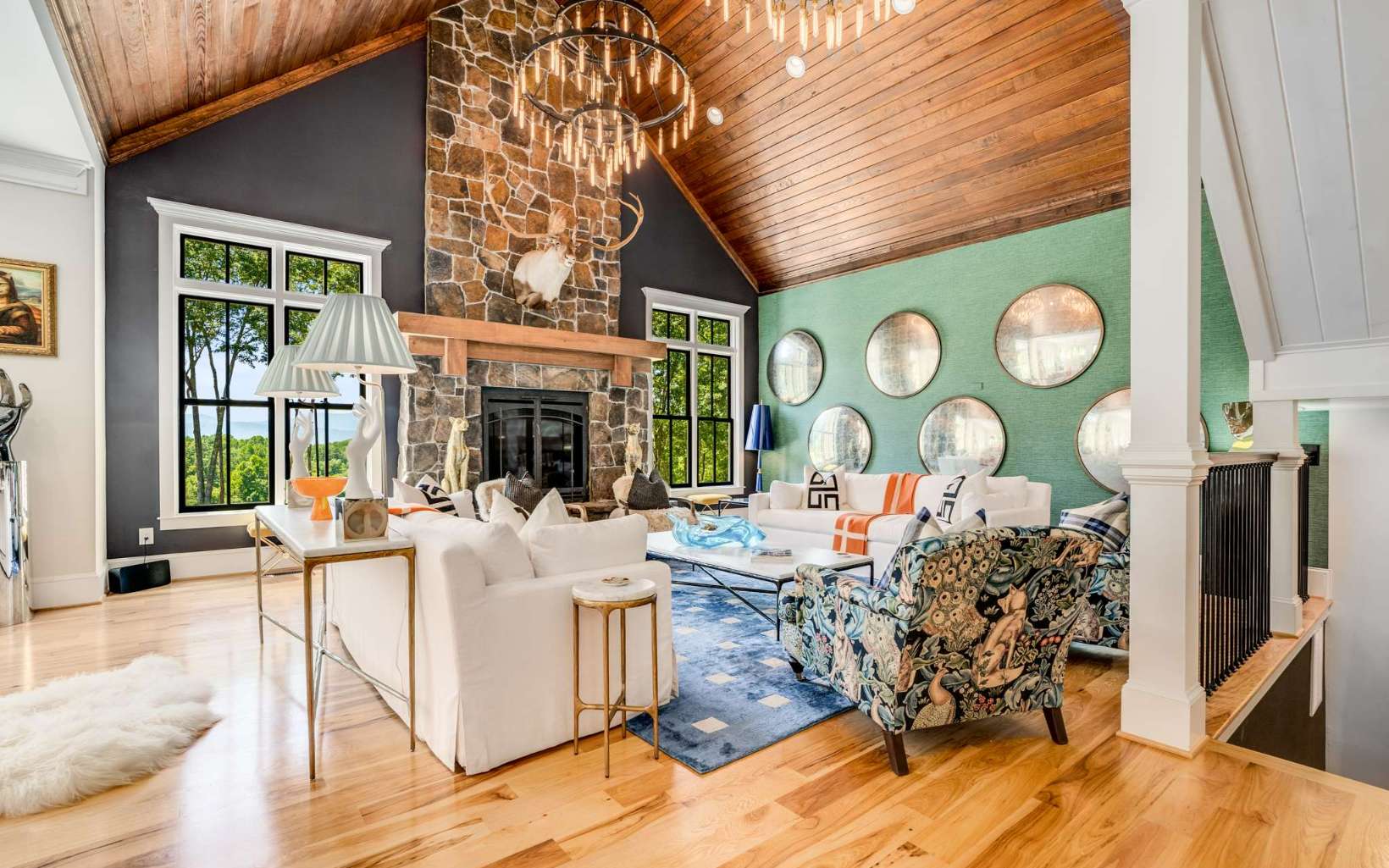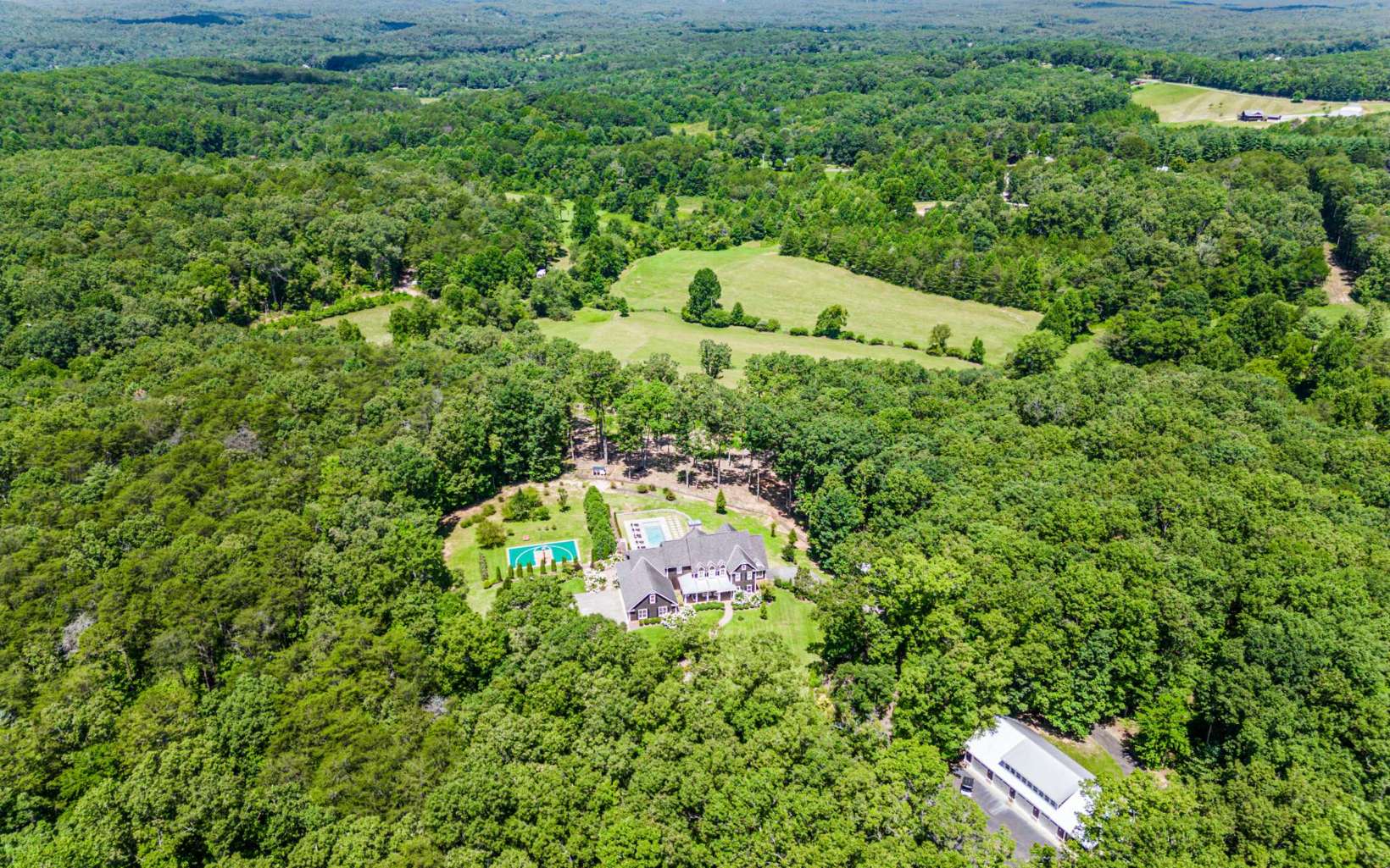 Welcome to Meadow Creek Manor, a timeless private mountain estate on 23 acres in Blue Ridge, GA. Located just minutes from downtown Blue Ridge on flat paved roads, enter though gates down the private tree-lined drive to the car barn & 10,000 sq ft completely renovated & fully furnished home. Take in the incredible scenery of the pool, landscape, pasture, & endless mountain views of the Cohutta Wilderness. The home and grounds underwent a significant renovation including: exquisitely furnished with designer furniture, art, lighting & décor; new basement level kitchen & bar; full gym & game room, spa room with infrared sauna; updated main level chef’s kitchen; updated bathrooms; paint throughout; wallpaper treatments; light fixtures; spring fed well pump & water filtration. The exterior and grounds transformation include: exterior re-staining; landscaping design to gain complete privacy and spectacular views of the Cohutta Mountain Wilderness; Sport Court that could also be used as a helicopter pad; 15x50 heated saltwater pool & spa; Barn, chicken coop & fencing for animals; and hiking/ATV trails throughout the property. Located just 10 min from downtown Blue Ridge, 25 min to Ellijay, & 1.5 hrs to Atlanta. The possibilities for this property are limitless: equestrian, family compound, corporate retreat, wedding venue, bed/breakfast, etc. This estate is unmatched for its combination of location, acreage, square footage, renovation, furnishings, amenities, privacy and views.