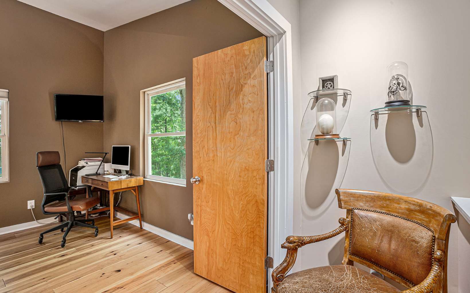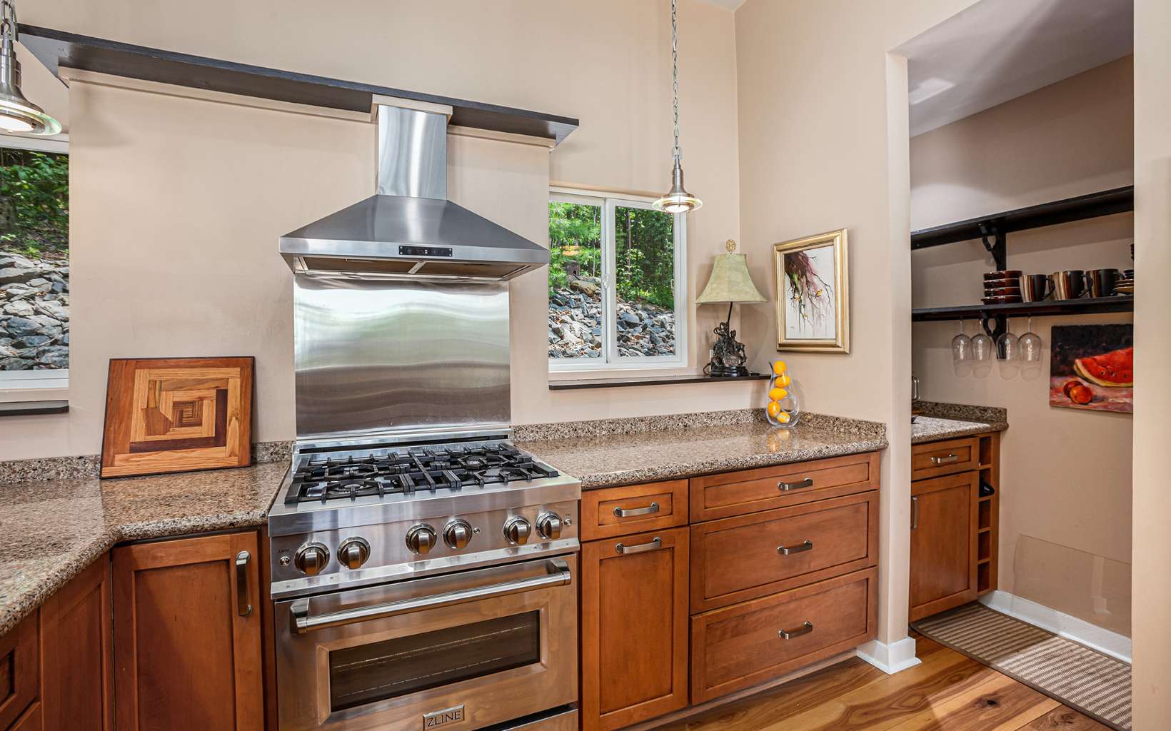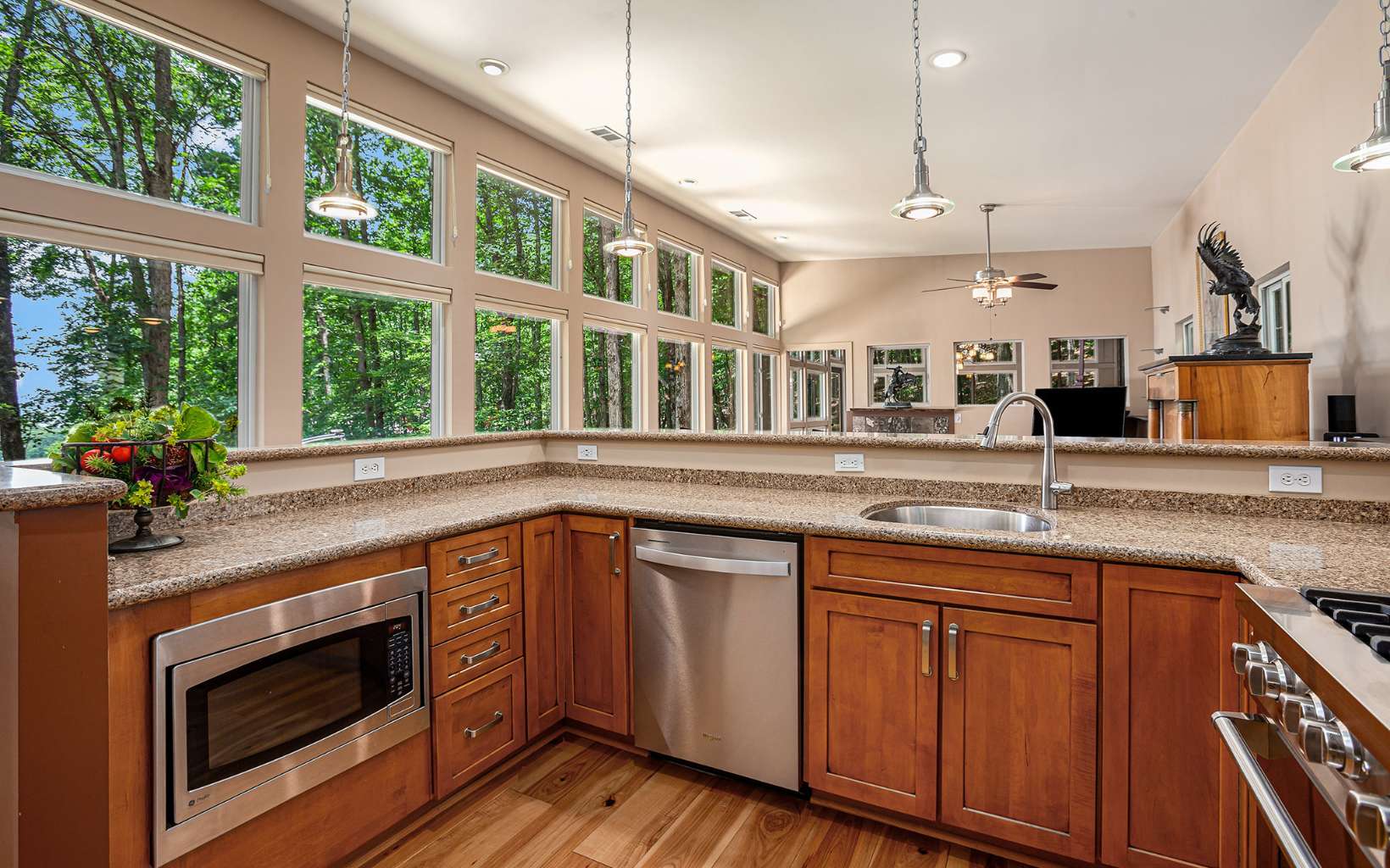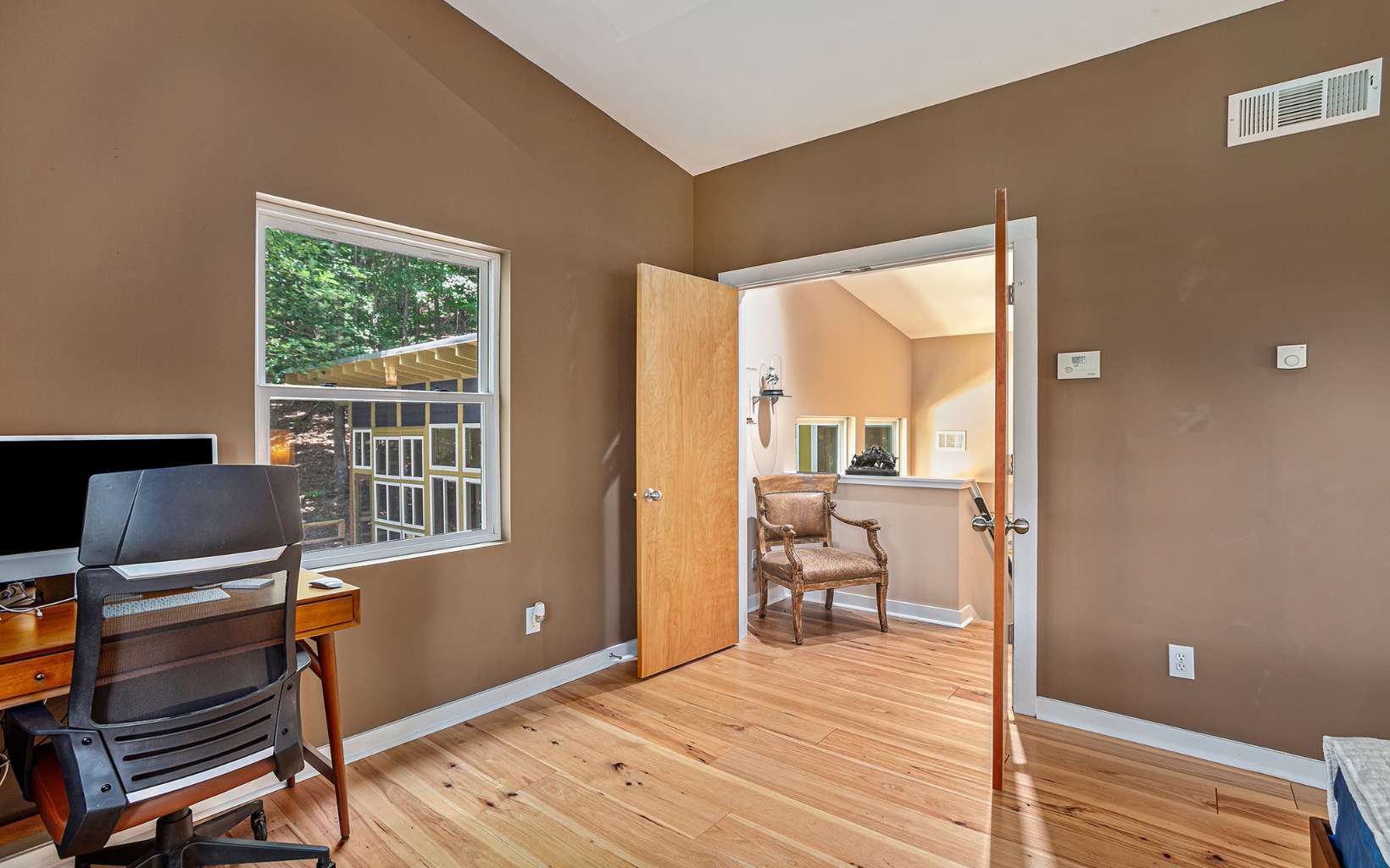 Back on market at no fault of seller or property! Discover the epitome of mountain modern living in this remarkable home. This property offers awe-inspiring mountain views, a rolling meadow, and is just 15 minutes from Lowes, Walmart, Ingles and eateries with high speed internet of up to 2 gigs of speed. Step inside & be greeted by an abundance of natural light flooding through 54 large windows. The open-style kitchen features ample countertop space, a large entertaining bar with stools, & brand new stainless steel appliances. Indulge in year-round relaxation in the enclosed sunroom with floor-to-ceiling windows, or unwind in the fenced-in stamped concrete patio area in the front yard, surrounded by nature. The living room boasts tall ceilings & panoramic windows, allowing you to immerse yourself in the tranquil mountain atmosphere. Two spacious bedrooms offer comfort, while radiant floor heating and hardwood & tile flooring add a touch of luxury. The thoughtfully designed bathrooms provide the perfect place to unwind. The laundry room, complete with a half bath, offers convenience & space. With an attached garage and an oversized detached garage featuring epoxy floors, finished walls, & a 220-volt outlet for electric car charging, this property caters to car enthusiasts. Enjoy the fresh mountain air and breathtaking views from the new deck at the front of the house. Hardwood flooring spans all three levels, while the bathrooms and laundry area feature elegant tile flooring.