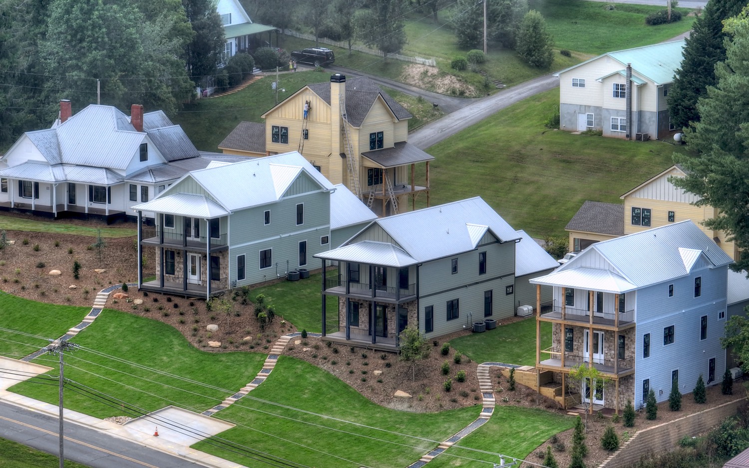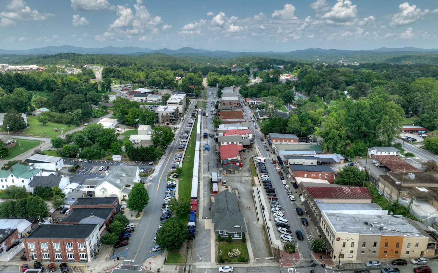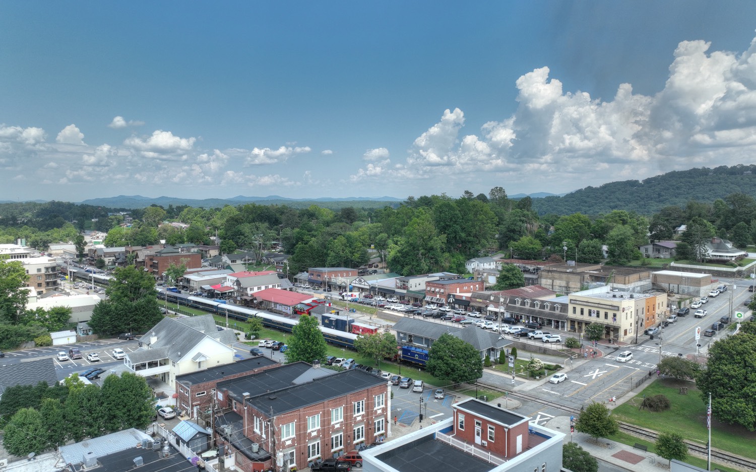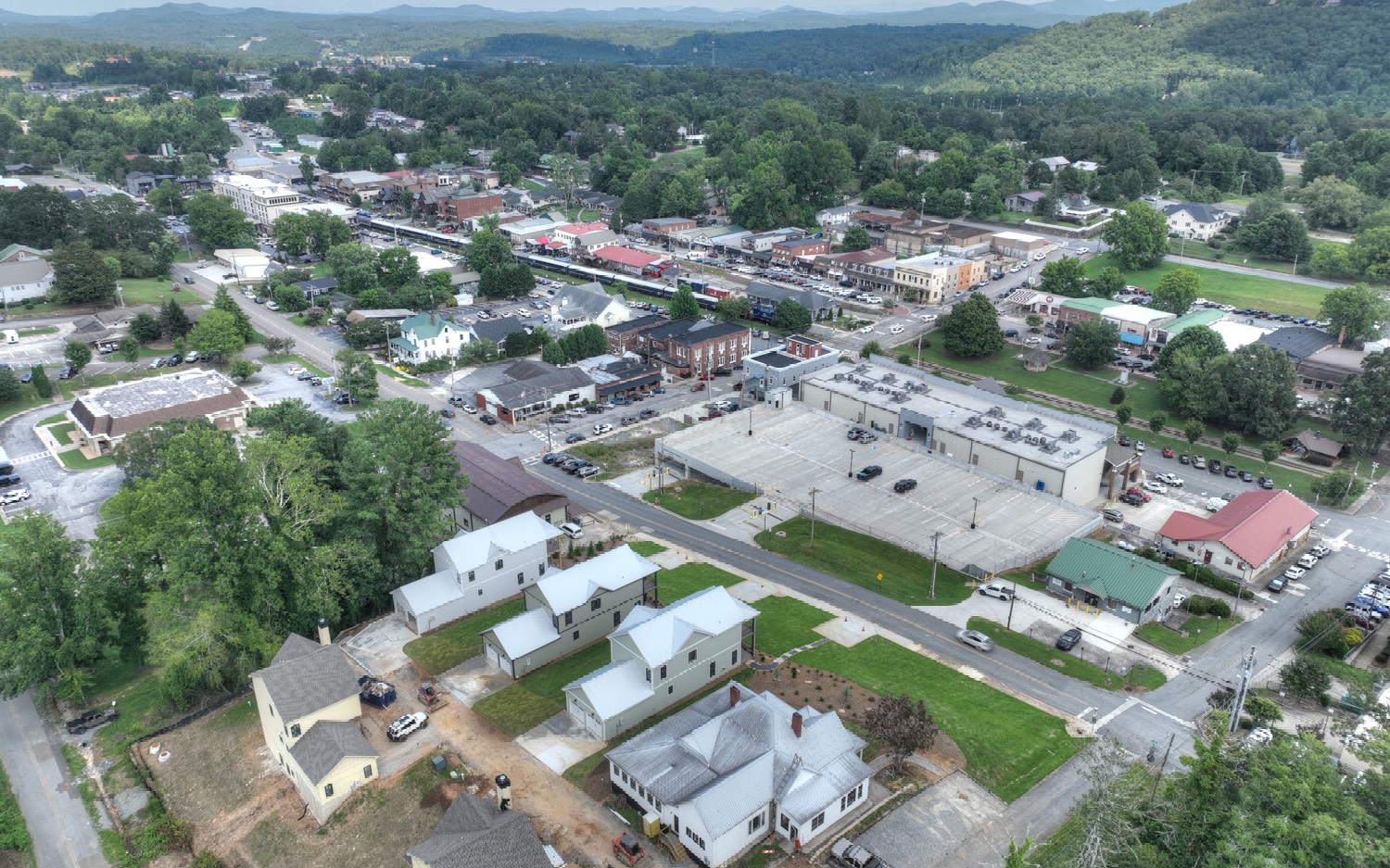 Experience Downtown Blue Ridge Cottage Living ...comfortable & quaint, this new construction home offers flowing & generous interior & next to no maintenance with ultra quiet interior and phenomenal downtown & mountain views from large private porches...shopping, restaurants, and galleries only a short stroll away...ultra energy efficient, only the best in fixtures & stainless appliances in chef's kitchen, custom cabinetry with soft close features, tile backsplashes & granite counters, master suite w/ private balcony & spa like bath, loft/sitting/office area, spacious guest rooms w/ mix of drywall & wood, open kitchen/living/dining concept, plentiful closets and storage, easy access concrete drive & roomy garage, additional designated guest parking, gentle & lush landscaped yard area...a view like no other, great for full time living, much needed getaway, or approved for vacation rental...ultimate curb appeal! Disclaimer - furnished photos incorporate virtual staging.