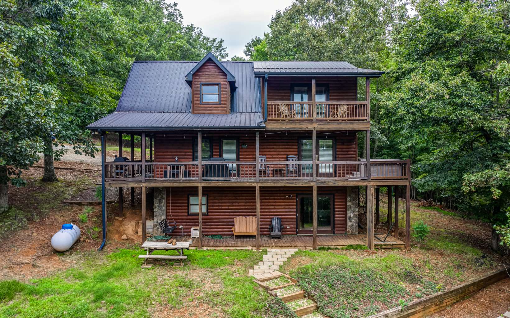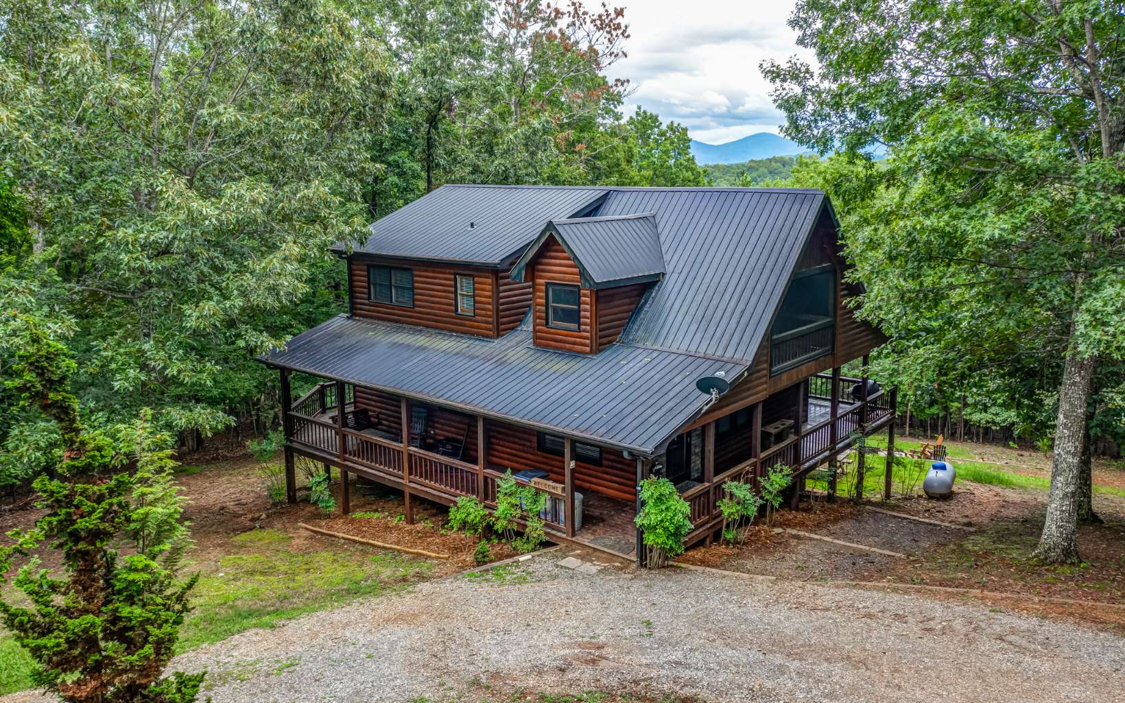 Price Reduced $44K. Sellers ready to sell. Wonderful log cabin mountain home with great views! This is a successful rental that boasts 3 bedrooms and 2 bathrooms, featuring a large stone fireplace. Open floor plan is ideal for gatherings. Beautiful porches with scenic views that are great for outdoor entertaining. Conveys as Turn-Key furnished. Located within a short drive to waterfalls, lakes, hiking and biking trails, apple orchards, wineries and lots of great restaurants.