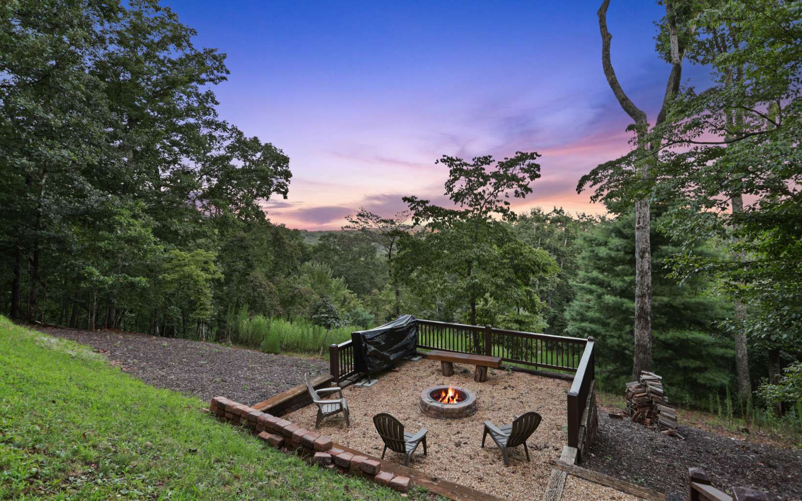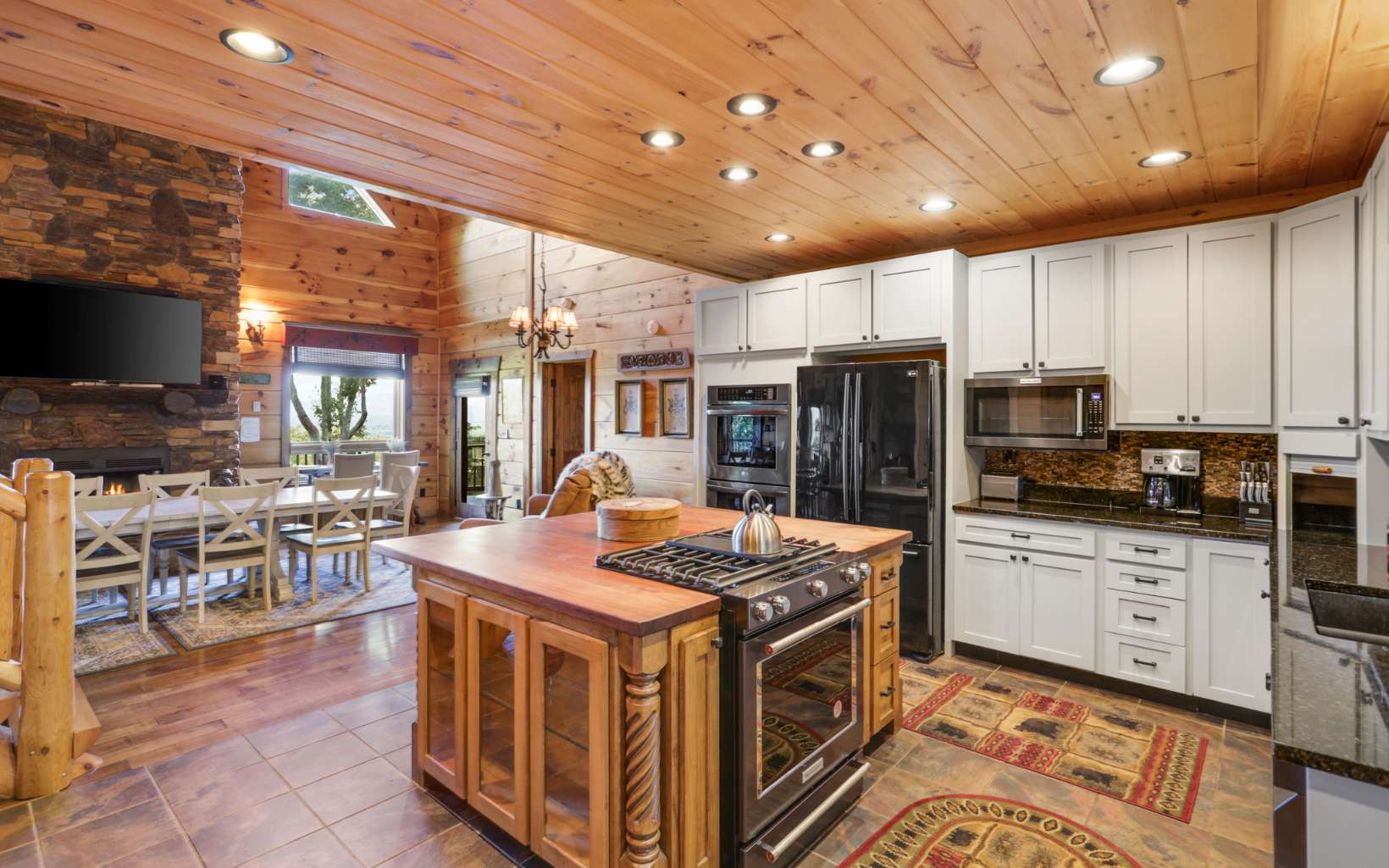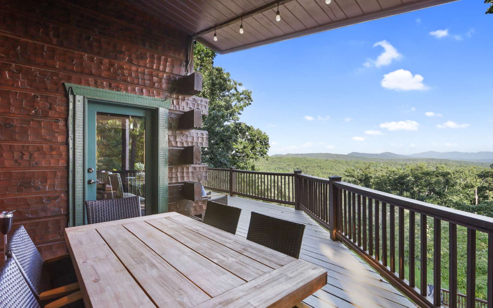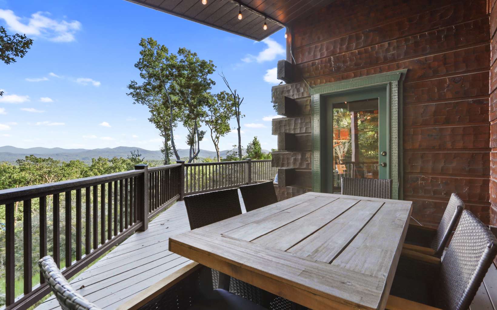 Luxury lodge style retreat completely updated with 180 degree Long range mountain views – offered turnkey!! Paved road access with circular drive and plenty of parking, and easily accommodating up to 18 guests, this 6 bedroom plus bunk house is the ultimate true log mountain escape! Upscale finishes and designer touches throughout with a comfortable layout including 2 primary suites on main. With views from every room and wrap around porches and multi-level decks there are plenty of gathering areas inside and out. Massive floor to ceiling stone fireplaces (one that can be converted to wood burning, oversized bedrooms, huge open loft space with private balcony and impressive terrace level great room with 12ft ceilings and wet bar. Entertainers dream with large indoor and outdoor dining options, and amazing new fire pit area off the terrace level patio. Meticulously maintained and recent updates that include whole house staining, new roof, fire pit, appliances, updated dual HVAC system, and 3 car oversized garage finished as additional great room space with game room, TV and AC system! New TV in each bedroom and the two story bunkhouse with additional great room and bunk beds is a must see! Power for EV hookup and high speed internet with easy access to all things Blue Ridge has to offer including the Toccoa River, Lake Blue Ridge, golf, shopping, dining and more. Incredible luxury rental potential!