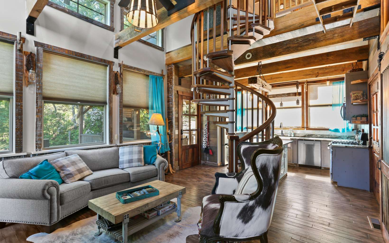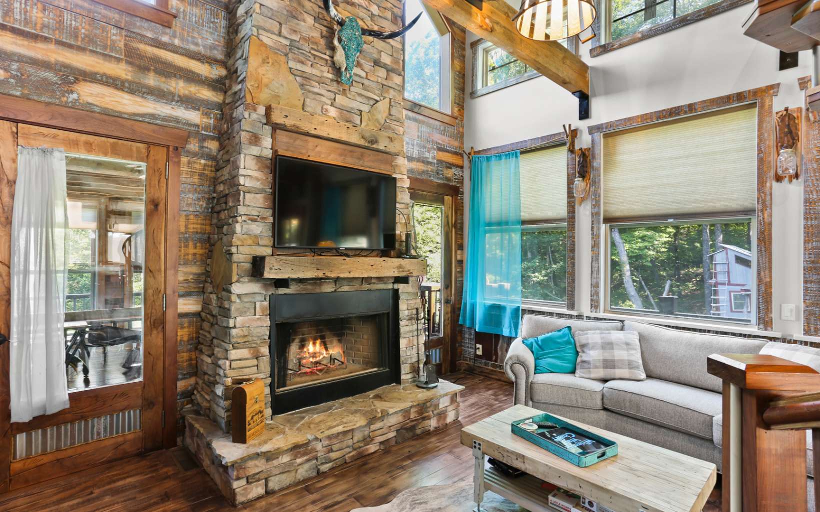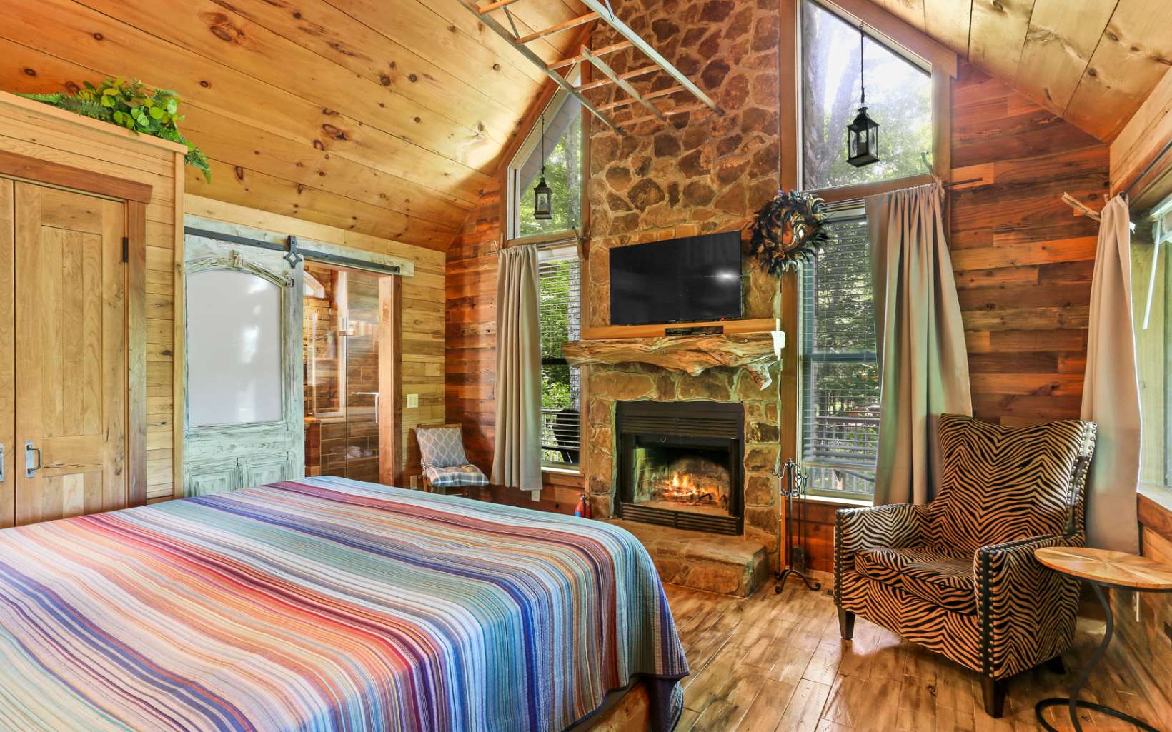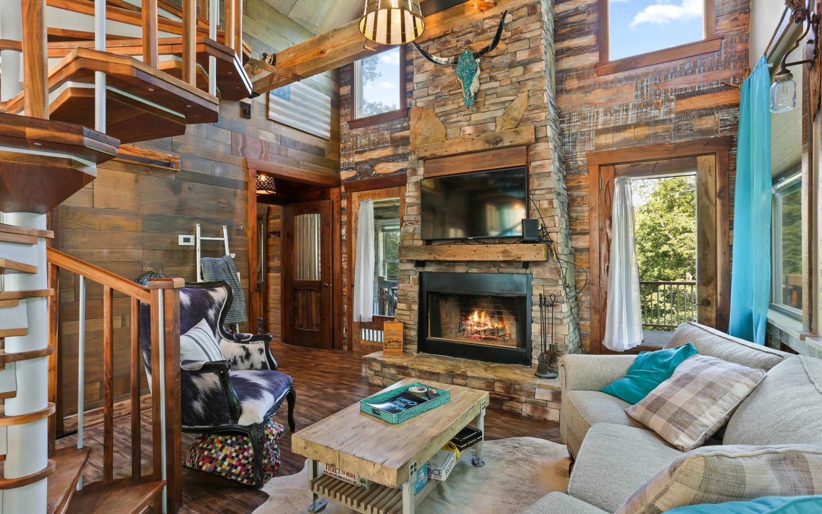 Welcome to Whimsy Way Chalet! Stepping into this chalet is a truly unique and creative experience! The blend of rustic and artistic elements, such as barrels, tin, rock, and various unique woods, creates an enchanting atmosphere. The cabin's design reflects imagination and practicality, offering a cozy and charming space. One of the highlights of this chalet is its year-round mountain views, allowing you to enjoy breathtaking sunsets. The outdoor living spaces are extensive, including a large, covered porch with a fireplace and a fire pit for cozy gatherings. Additionally, there is an intriguing "Dr. Seuss style" outbuilding that could serve as a lounge area and even accommodate two people upstairs, adding to the cabin's charm. Additionally, a hot tub is on the deck, further enhancing the outdoor experience. Inside, the kitchen has been upgraded, providing modern amenities for convenience. The cabin is available completely furnished, saving you the hassle of finding furniture and décor. The second bedroom on the top floor, accessible by spiral staircase features a full bathroom with a barrel entrance and Juliette Balcony adding a touch of whimsy. The lower level of the chalet offers a wet bar, pool table and a half bathroom, perfect for entertaining guests. This space could be configured as a third bedroom. It's worth noting that the original cabin was built in 1995 as a master suite, and a recent addition and remodel were completed in 2020. With its unique design and appeali