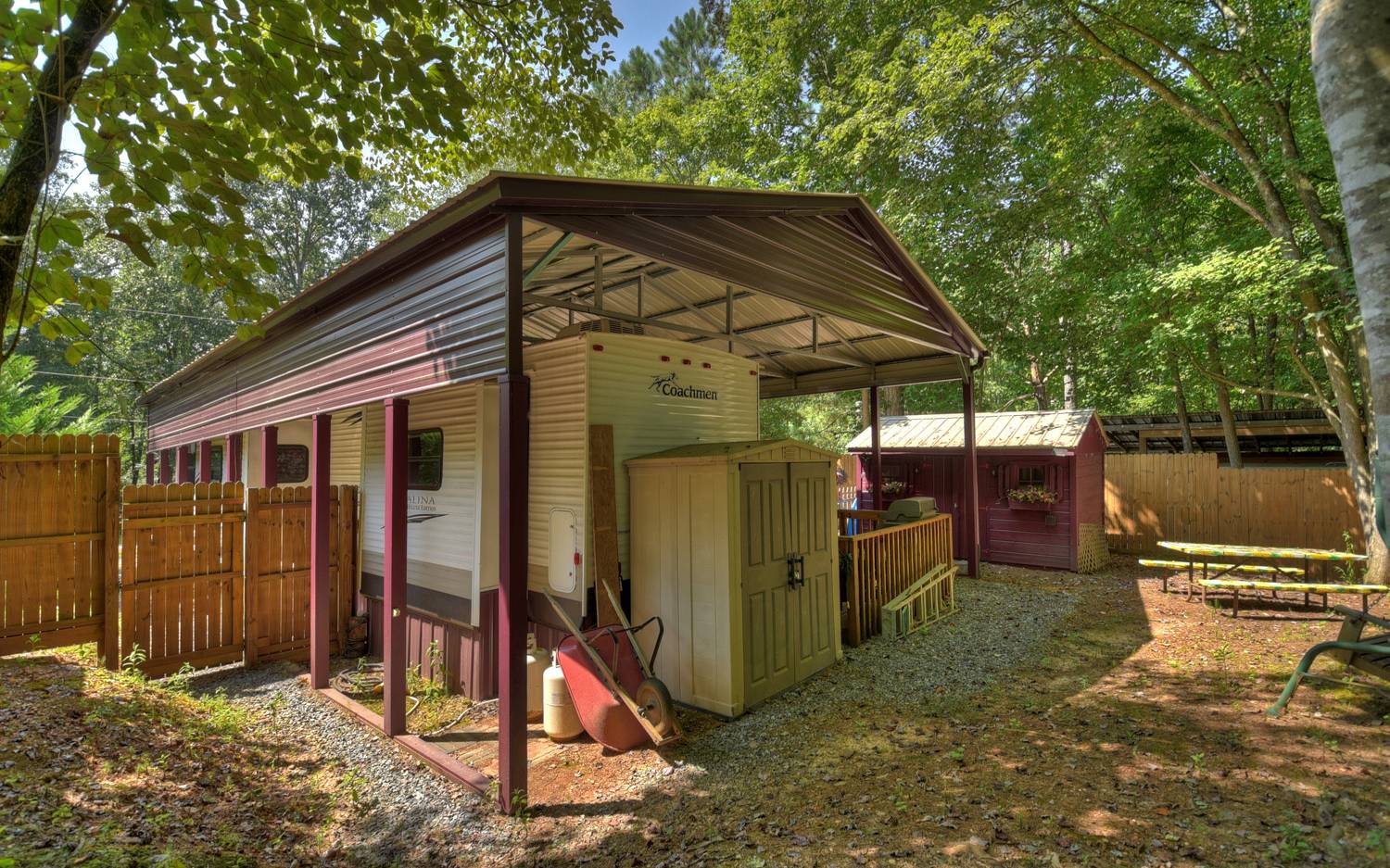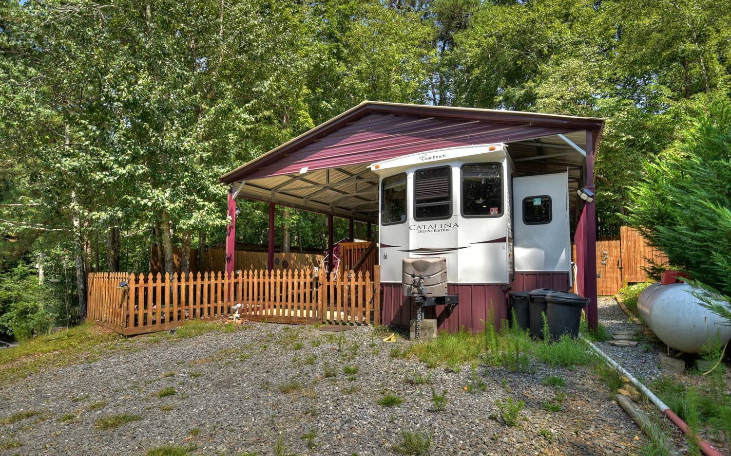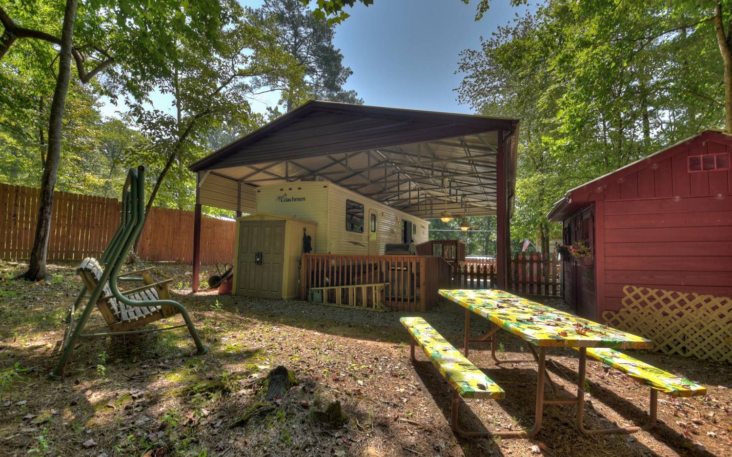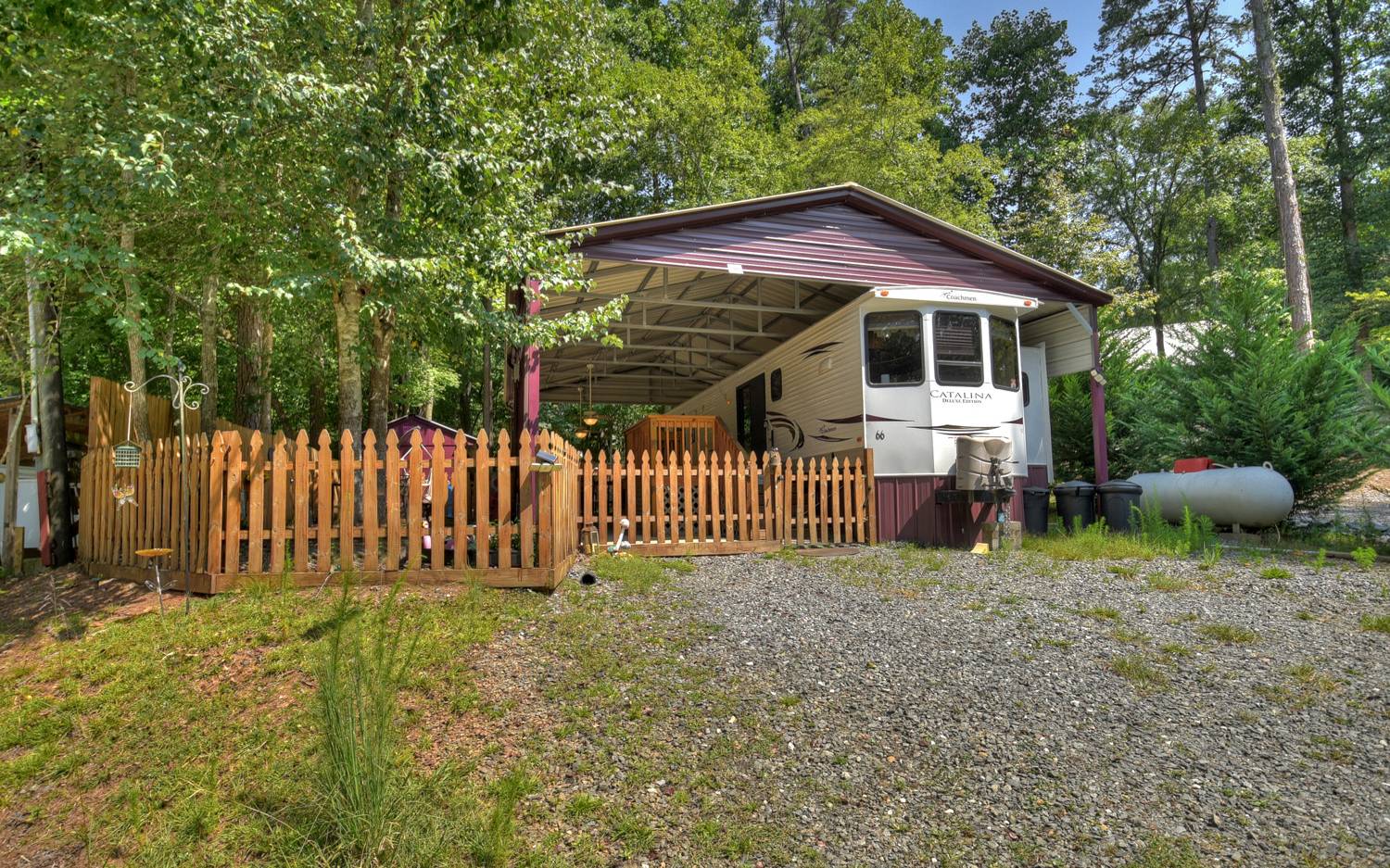 This 1 bedroom, 1 bathroom covered R.V. is the perfect retreat in the Coosawattee River Resort! The spacious, fenced yard offers tranquility, privacy, and lots of room to play for your furry friends. Accessibility is a breeze with wheelchair-friendly features. Inside the R.V., a cozy queen bed and fireplace await, ensuring comfort year-round. The convenience continues with an in-R.V. washer and dryer. Covered outdoor space has fans and lighting. Embrace a lifestyle of relaxation and adventure in this unique property. Amenities such as river access, gated entrance, 3 pools (one indoor), tennis/basketball courts, mini golf, parks, pavilions, and walking trails. In the heart of wineries, eateries, antique stores, hiking/biking.
