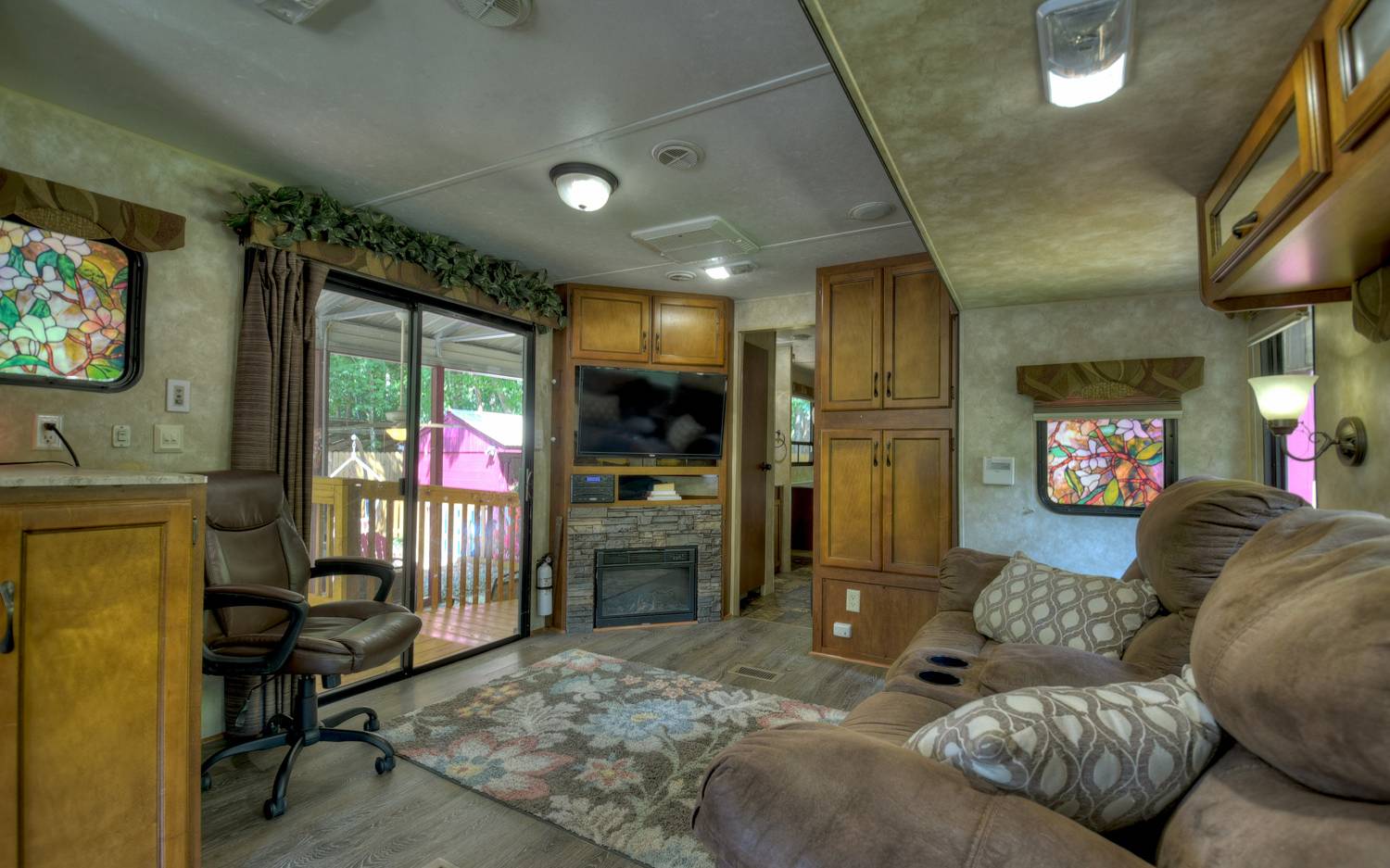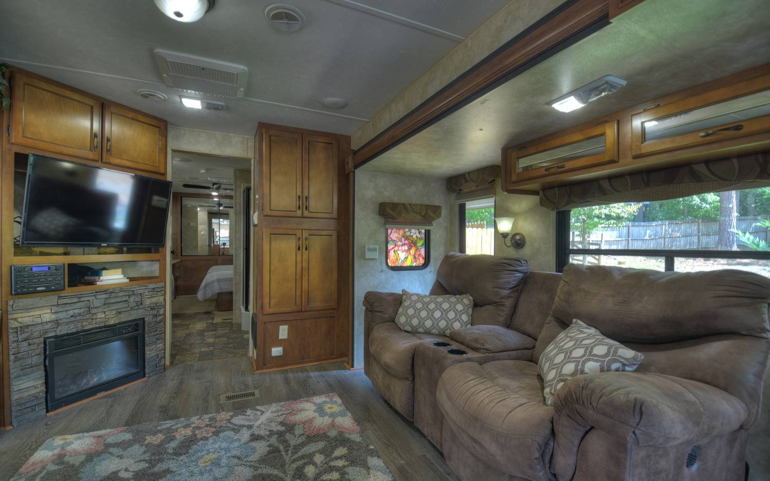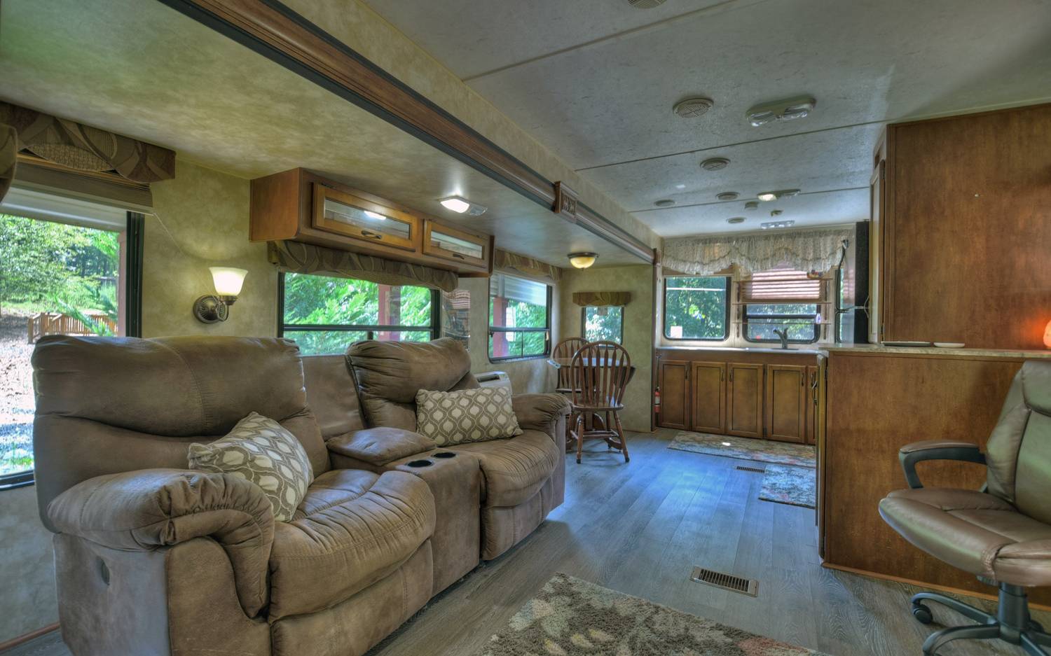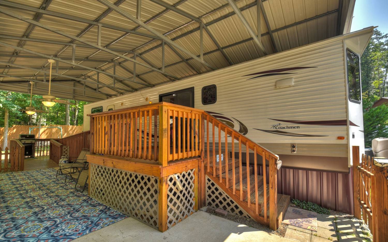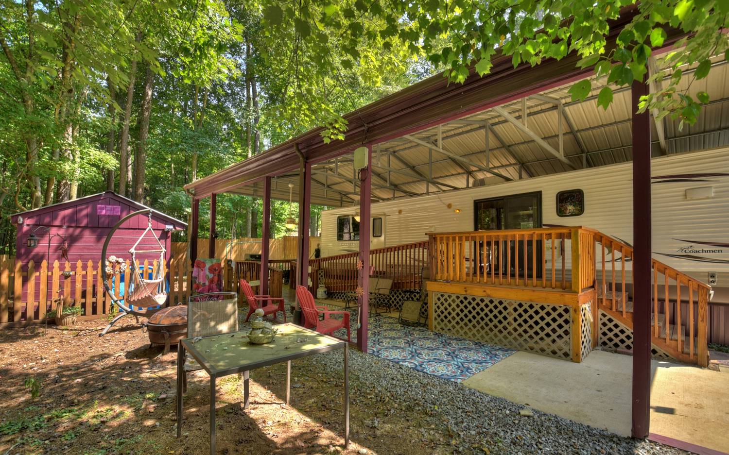 This 1 bedroom, 1 bathroom covered R.V. is the perfect retreat in the Coosawattee River Resort! The spacious, fenced yard offers tranquility, privacy, and lots of room to play for your furry friends. Accessibility is a breeze with wheelchair-friendly features. Inside the R.V., a cozy queen bed and fireplace await, ensuring comfort year-round. The convenience continues with an in-R.V. washer and dryer. Covered outdoor space has fans and lighting. Embrace a lifestyle of relaxation and adventure in this unique property. Amenities such as river access, gated entrance, 3 pools (one indoor), tennis/basketball courts, mini golf, parks, pavilions, and walking trails. In the heart of wineries, eateries, antique stores, hiking/biking.