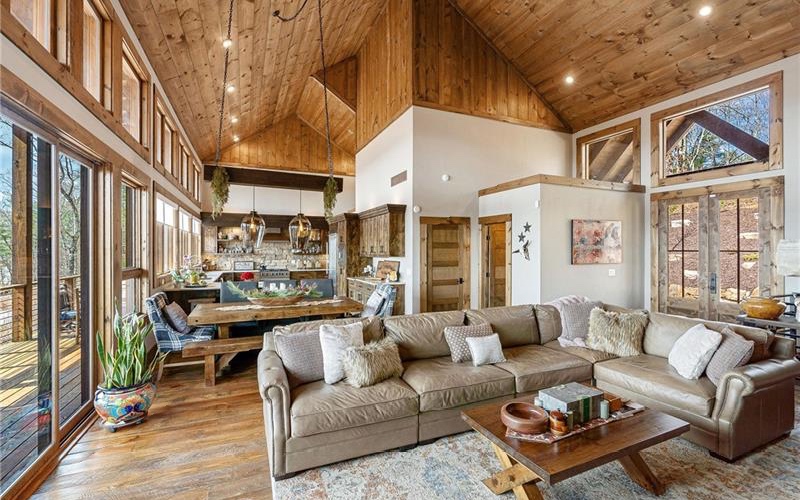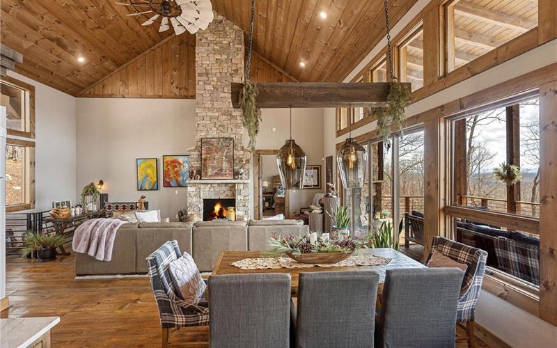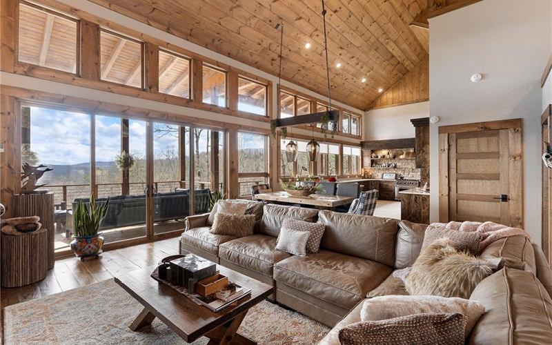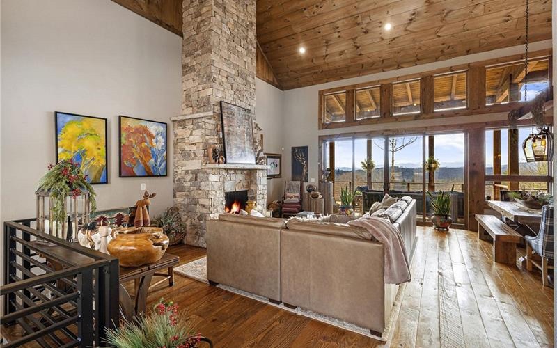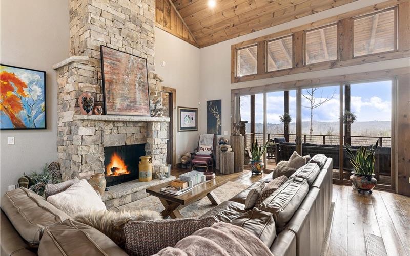 Welcome to your FULLY FURNISHED luxurious mountain home tucked away in the Hidden Acres subdivision of Blue Ridge. This modern home is like new and located within 140 acres which is soon to become a gated community on city water and paved roads. The views are absolutely breathtaking from the top of Blackjack Ridge. The landscaping is professionally designed and the interior is brimming with premium upgrades and designer touches throughout. There is ample space for entertaining in the great room, completed with floor to ceiling stacked stone gas log fireplace, dining area with scenic mountain views, a gourmet kitchen with Viking appliances and 6 burner gas range. In addition, the scullery room is right off the kitchen for any overflow. Highly desired master on main with natural light and incredible master bathroom suite with soaking tub and a walk-in glass shower. Additional en-suite also located on main level. Electric covered window coverings with remotes throughout home. Take advantage of the back porch right outside of the great room and the stacked stone fireplace. Downstairs you will find a cozy family room where you can gather by another stacked stone gas fireplace, gathering area, two more en-suites and a storage room. When you walk out on the lower level, you'll find a porch with spectacular views such as the rest of the home. Follow the stone pathway to the fire pit, perfect for fall nights.