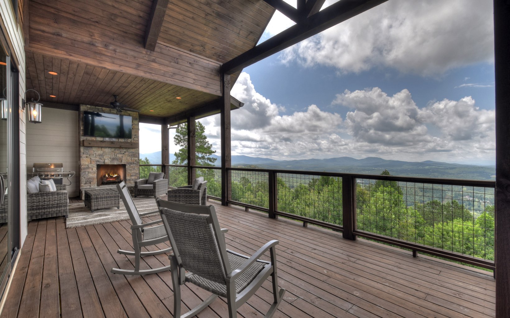 Located in the highly desired Thirteen Hundred, not only will you enjoy amenities like no other in North Georgia, you will experience luxuries like no other in this exquisite new construction home, as well. You will be captivated by mesmerizing scenery from the moment you arrive at the gate, and the view only gets better as you travel to your new home where you’ll enjoy panoramic mountain views of three states from all levels. This craftman-style dreamer showcases the meaning of refined mountain living. Upon entry, you’ll notice the wall of glass overlooking the view that is emphasized by the soaring ceilings with a beautiful blend of wood & drywall including beams in the kitchen & dining area. The stacked stone fireplace will guide your eyes back down to the wood floors that lead you throughout the rest of the home. You’ll appreciate the custom cabinetry throughout with bold countertops that emphasize them in the kitchen. Other highlights include 5BR/5.5BA, upscale lighting throughout with accents galore, plantation shutters, basement kitchenette, barn doors, custom tile showers, double vanities, soaking tubs, spacious laundry/mud room, multiple fireplaces indoors and out, and attached garage with private suite upstairs complete with its own private balcony just to name a few. Impeccable workmanship and attention to detail - what more could you ask for?