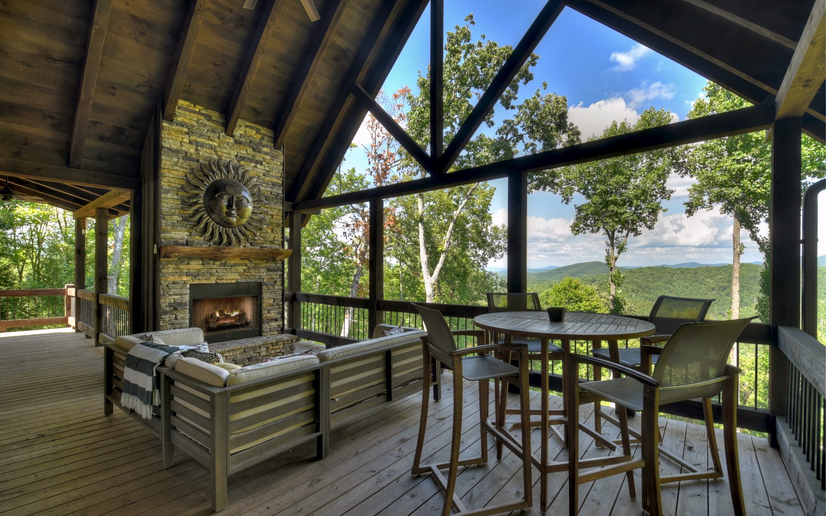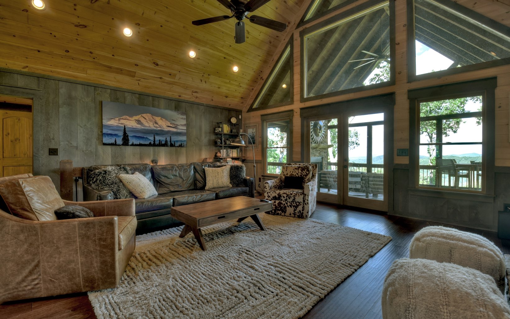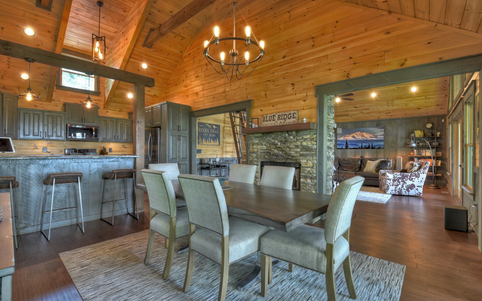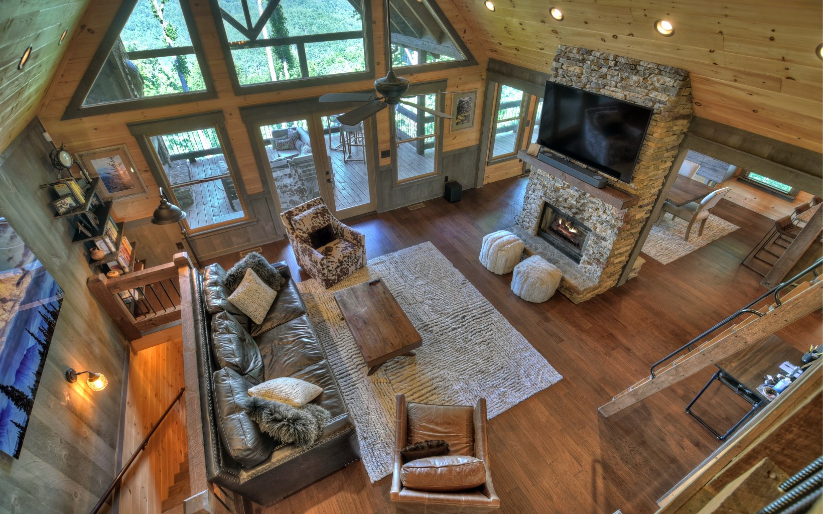 Untouched Long Range Mountain Views & Deeded Toccoa River Access in …Aska Adventure Area..A rare find indeed! Stunning like new rustic ranch home close to historic downtown BR & recreation areas, true craftsman quality with rustic flair & distinct detail...3 bedroom/3.5 bath + loft cabin is perched on large wooded tract with towering hardwoods & lush landscape, lavish living area boasts sky high ceilings & glass front with lovely loft, "see thru" fireplace in family/dining room, unique & warm industrial finishes, plentiful glass, custom cabinetry w/granite & stone counters & showers, upscale fixtures & free standing tub, finished terrace level w/wet bar & guest rooms w/private baths, massive stone fireplaces inside & on oversize "party porch", private deeded river access just a short walk away, fabulous firepit area, small end of road community w/ultimate privacy, convenient & tucked away…tastefully furnished and turn key for fab full time living or much needed getaway…great investment!