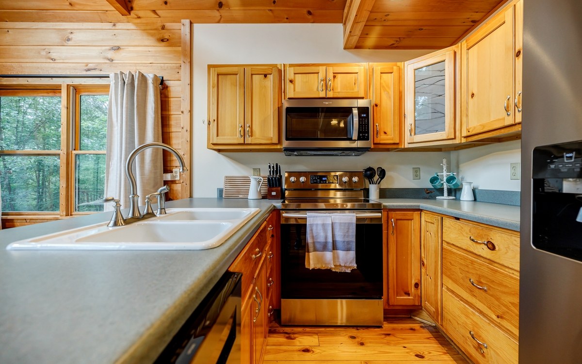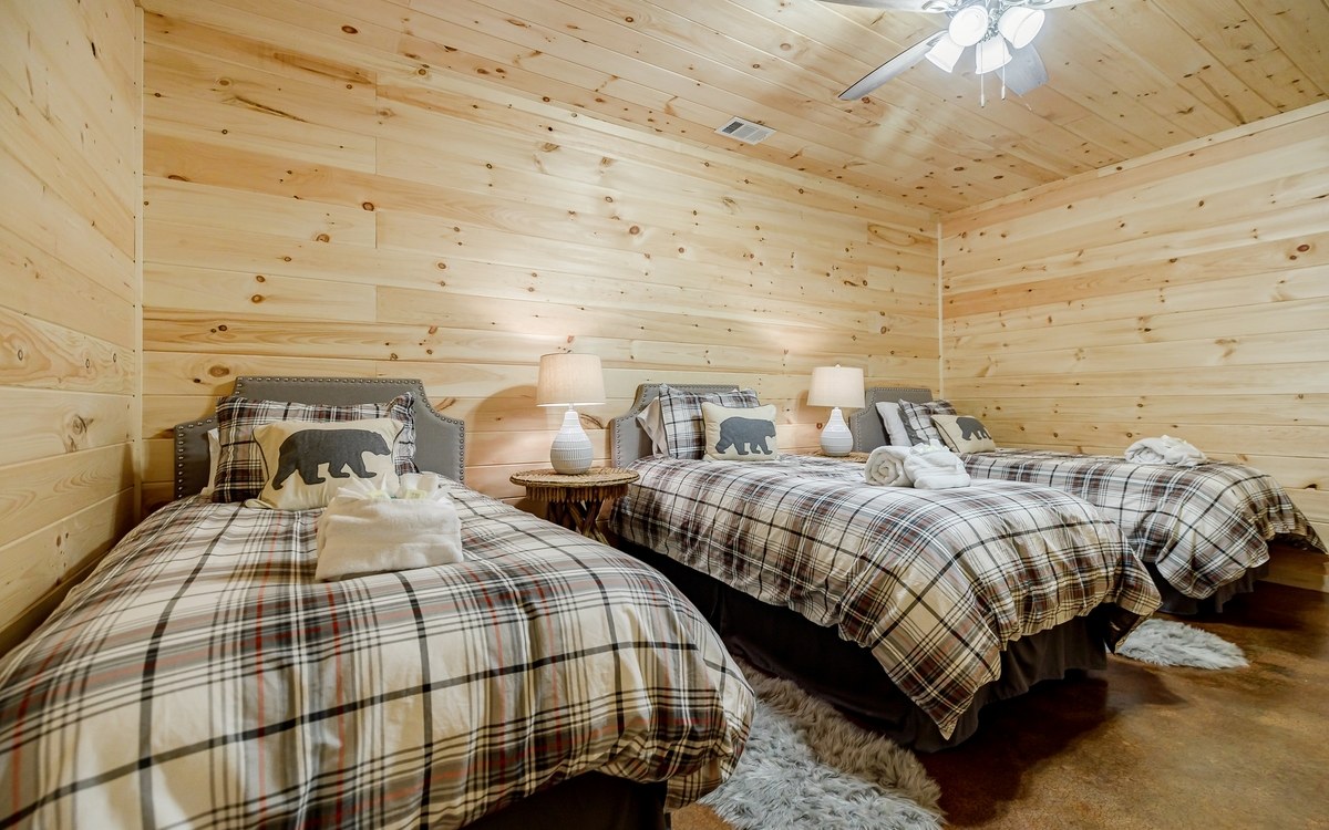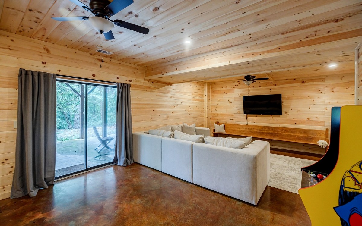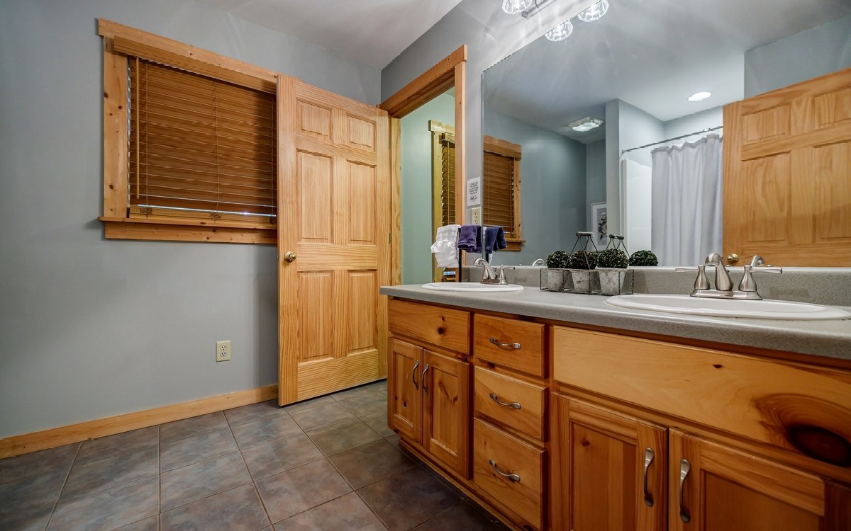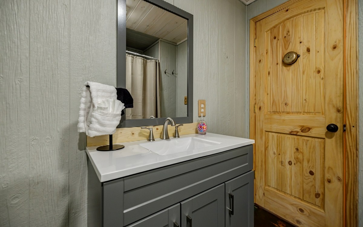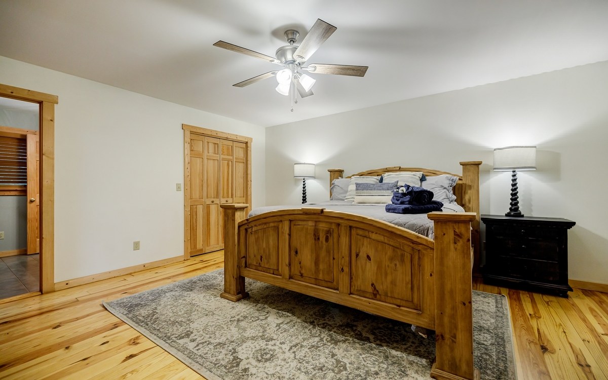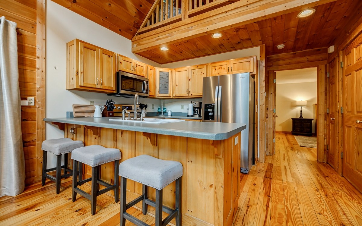 A large porch with year road mountain views is what a true mountain house is made of! This FULLY FURNISHED cabin is far enough away to enjoy the quiet seclusion of the mountains but only 15-20 minutes away from the hustle and bustle of quaint downtown Ellijay, rafting outfitters and many more orchards and vineyards. Two primary suits along with a second family room on the terrace level for movie/game night (don’t miss an intense round of Pac Man), full bath and bonus room also gives access to the hot tub and pathway to enjoy smores around the large fire pit. The main living level not only has an oversized porch with beautiful mountain view but also has a screened in porch already set for alfresco dinners under the stars. Wood burning, stacked stone fireplace is the perfect accent to the wood walls and cathedral ceiling. 2 sets of sliding glass doors and large windows in the peak bring light in on the wood beams and give the views you buy the property for! Both primary suites have private en suites and walk in closets on the main floor as well as upstairs along with a loft area, a perfect book nook. All furniture and accessories, chosen by a designer, are to stay with the cabin. The community also offers picnic tables, fire pit, pavilion and babbling brook with swings just a short walk from the property.