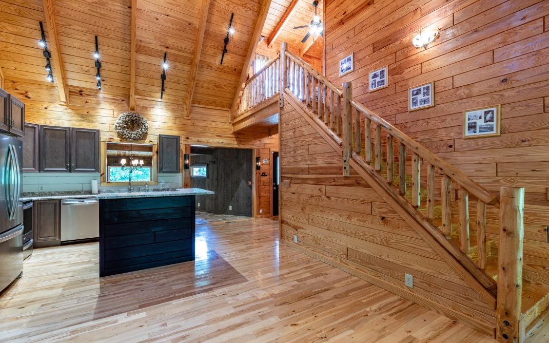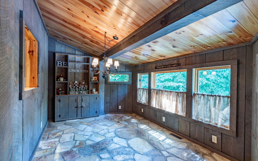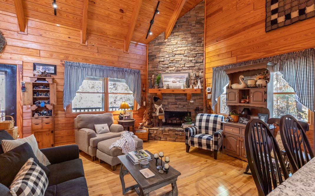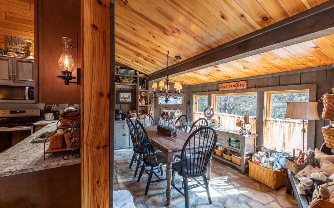 This can be your Home for the Holidays! Move in ready and PRICED to SELL! Peaceful picturesque setting convenient to the many area attractions! Recently-painted exterior, new driveway gravel & updated interior plus beautiful landscaping w/ perennials & mature trees/shrubs w/ no grass to cut. Original-owner home is move-in ready! Enjoy beautiful sunrises from the front porch & sunsets from the back deck. Entertain in the custom rustic-style DR, rec room downstairs, back deck & patio, or fire pit area. Yet savor your privacy w/ 1 BR per floor. Vaulted upstairs w/ loft area, BR overlooking trees, & full BA. Main level open concept eat-in Kitch/LR w/ wood FP; sep. DR w/ window wall w/ mountain view. 2-story workshop w/ electricity, cabinets, & loads of storage. Hickory, LPV, & stone flooring. Loads of parking. Gently-sloped woods w/ potential vista pruning for ridge view. Full of character!