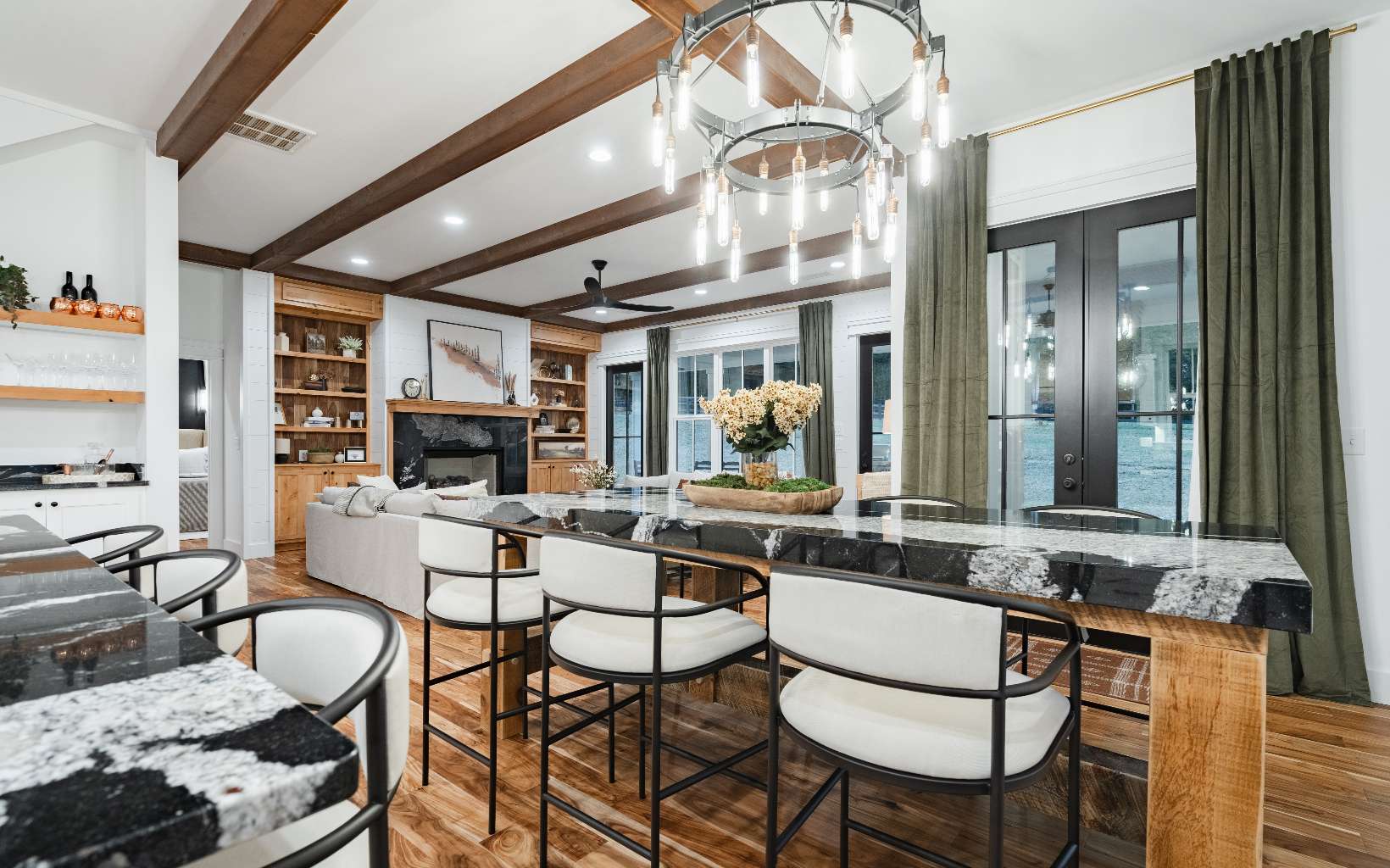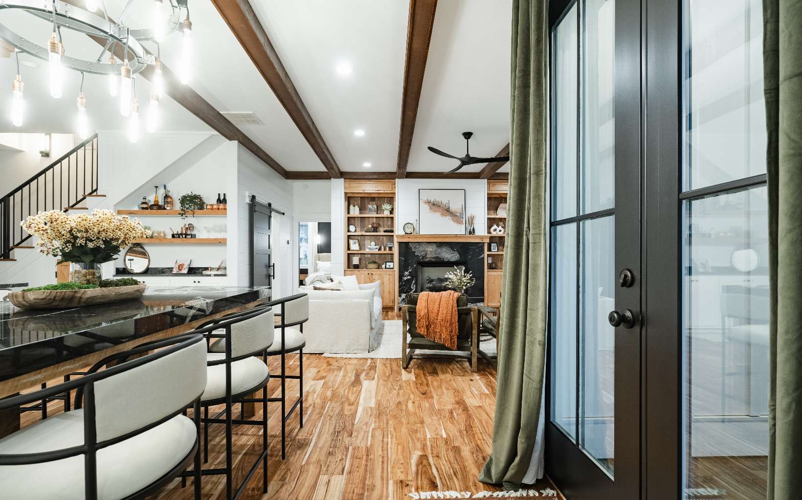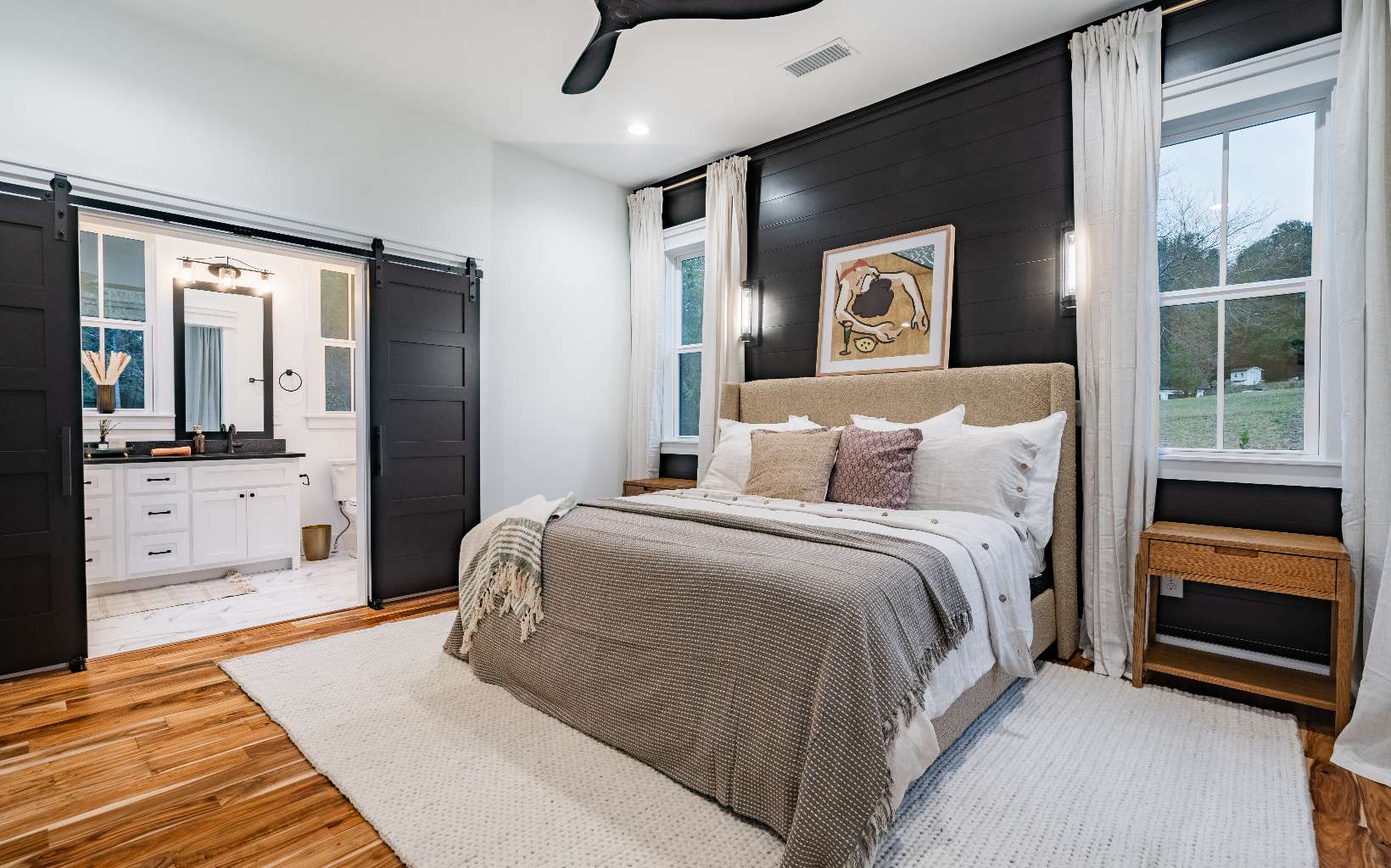Step in & and take in the perfect mix of modern farmhouse & mountain living. This layout, designed & built by Kevin Teague Custom Homes, boasts a seamless flow that transitions from room to room. At first view, you will be greeted by tall ceilings, exposed beams, warm wood built-in book shelves, custom cabinetry, and the sleek fireplace. The main level features the master suite with thoughtfully designed finishes, a large soaking tub, tile shower, and spacious walk-in closet. Upstairs, you'll find 3 generously sized bedrooms with en suite bathrooms providing full privacy for your family & guests. The 2nd level also allows for the perfect space for a home office with a view. Outside, you'll find a two car garage with a breezeway, perfectly landscaped grounds, and a full outdoor kitchen on the back patio to compliment the farmhouse style. Only 5 miles from town, gated community, all paved roads, and easy access.... Feels like home to me.