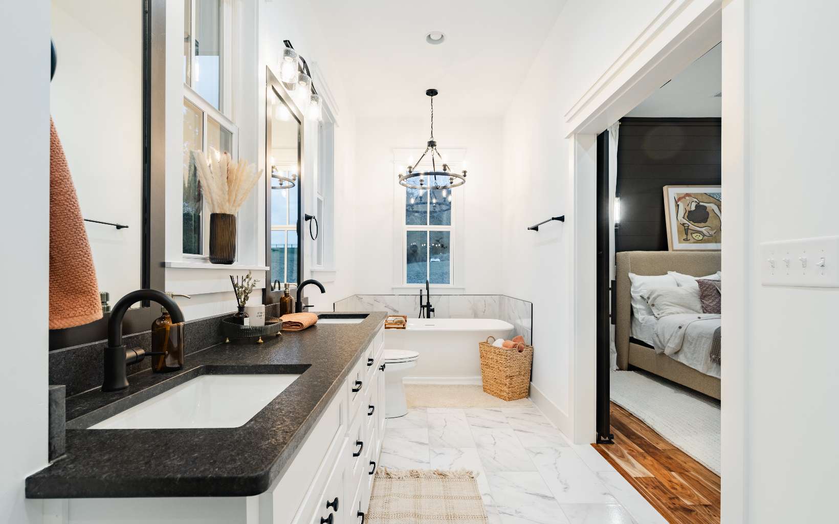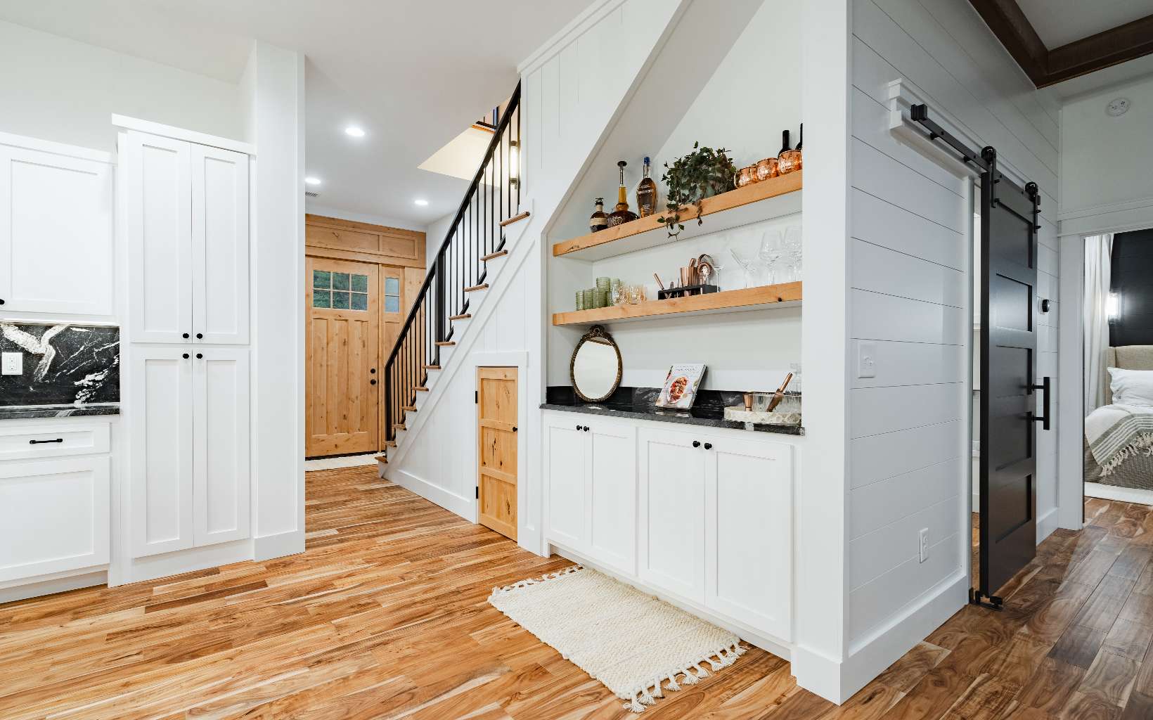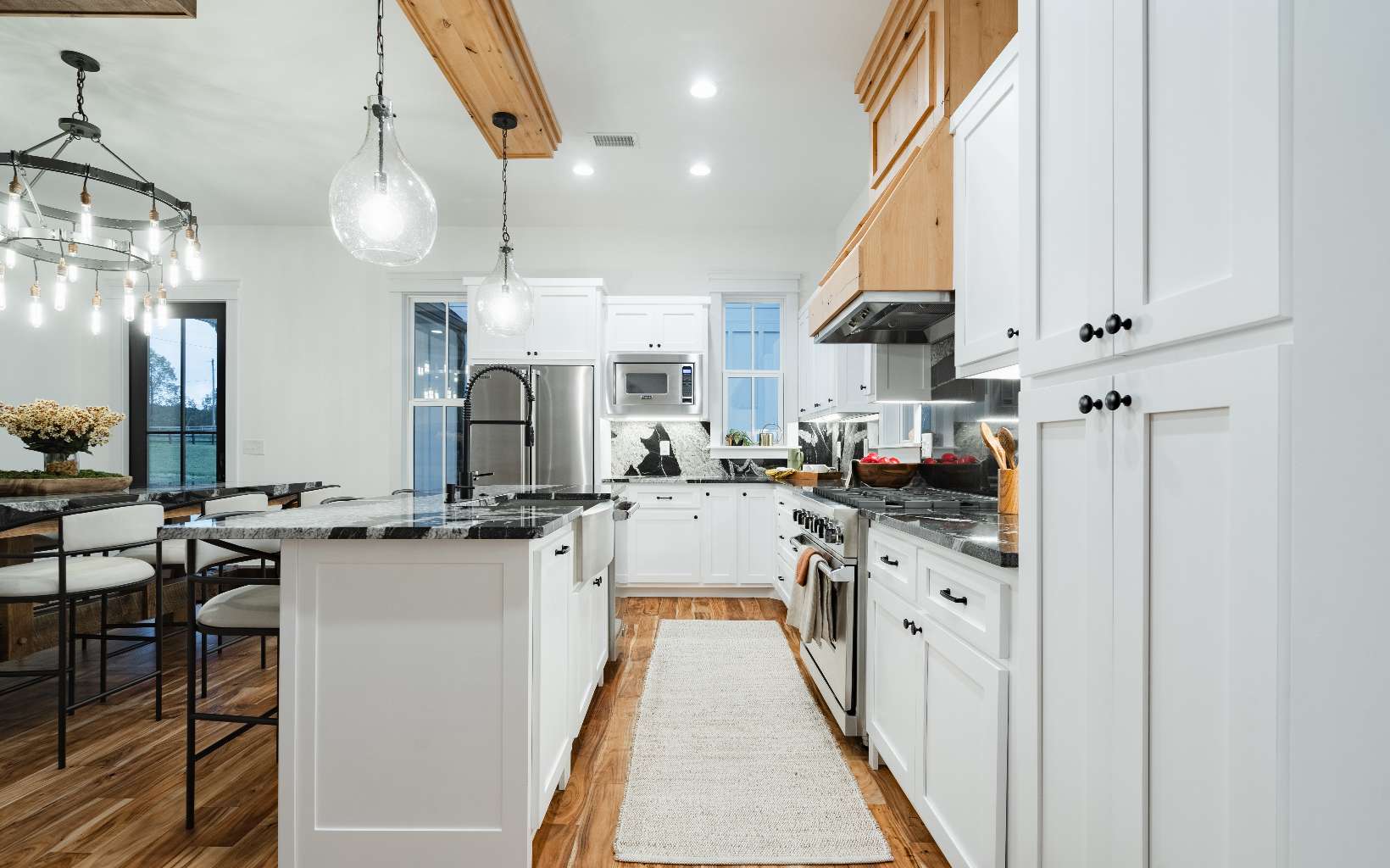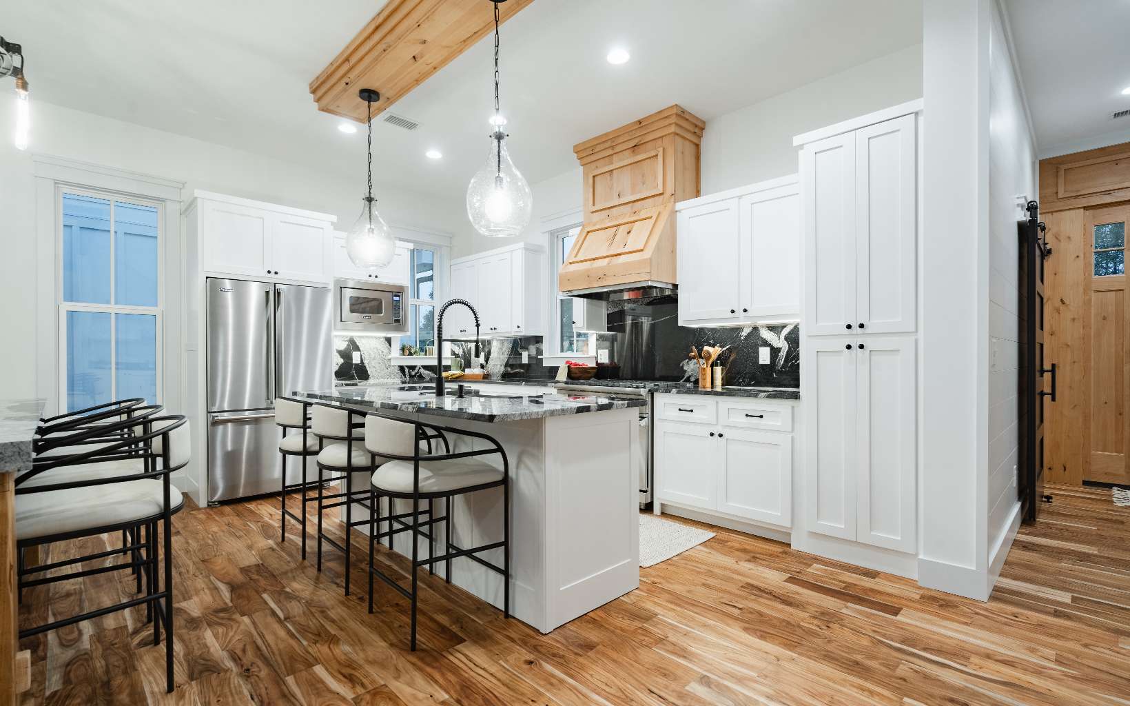 Step in & and take in the perfect mix of modern farmhouse & mountain living. This layout, designed & built by Kevin Teague Custom Homes, boasts a seamless flow that transitions from room to room. At first view, you will be greeted by tall ceilings, exposed beams, warm wood built-in book shelves, custom cabinetry, and the sleek fireplace. The main level features the master suite with thoughtfully designed finishes, a large soaking tub, tile shower, and spacious walk-in closet. Upstairs, you'll find 3 generously sized bedrooms with en suite bathrooms providing full privacy for your family & guests. The 2nd level also allows for the perfect space for a home office with a view. Outside, you'll find a two car garage with a breezeway, perfectly landscaped grounds, and a full outdoor kitchen on the back patio to compliment the farmhouse style. Only 5 miles from town, gated community, all paved roads, and easy access.... Feels like home to me.