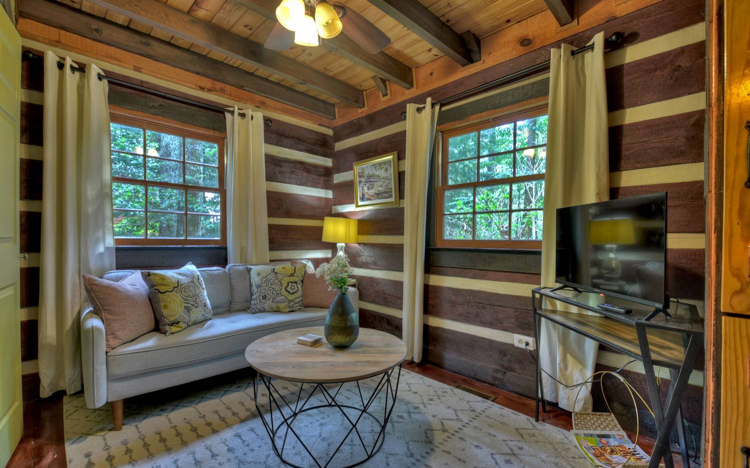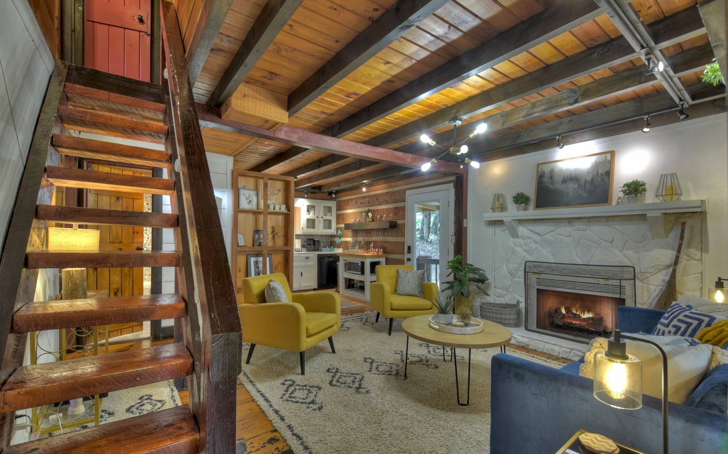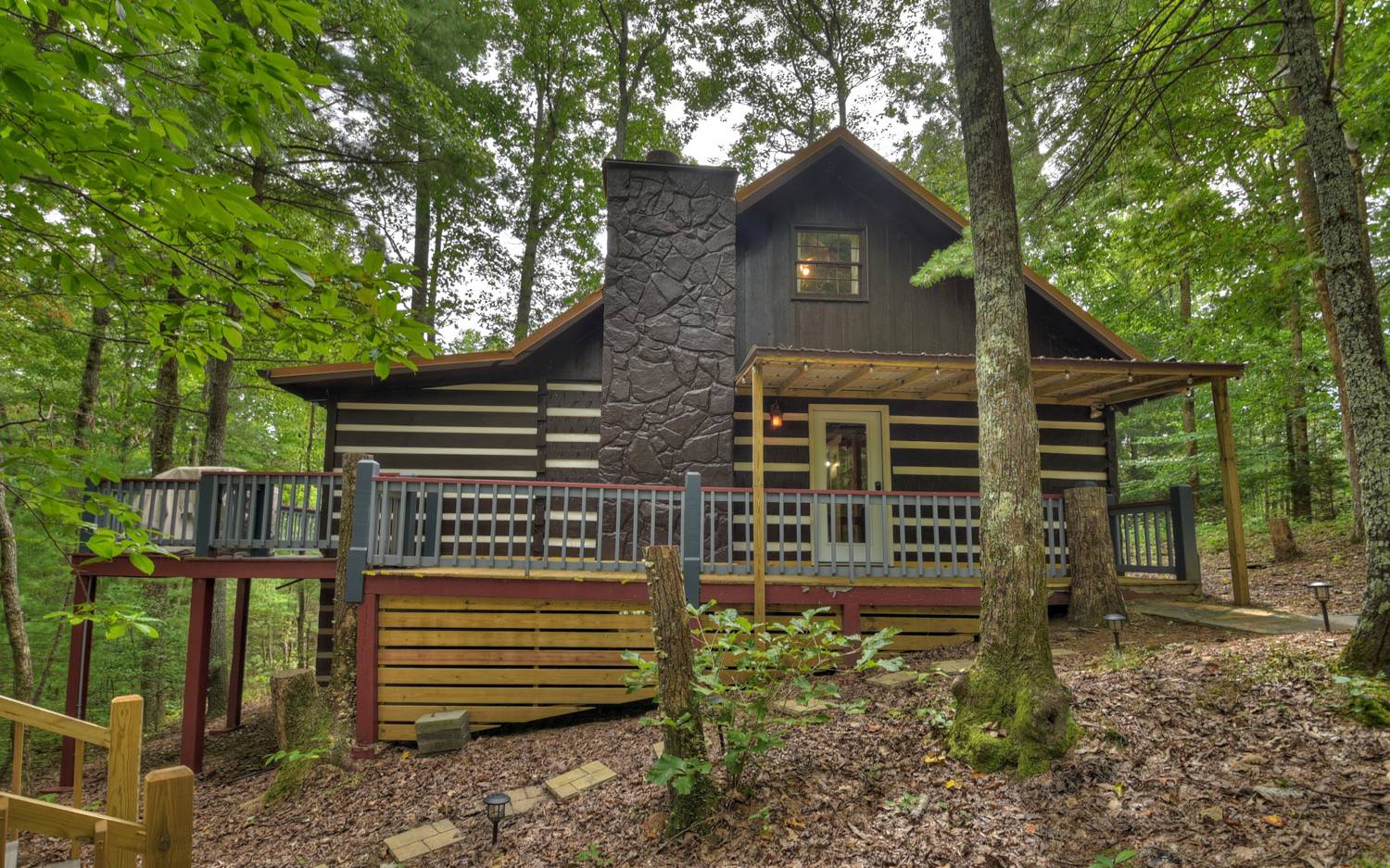 Cherry Log Charmer… This dream cozy cabin is just what a getaway cabin in the woods should be! Tucked away between the memory making mountain towns of Blue Ridge and Ellijay, this lovely log retreat offers character galore! On the exterior you’ll appreciate plenty of space to take in "the great outdoors" from large party wrap around deck to the private hot tub deck all across this gentle usable lot. Enjoy a walk to the common lake access nearby on Cold Mtn. Lake where you can fish, paddle boat, canoe or just unwind & enjoy the peace & serenity of the wildlife & native flora...it’s truly picture perfect! The indoors offers 4BR's (or 3 BR's + den/office as currently set up as) & 2 full baths (upstairs BA is split w/ shower in BR + half bath in hall) Open concept floor plan from the living/kitchen & dining rm area featuring stone FP w/ gas logs to snuggle up to (FP can be converted back to wood burning should you wish). Would make a great STR w/ no rental restrictions & can be purchased fully furnished (furnishings offered separately via a Bill of Sale) making it a TURN-KEY READY property! Oh cabin sweet cabin!