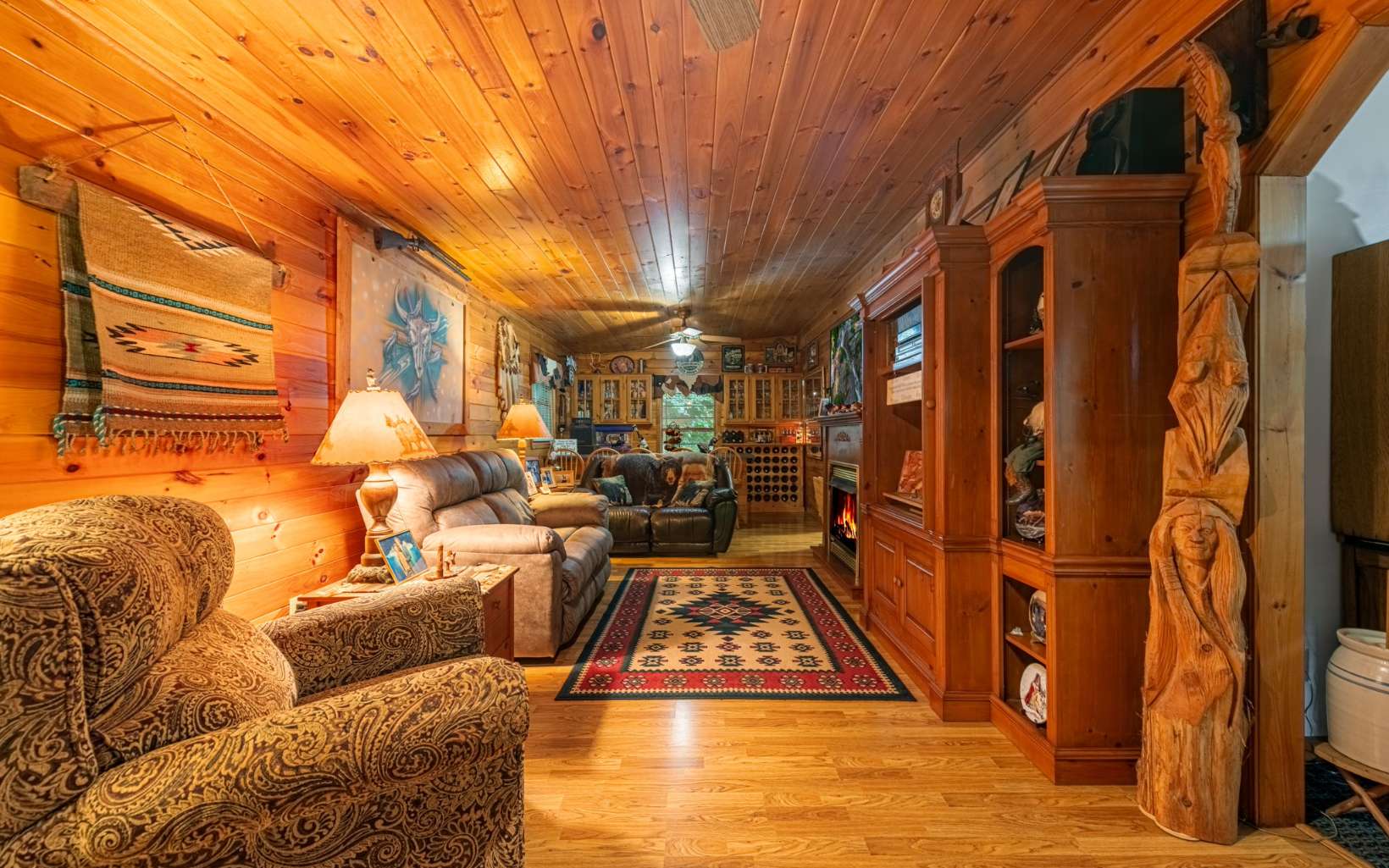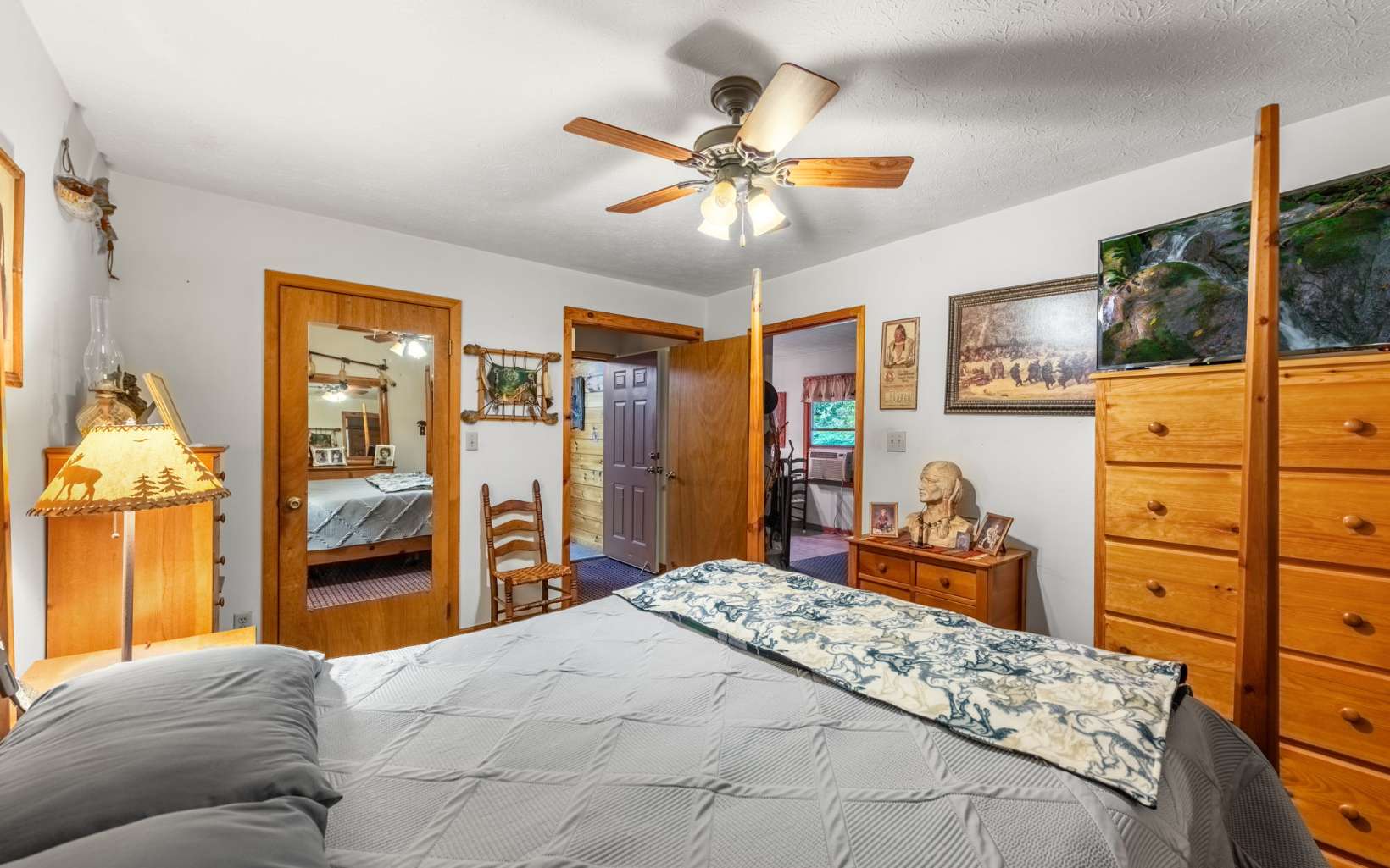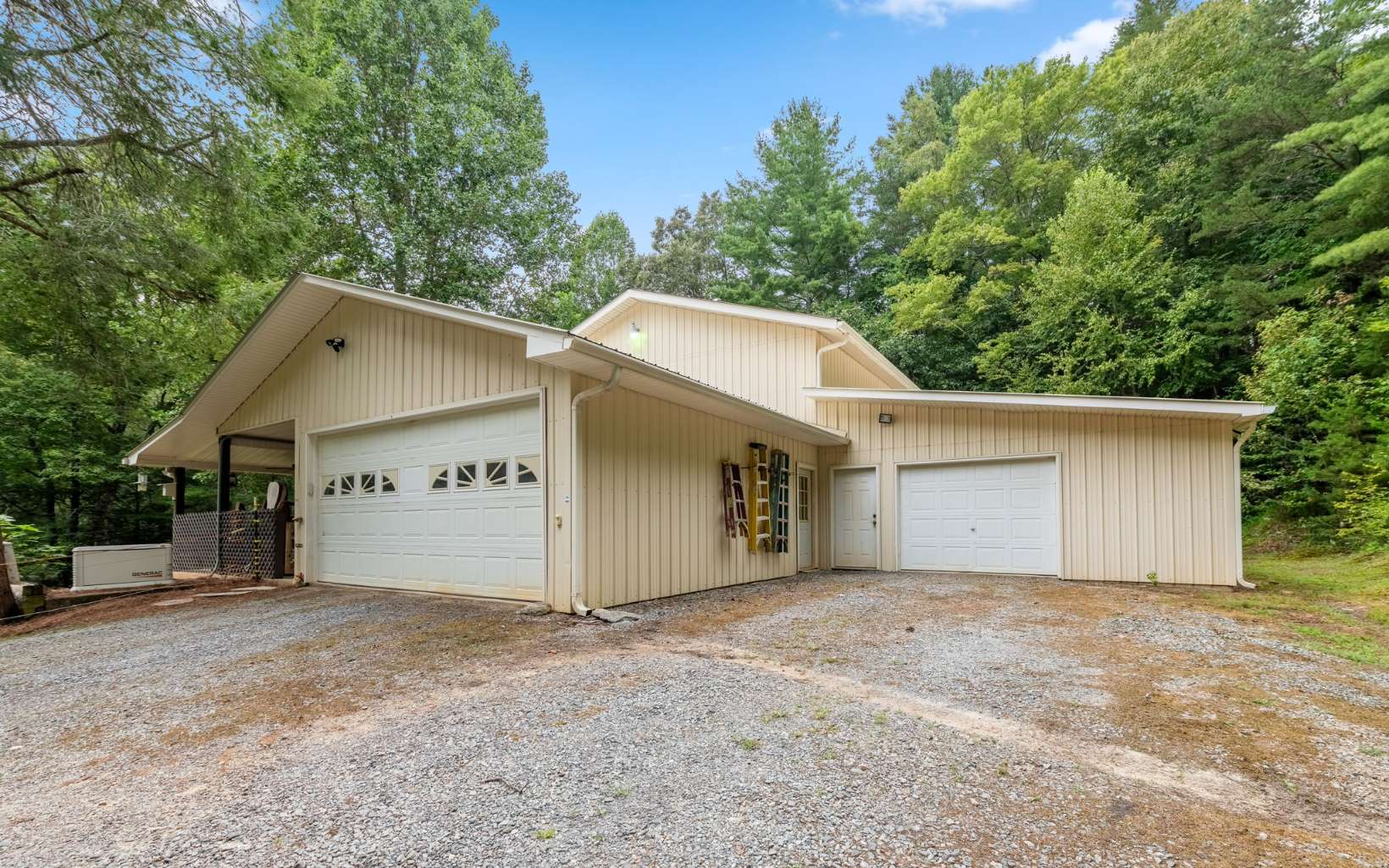 Introducing an exceptional opportunity to own creekfront acreage, brimming with limitless potential & possibilities. This property is perfectly suited for a mini-farm or a family retreat, offering a tranquil setting sited within a mere 5-mile radius of Downtown Blue Ridge, Lake Blue Ridge, Toccoa River, & the renowned Aska Adventure Area. This barndominium's main level boasts the primary bedroom & a full bath, a bonus room, a spacious kitchen/dining area, a laundry room, a living room complete with a bar, an expansive pantry, and a well-appointed office space. Ascend to the upper level, where an expanse of unfinished space awaits, ideal for your extra storage or expansion. Additionally, the upper level presents an additional bedroom, a versatile bonus/rec area, & a full bath. Seamlessly integrated is a 2-car garage, along with an attached separate garage, tailored to accommodate all your needs for heavy equipment & yard maintenance. Also within this property is a 24x28 slab w a septic system already in place that resides right alongside the creek. Furthermore, an inviting small lake, complete w a charming dock, beckons to be enjoyed. A covered shed, another valuable asset within this property, offers refuge & protection for your belongings. The crowning jewel is an additional workshop that features that features central air, allowing you to engage in your artistic pursuits or woodworking endeavors comfortably.
