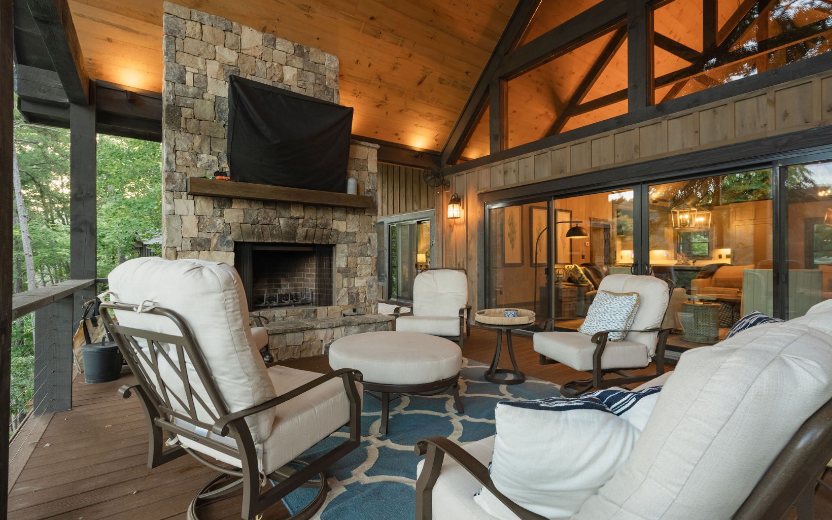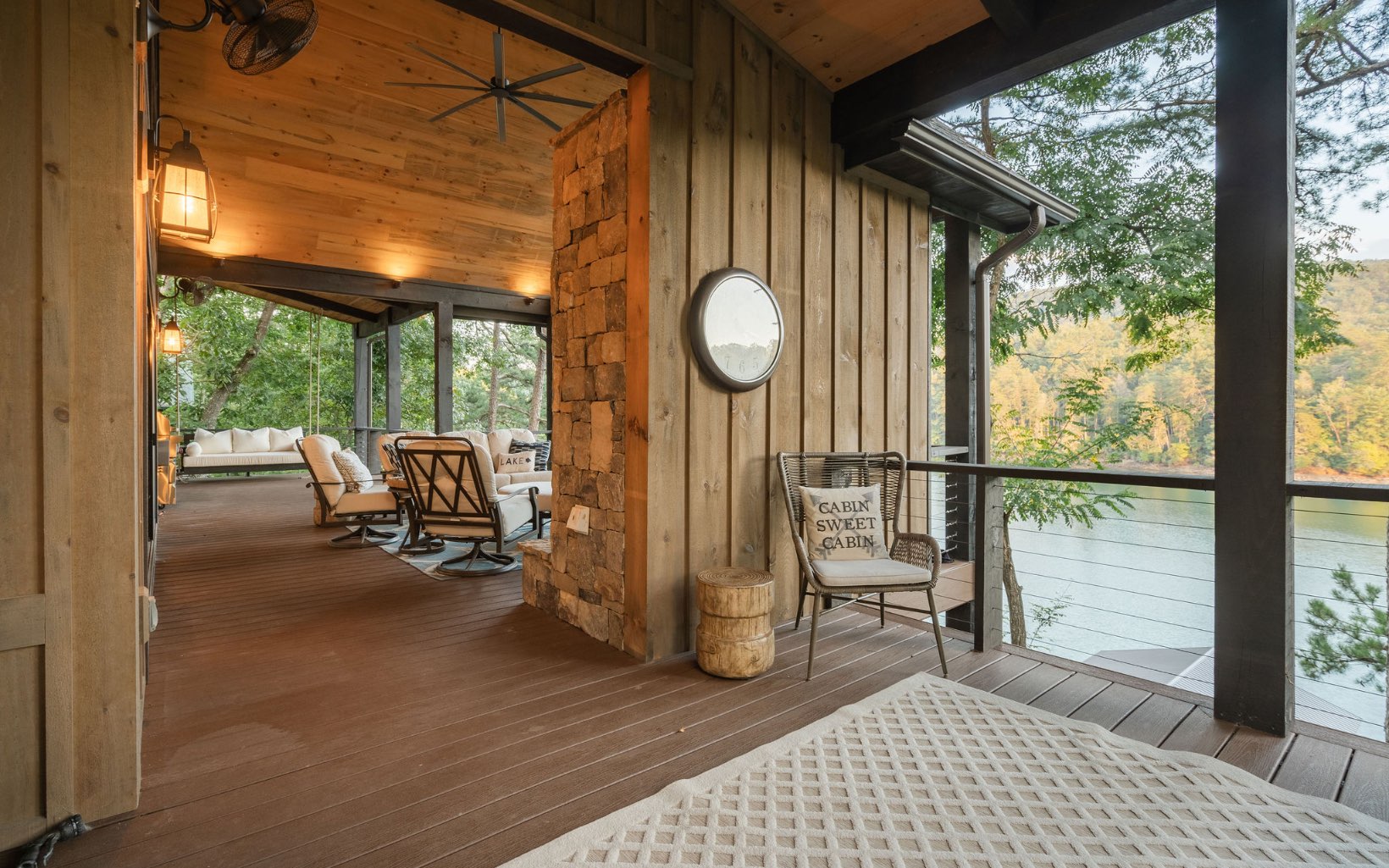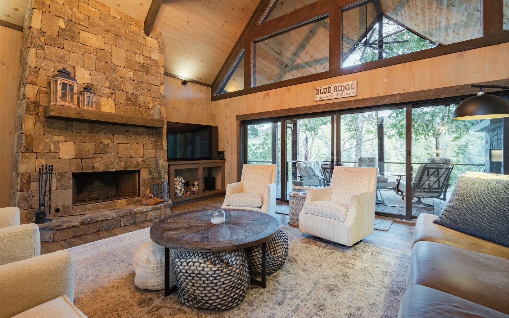 A quintessential mountain oasis blending stunning craftsmanship and refined contemporary elements throughout, 1288 Fishhook Point gives new meaning to lakefront living. Complete with two levels of open-concept living, sprawling outdoor space with three levels of covered outdoor decks and wide-open views of the lake and USNF across the channel, this home has four full bedroom suite with an additional bunk room and two powder rooms, making it the perfect gathering retreat. Cathedral ceilings on the main level and stunning beam work blend seamlessly with walls of glass from the living room and bedrooms for ideal indoor-outdoor living. Masonry fireplaces inside and outside create a rustic ambiance perfect for all seasons. Equipped with Wolf appliances throughout the home, custom inset cabinetry, quartzite countertops, hardwood floors, trex decking and custom lighting. Terrace level complete with large den and coffered ceilings, large F/P, full wet bar, addt’l bunk room and large party deck. Home is located in the highly desired Aska Adventure Area minutes away from sought-after hiking and biking trails. The home is on a gorgeous year-round deep water lot w/ a brand new boat dock and Nat’l Forest views across the water. Built in 2021 and a rarity in the mountains, call today!
