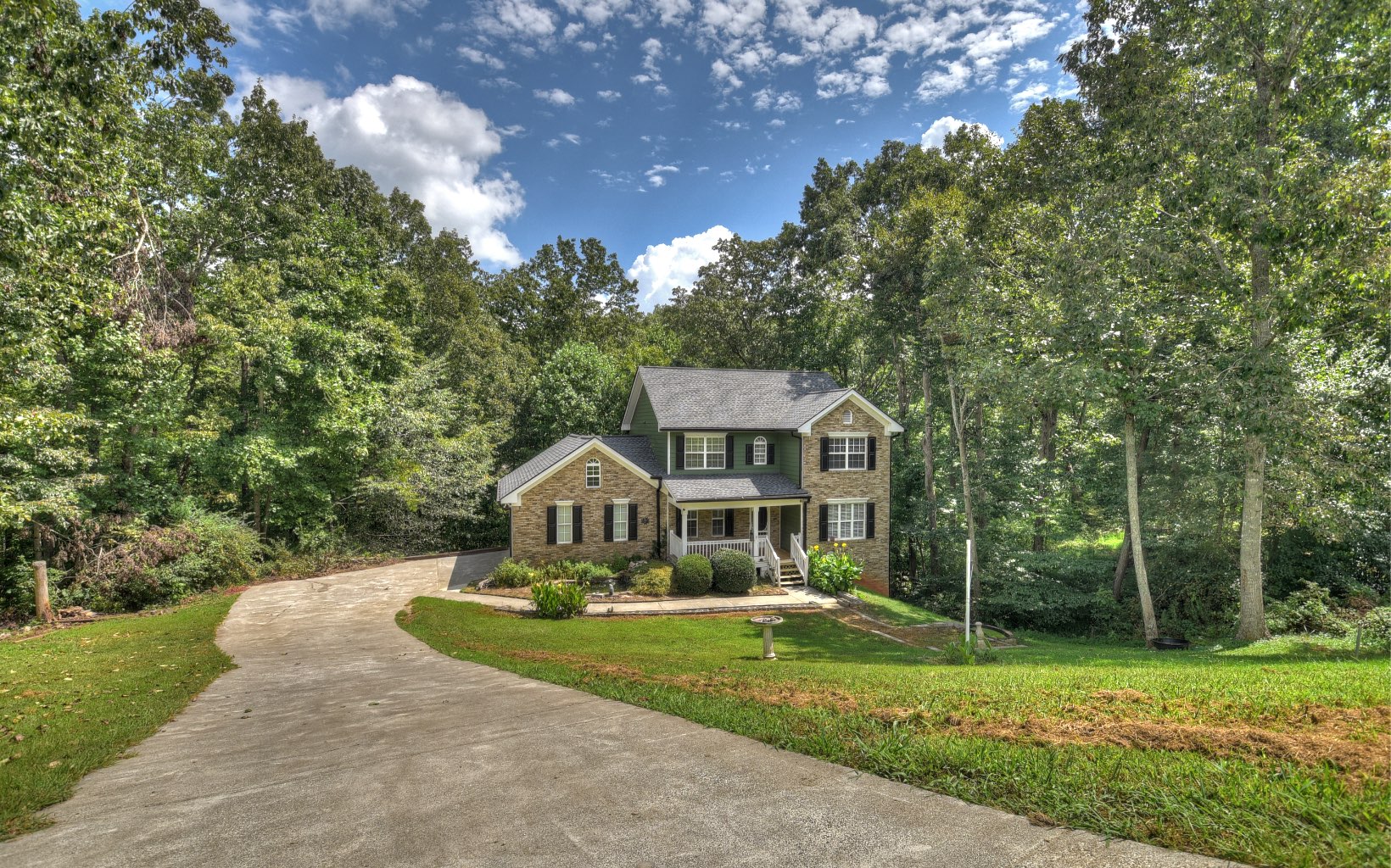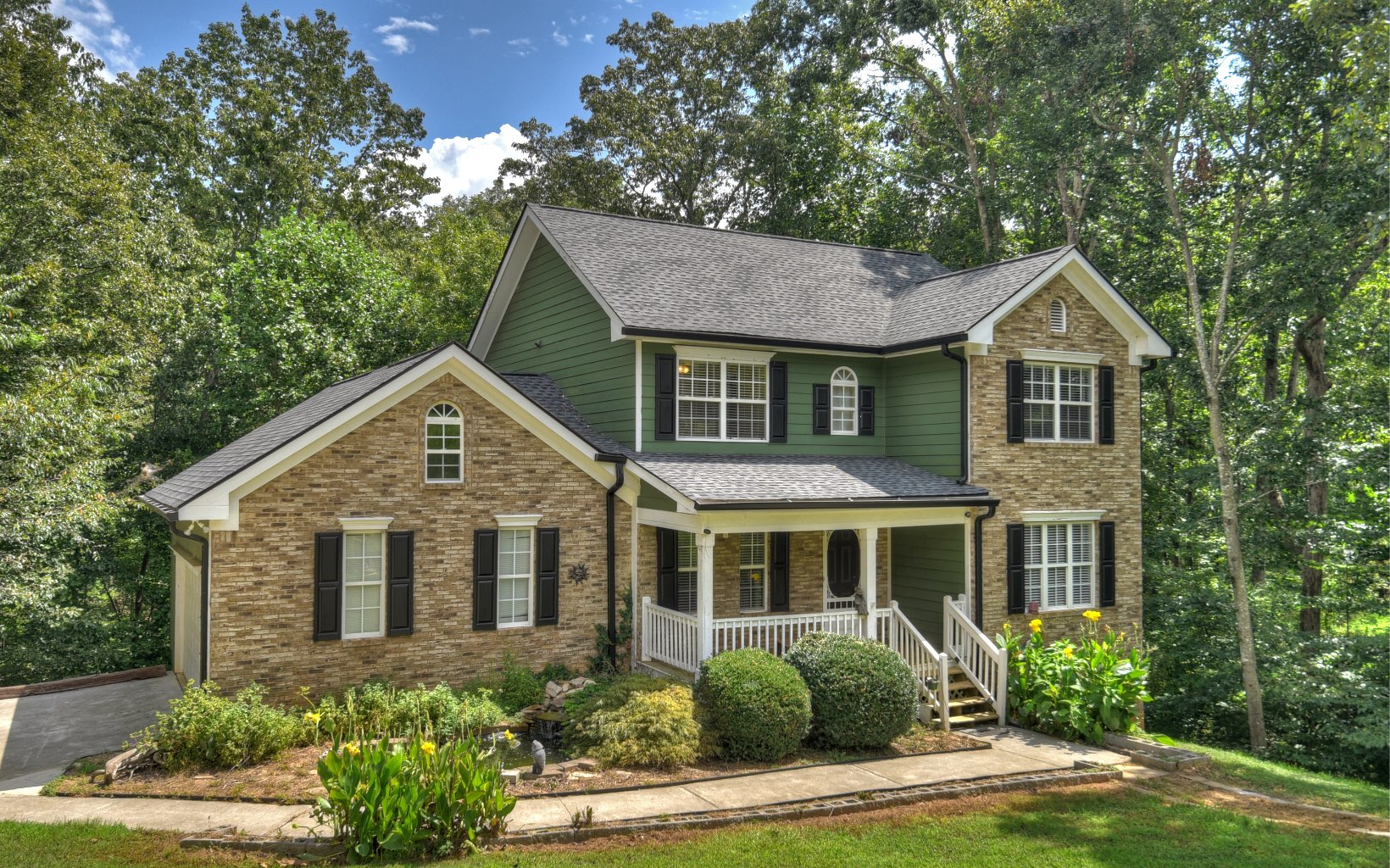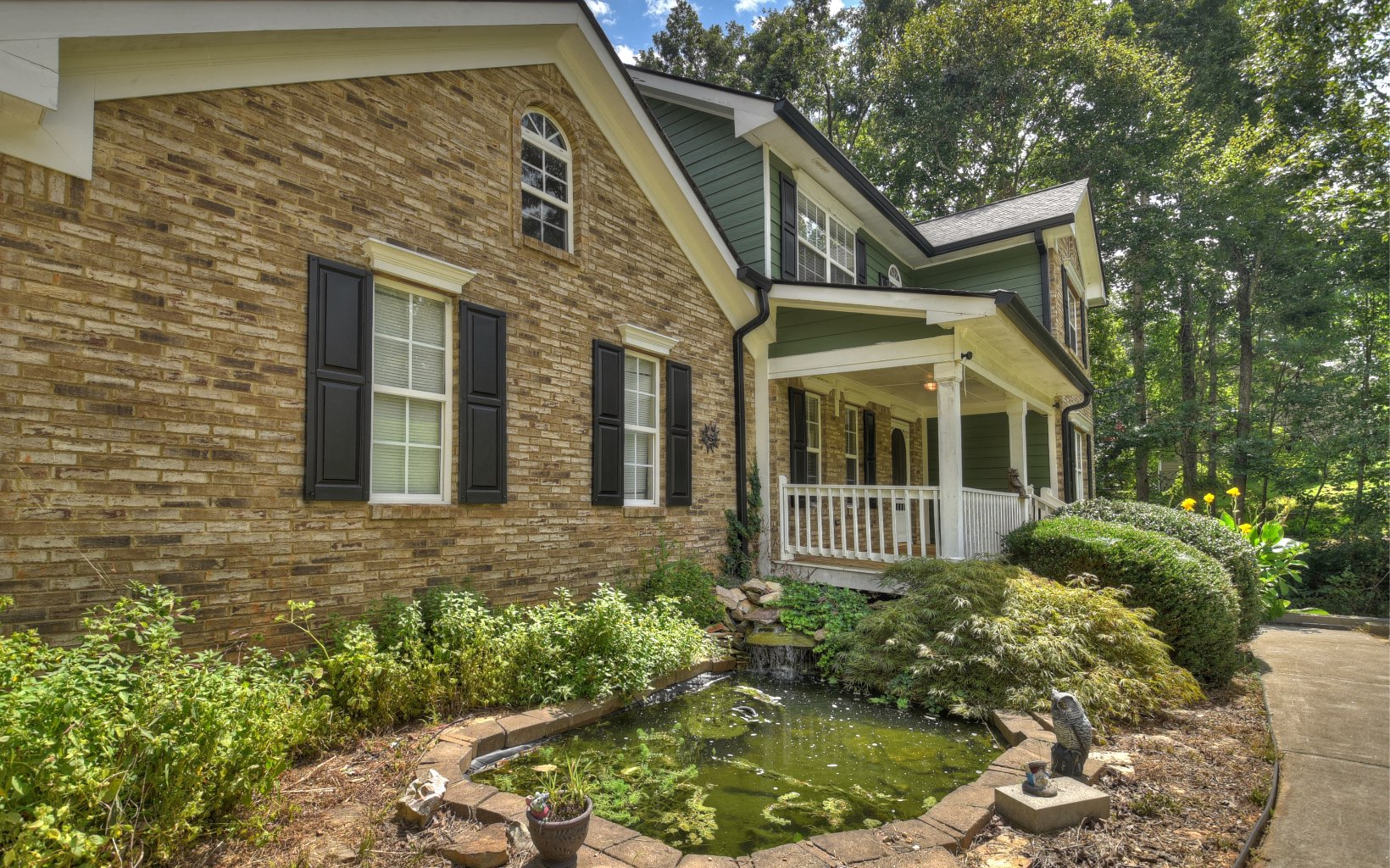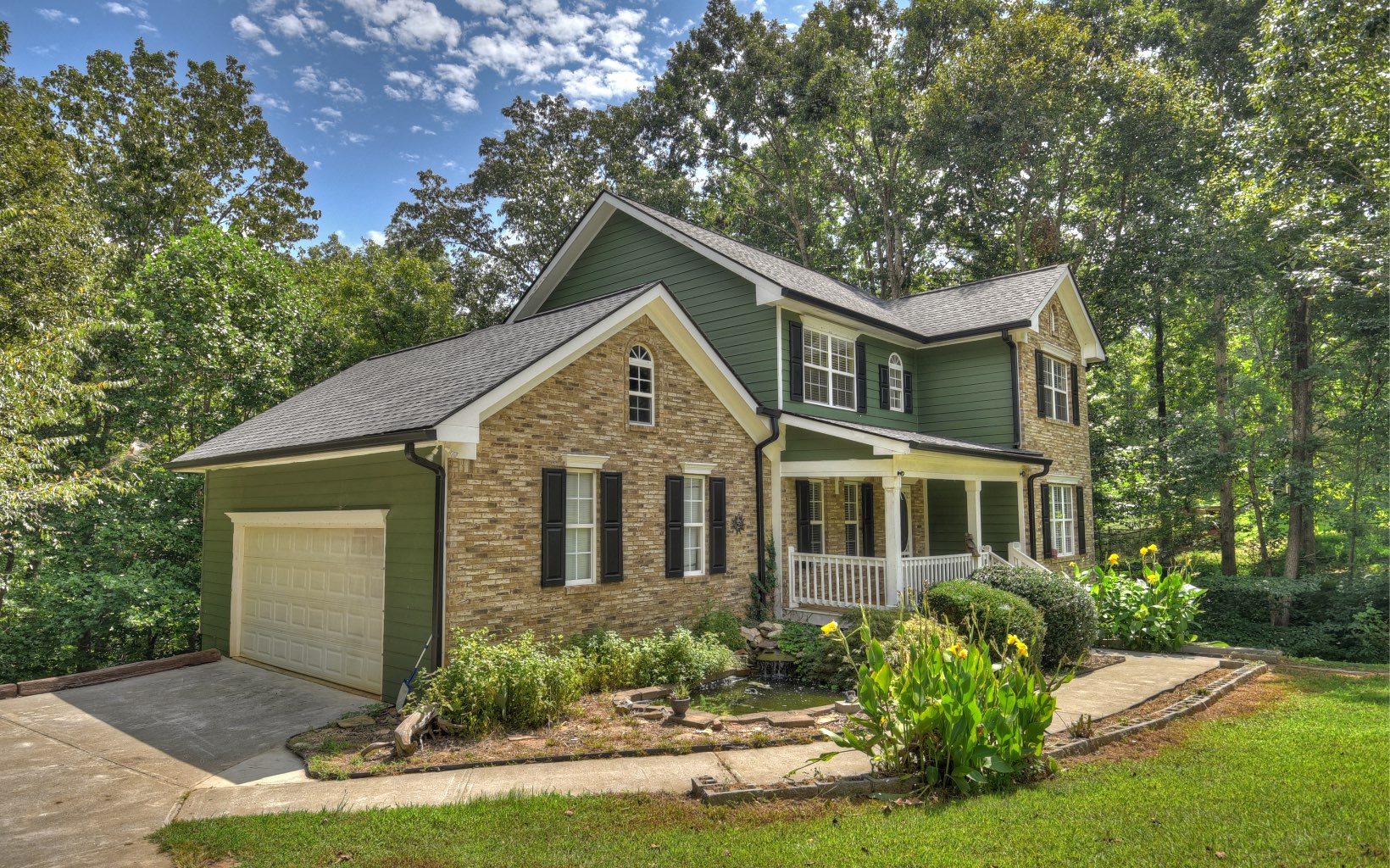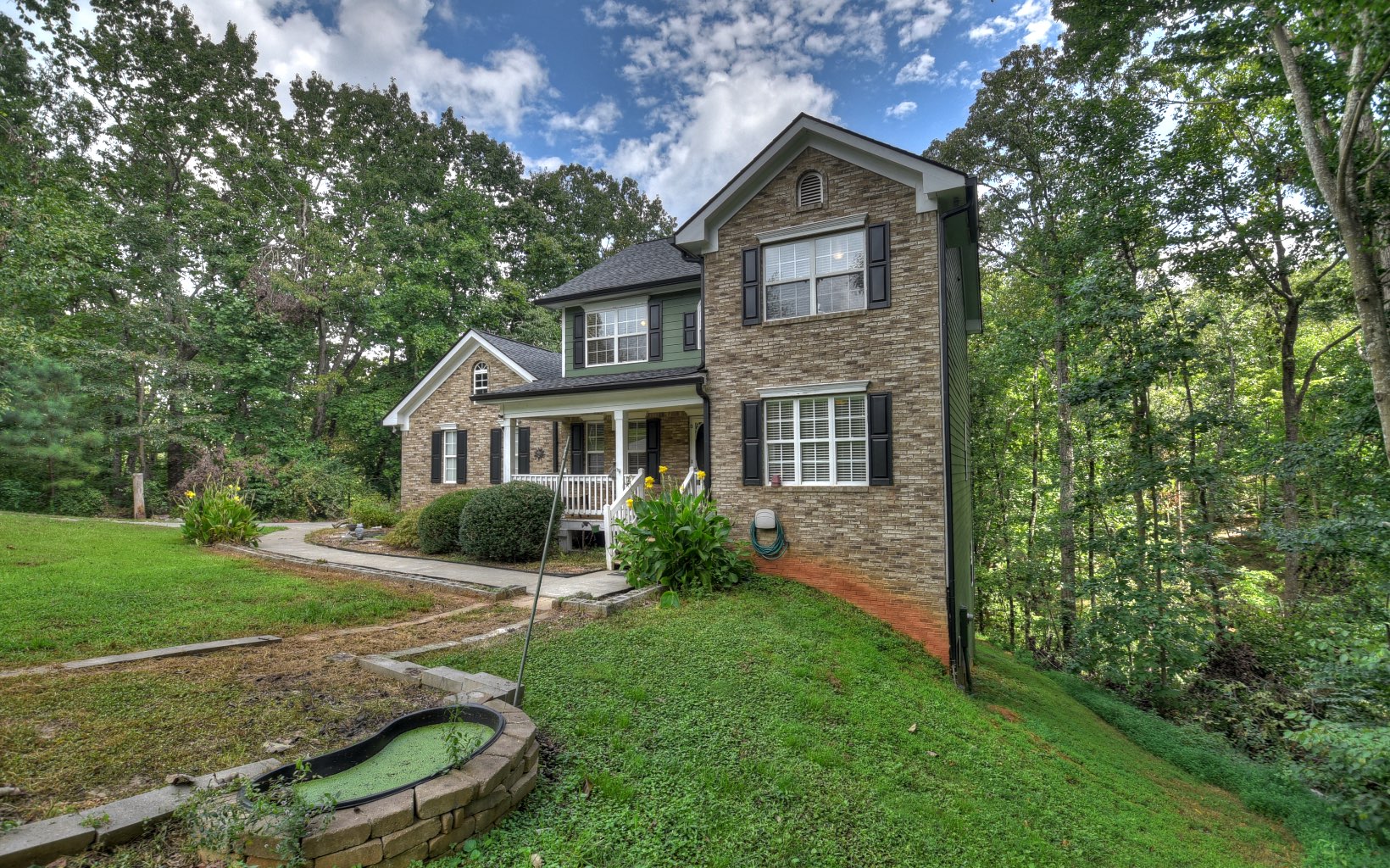 Beautiful brick and hardi-plank two story home in an established neighborhood of Pickens West Estates. Yard includes pond with waterfall. Separate dining room, an office area, and a conveniently located half bath on the main level. In 2013, beautiful new hardwood floors were installed in the office, dining area, and living room. The kitchen, complete with a breakfast area, is directly adjacent to the living room. Enjoy white cabinetry w/ tile backsplash, along with a pantry that's conveniently positioned near the 2-car garage. Upstairs, you'll find three bedrooms and two full bathrooms, and laundry area. The spacious master bedroom features a genuine fireplace adorned with marble and wood, as well as a tray ceiling. The expansive master bath boasts a separate shower, jetted jacuzzi tub, tiled floors, and dual vanity. There's also a generously-sized walk-in closet. The large, unfinished basement offers limitless possibilities for storage, a workroom, and more. A creek runs along the lower side of the property. The roof was replaced in 2020, and 6-inch gutters were upgraded. Fresh exterior paint was applied in 2017. Please note that living, dining, and master have been virtually staged.