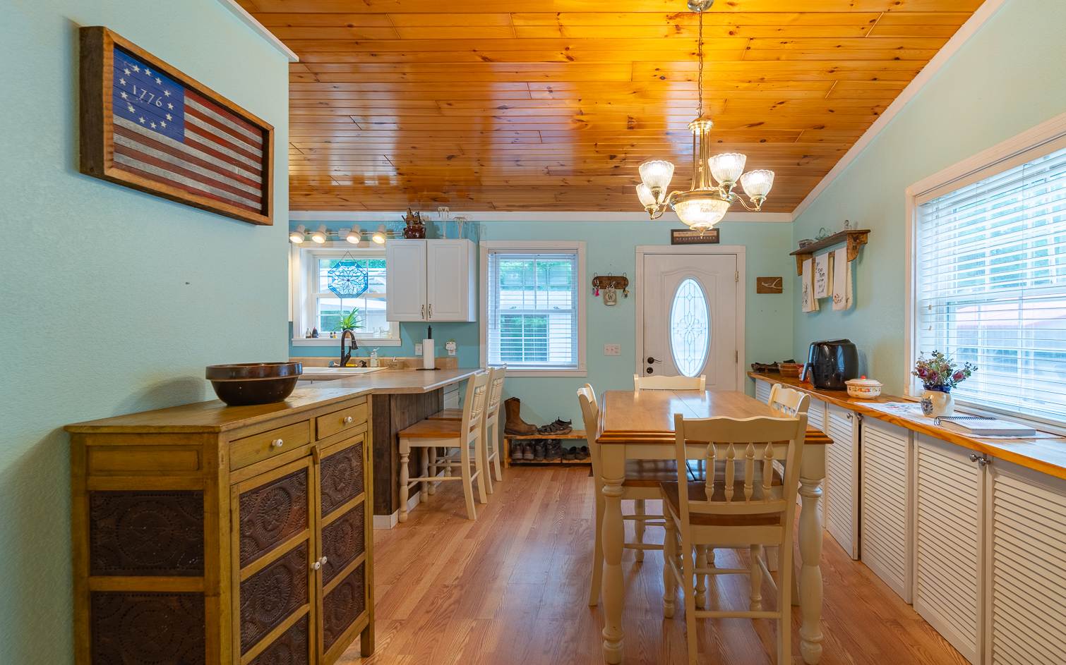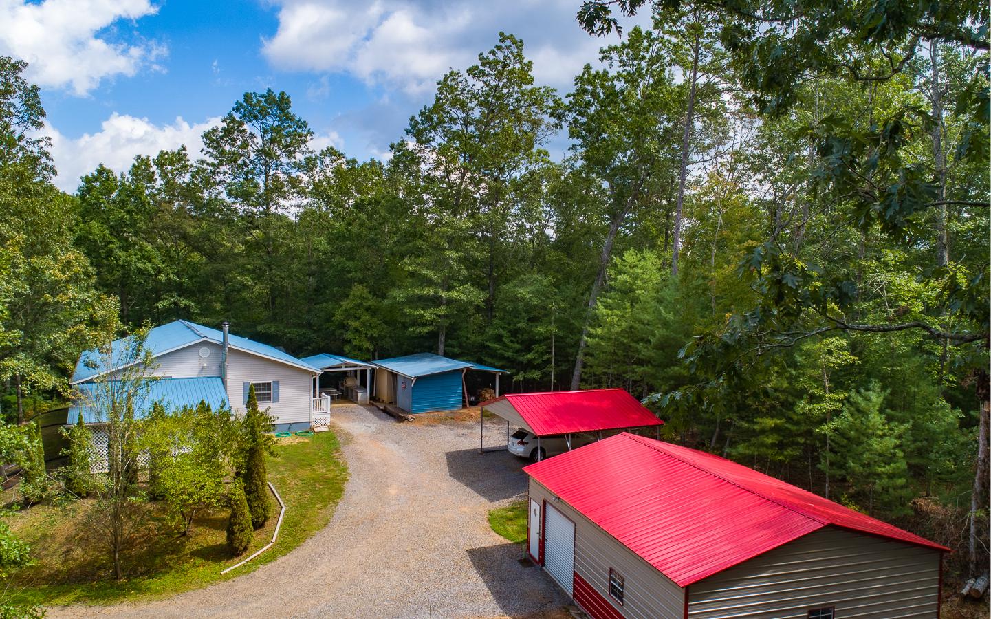Discover charm and comfort in this delightful 3-bedroom, 2-bathroom home. Featuring wooden cathedral ceilings, durable vinyl plank flooring, cozy wood burning fireplace all on one level! Natural light dances throughout the interiors, enhancing the tranquil atmosphere. This UNRESTRICTED 5 acre property offers an environment that's both welcoming and serene. The outdoor space is equally captivating, showcasing a large porch for relaxing and watching nature, a spacious workshop/garage, garden area, partial outdoor kitchen with a pizza oven, and multiple outdoor storage buildings and carports. Conveniently located to Murphy, NE Georgia and eastern TN! And YES they had good fiber optic INTERNET!!!