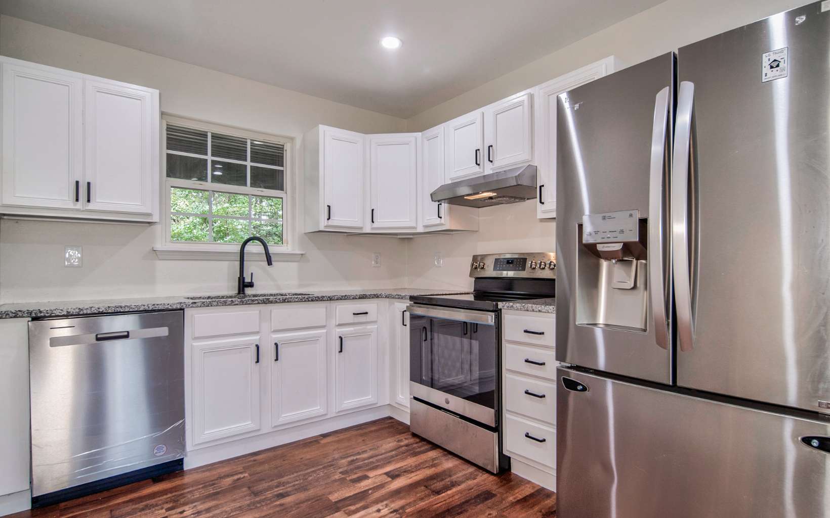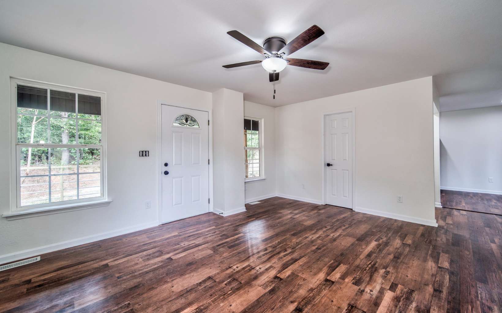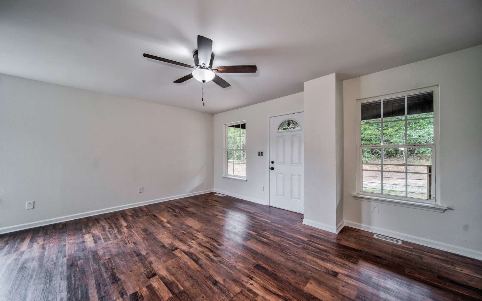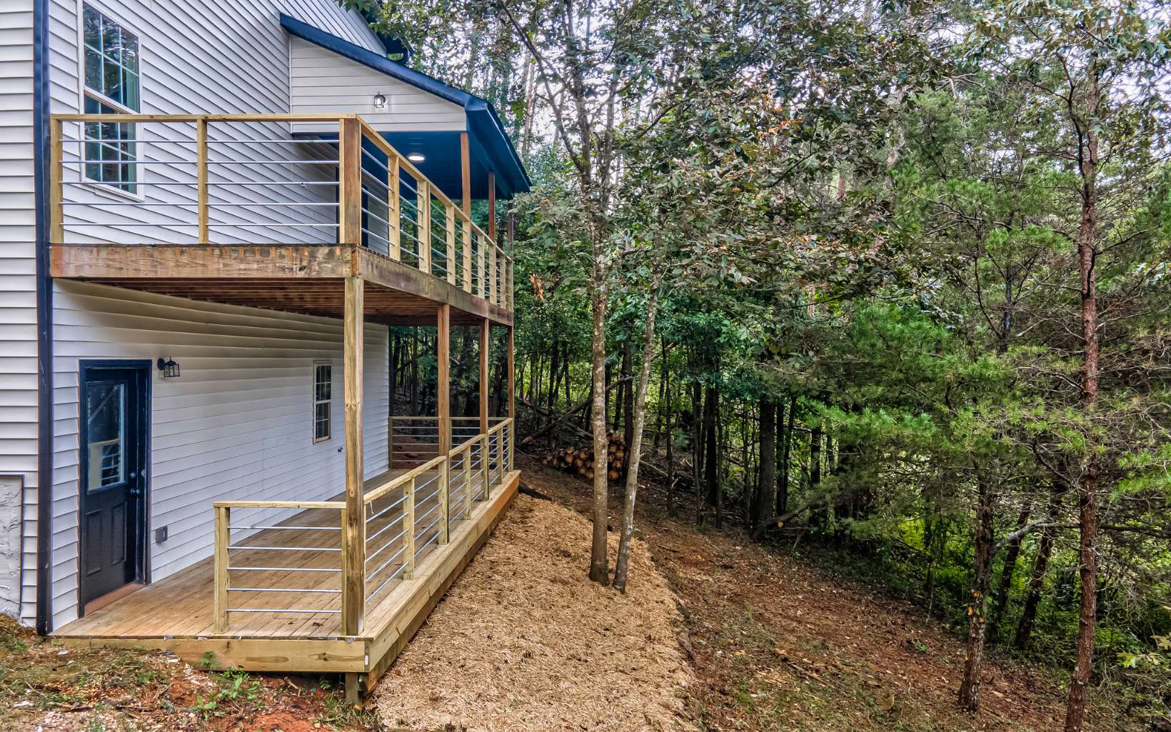 Welcome to this stunning, completely updated and move-in ready home located conveniently between Downtown Cleveland and Downtown Dahlonega! This home is nestled off a private road that winds around a quaint shared pond with water year round and borders this property. Kitchen level parking offers easy access to the covered front porch and interior that offers LVP flooring throughout the main level. A spacious living room with access to an expansive partially covered back porch overlooking the property and year round pond. Kitchen with white cabinets, granite counters, and all new stainless steal appliances. The upper level offers an owner's bedroom and all new bathroom with stunning tile work, along with a spacious 2nd bedroom. In the daylight terrace level you will find a 3rd bedroom and bonus room with access to the lower covered deck with easy access to the private back yard.