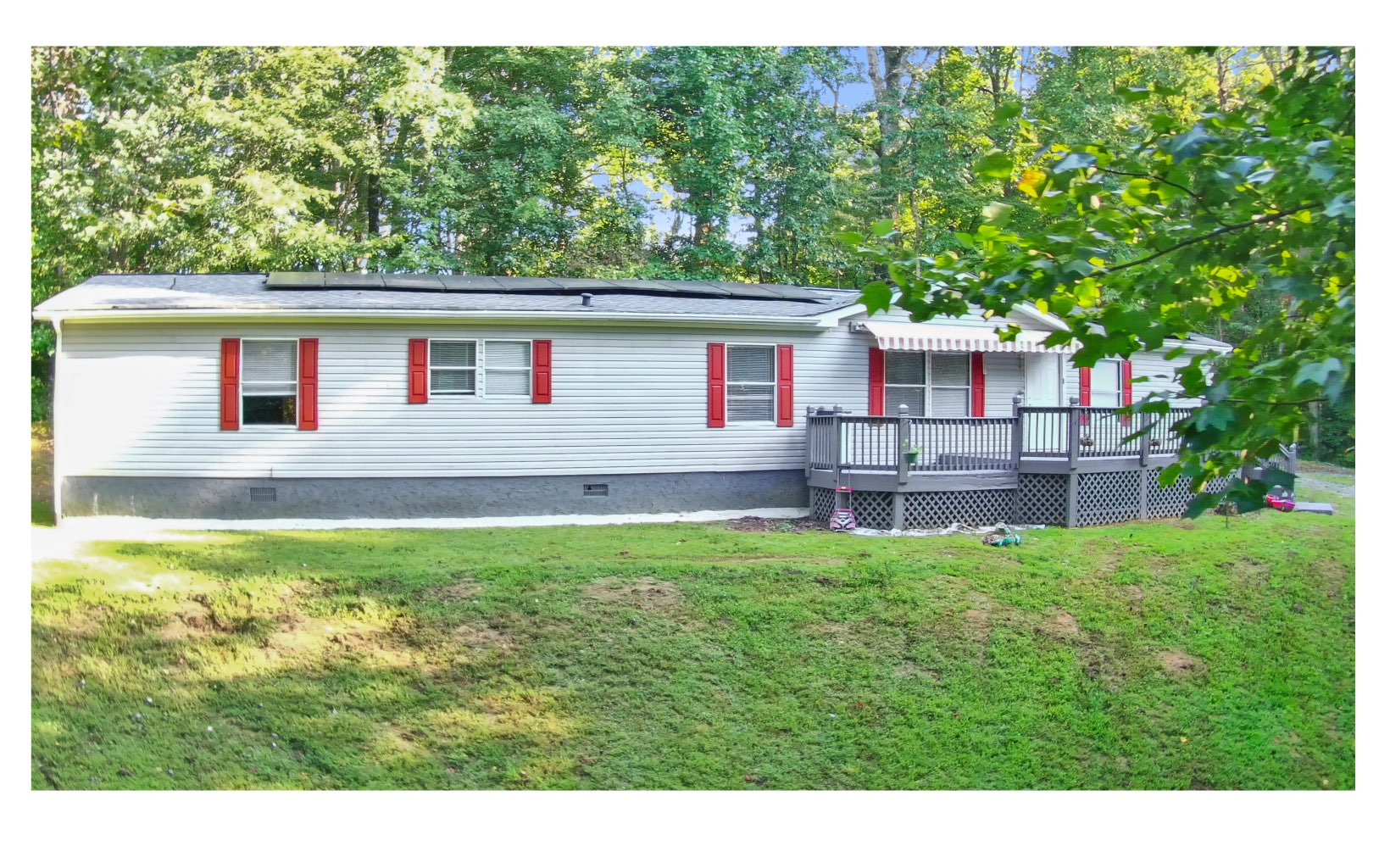 Back on market through no fault of seller! UNRESTRICTED & SOLAR POWERED 9 minutes to downtown Ellijay at an affordable price! This serene countryside location with a 4 bedroom charming manufactured home with a permanent foundation awaits you. Setting: over 2 acres of land adorned by majestic mature hardwoods. This picturesque retreat boasts a tranquil and level lot, enveloped in nature's embrace. Throw a football, cookout, campfires and kickback in the country on this amazing property. Powered by the sun, its solar panels keep electricity costs as low as $8 during select months, while a reliable GENERATOR stands ready to navigate power outages, ensuring safety and convenience. Renovations grace most corners of this residence. The allure of one-level living in this idyllic countryside haven beckons, offering the best of both worlds - the tranquility of nature and the convenience of proximity to town. Embrace the charm of rural living in this unique, energy-efficient sanctuary.