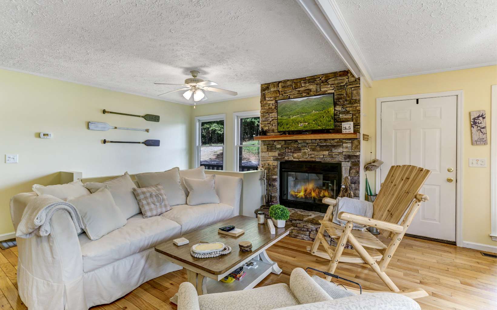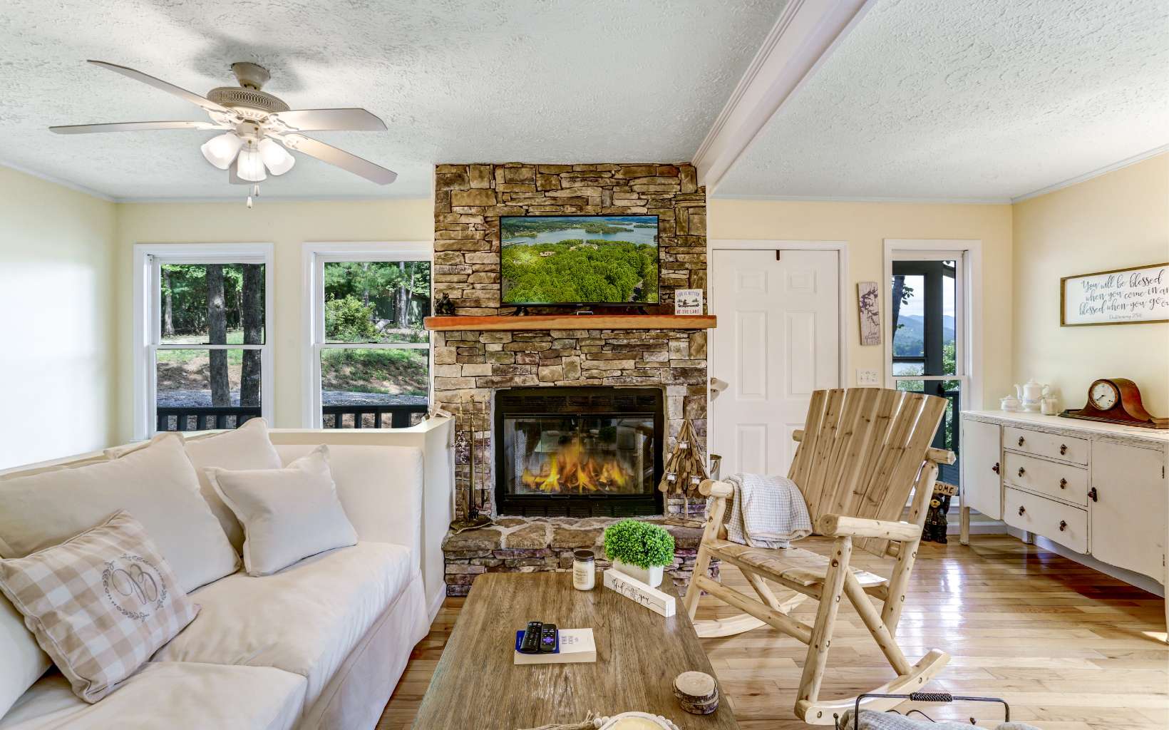LAKE LIVING IN THE NORTH CAROLINA MOUNTAINS!! Enjoy lake front living in this cozy 3BR/2BA cottage located on beautiful Lake Chatuge. The home features great views of Lake Chatuge and the surrounding mountains, a covered single slip dock with a swim platform, living room with stacked stone fireplace, dining area, kitchen, deck on the upper level and a screened-in deck on the lower level. Relax on one of the lakeside decks or fish from the covered dock.