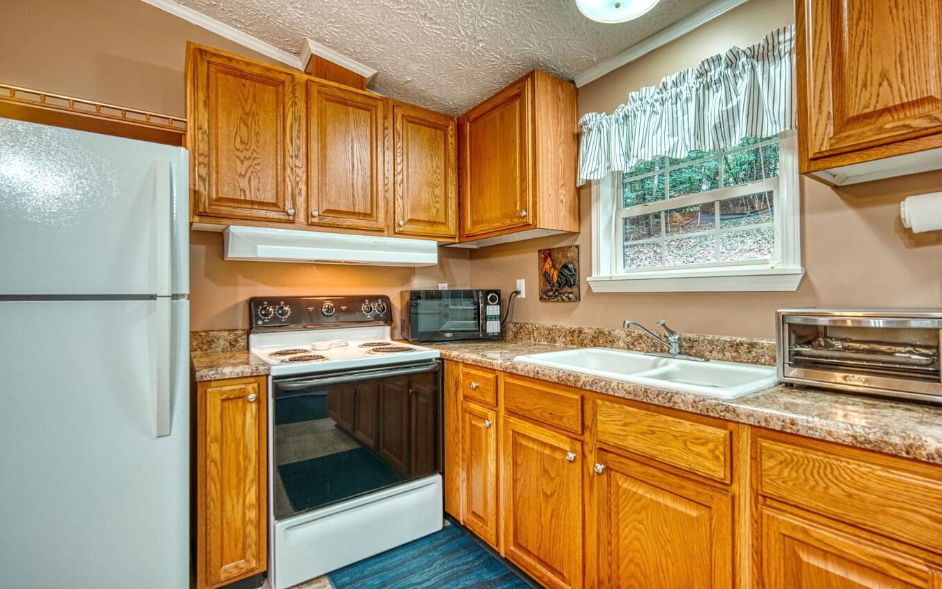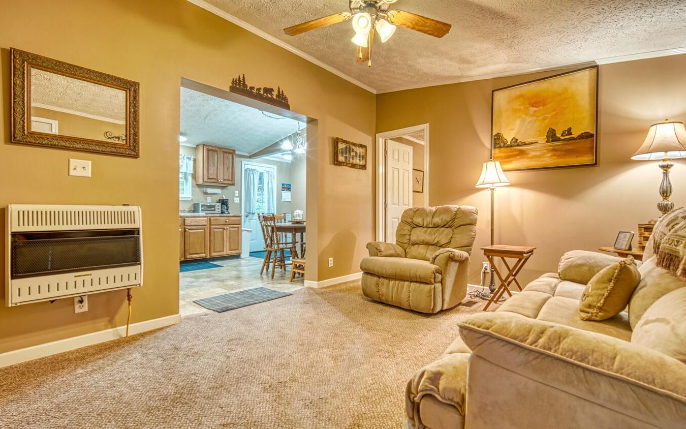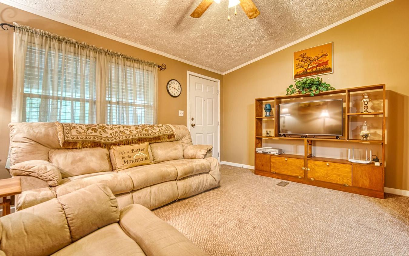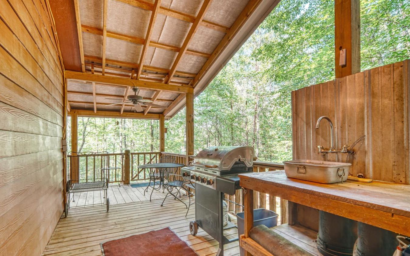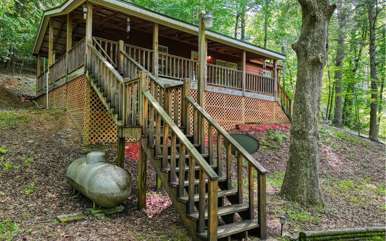 Perfect neat as a pin mountain getaway! Concrete Siding and 29 gage Metal Roof, Central Heat & AC ( aprox 3 years old )with Back up Propane heater. Covered wrap around covered decks with outdoor kitchen area. Fully Furnished so that you can move right on in! Refrigerator and Range aprox 2 years old , nice end of the road wooded privacy with paved driveway, this is your perfect mountain home, would also make a nice vacation rental there are no restrictions on this property. There are 2 bedrooms and 2 full baths, nice storage, newer vinyl windows and storm door. High speed Fiber Internet and Public Water, don't wait on this one, priced to sell.