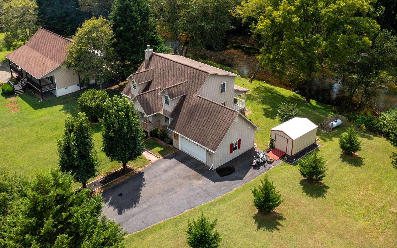Hayesville, NC - Riverfront Home on The Hiawassee River - 2Bed/2Bath w/ Attached 2 Car Garage & Storage Shed - Large Open great room. Natural light that floods the space, accentuating the home.The gas log fireplace adds warmth & character creating an atmosphere of cozy elegance. Oak floors & tongue groove wood trim enhance the rustic mountain charm. The Kitchen is fully equipped with appliances & just a few steps away, a dining area w/ double doors that leads to a Full covered back porch which overlooks the beautiful flowing Hiawassee River. Picture yourself enjoying backyard meals (fresh fish dinners) while the river’s soothing sounds provide a serene backdrop. It’s an ideal setting for gatherings or quiet moments of reflection. On the main floor, a roomy master bedroom, the master bath has soaking tub w/ shower & tile flooring which adds a touch of luxury to your daily routine. On the main level is the laundry room which also provides easy access to the attached 2-car garage. Venturing upstairs reveals a large open loft space, perfect for a home office, family room, the ideas are endless for this space. There’s also a spacious second bedroom & bath, ideal for accommodating family or guests. While you may never want to leave this riverside oasis, Lake Chatuge is just a few miles away, offering a marina and easy access for all your boating & fishing needs. Here, you can truly embrace the best of mountain and waterfront living with this home. Asking $475,000. Make Offer