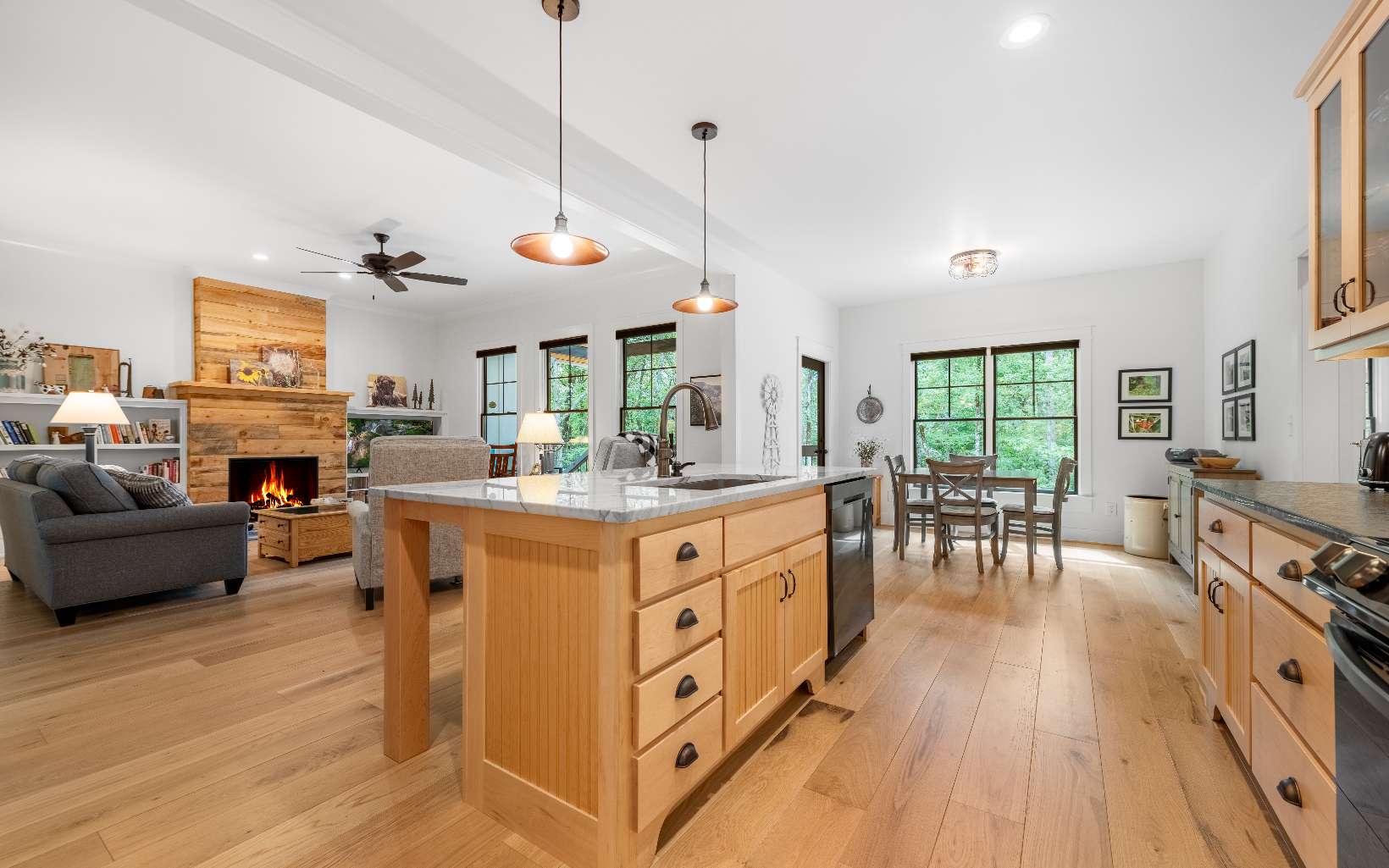 Fulfill your modern farmhouse dreams with this immaculate custom home in the upscale community of Anderson Farms! Perfectly placed on prime, private 1.9-acre lot with optional adjoining premium 2.1 acre lot. Bright, spacious, and extremely functional with all the custom features you expect. Engineered wide plank oak flooring throughout. Beautiful living room with reclaimed wood fireplace focal point, three roomy bedrooms, two gorgeous bathrooms, formal dining room, plus eat-in kitchen. Custom maple cabinetry throughout with granite countertops, quartzite center island and high-end appliances. Butler’s pantry and large walk-in pantry complete the farmhouse family requirements. Energy efficient! Board and Batten siding. Air conditioned/heated crawl space with tons of storage. Large Pella windows allow views of surrounding forest with seasonal mountain views. Excellent location with close proximity to Amicalola Falls State Park and conveniently located between Ellijay, Dahlonega, and Dawsonville