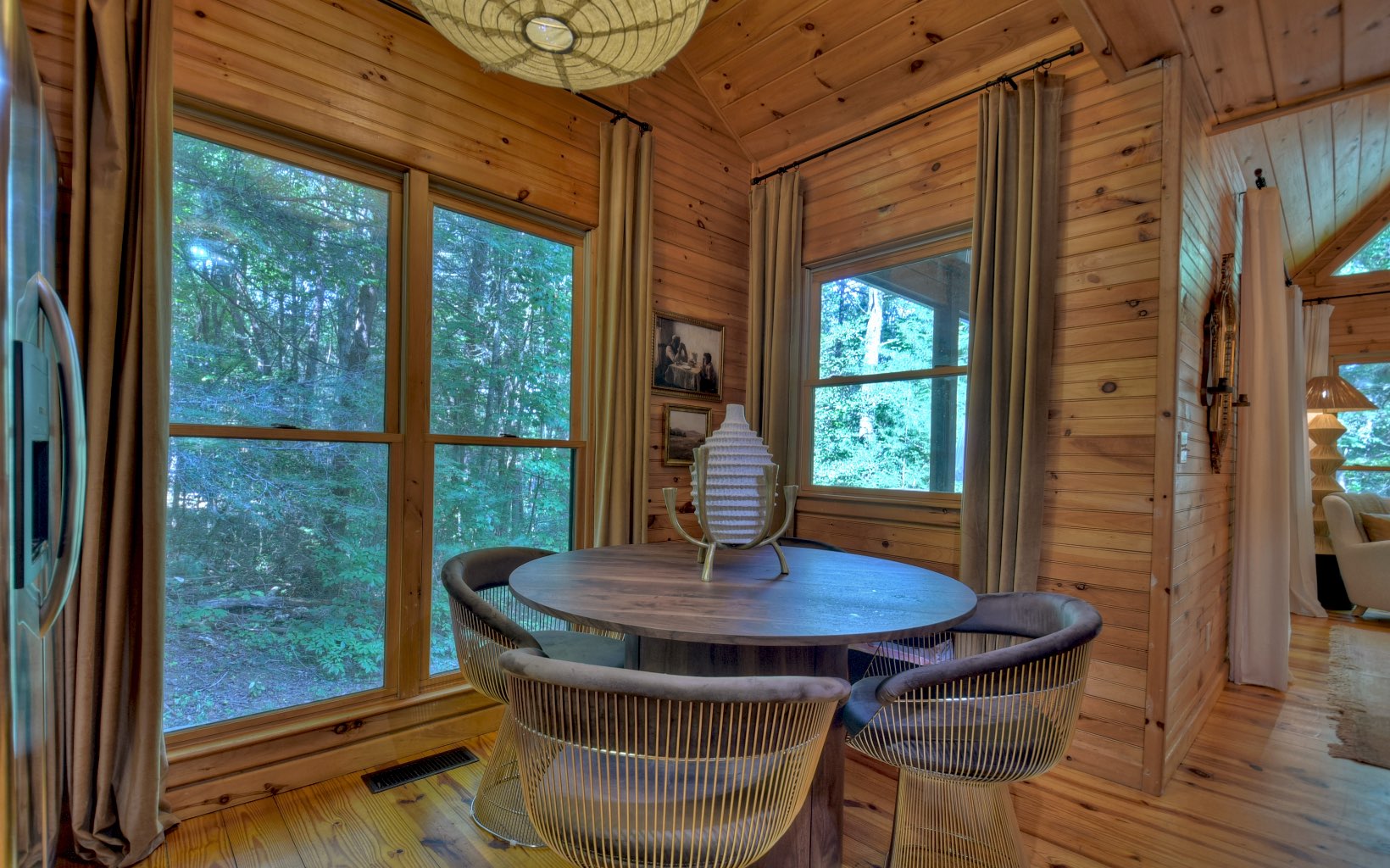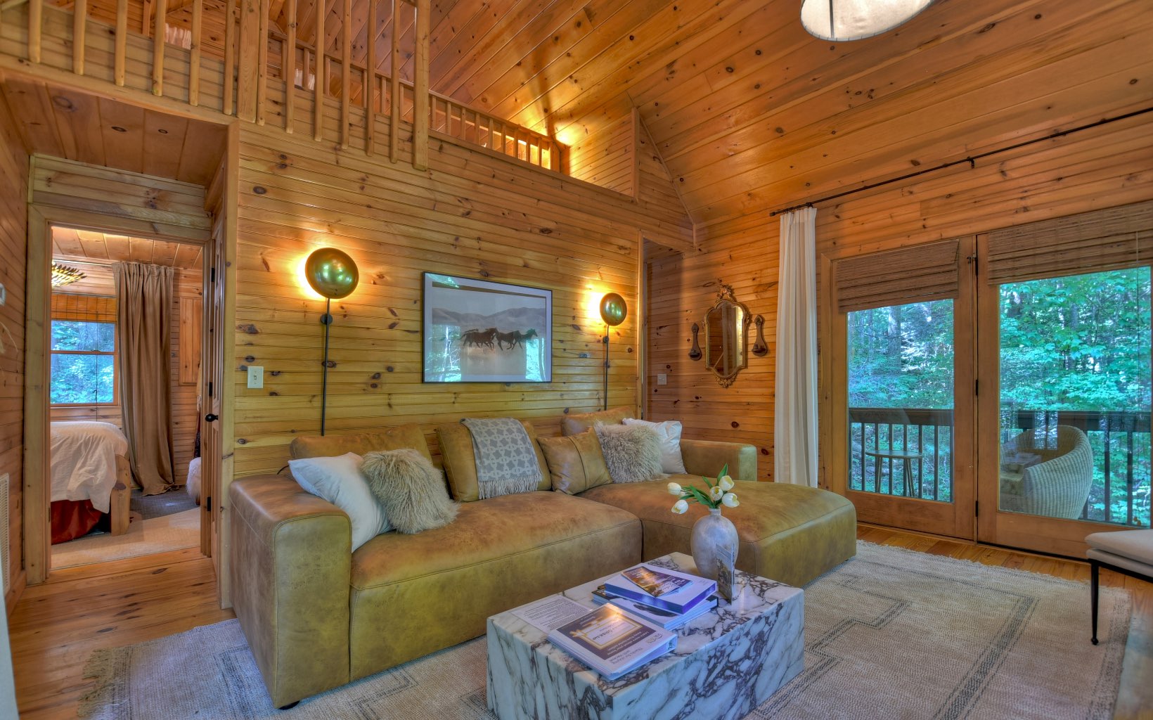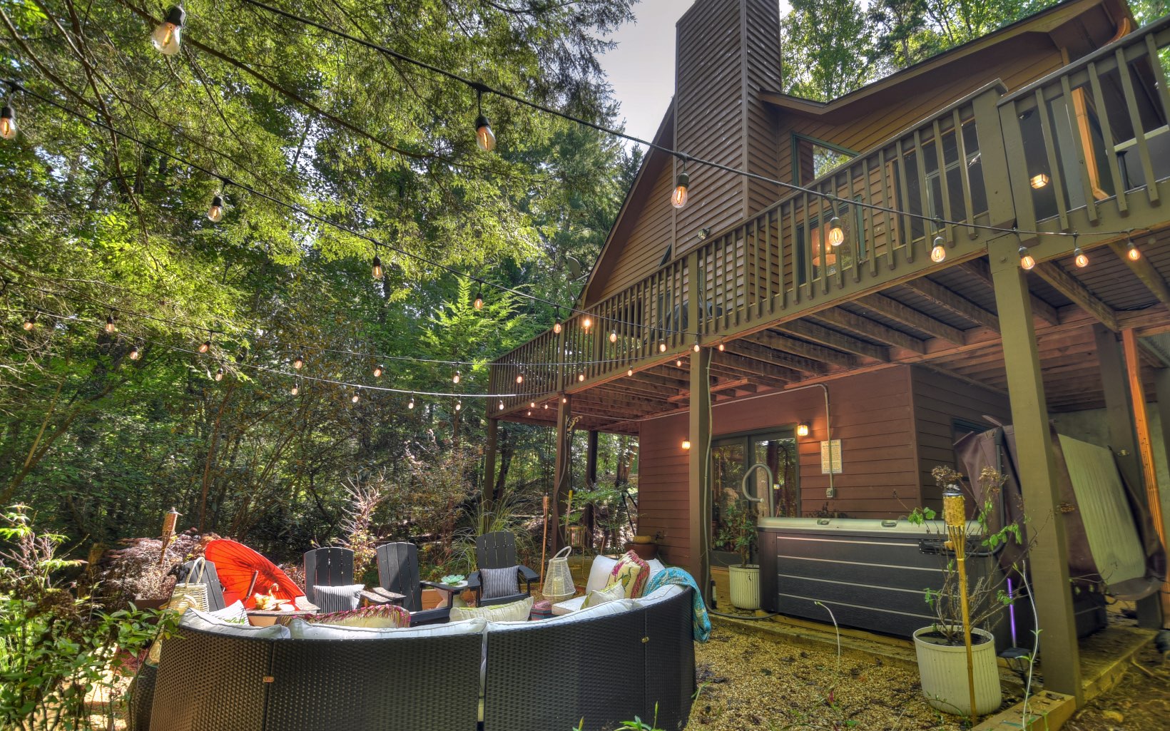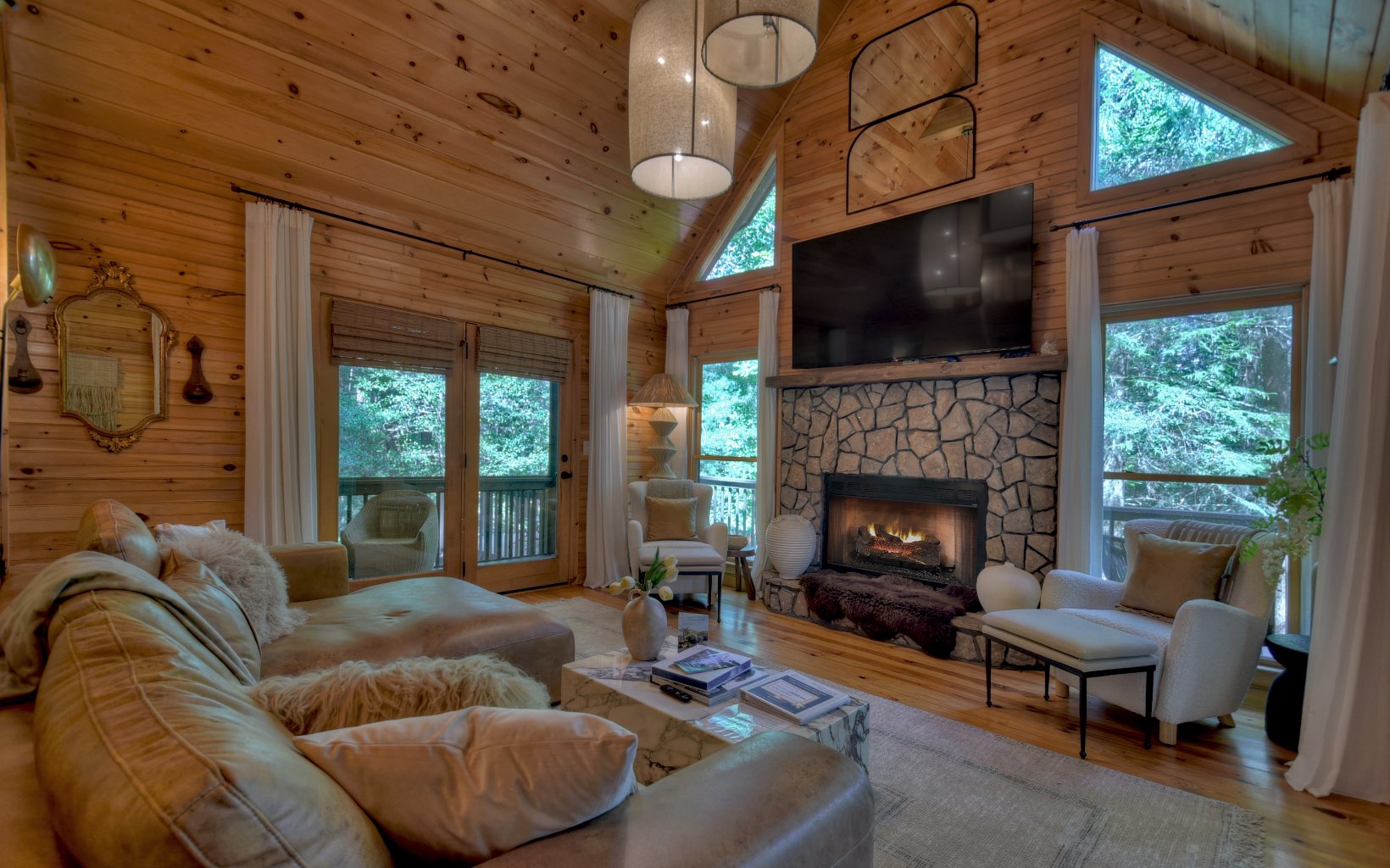 Tucked away in the forest…this treehouse feel cabin is a true charmer…sounds of Fightingtown Creek in the distance and cool mountain breezes create a cozy feel in this 4bedroom/2 bath rustic cottage with modern flair, located just minutes from historic downtown area, the spacious layout offers separate sleeping spaces, lovely loft area, large open living area with sky high ceilings and warm stone fireplace spills onto oversize covered porches and open decks surrounded by the mountains, plentiful cabinetry & stainless appliances, darling dining area, movie/media room, newly remodeled and tastefully furnished for a wonderful retreat or fabulous vacation rental among the hemlocks…nearly all paved and easy access, turn key and ready to enjoy!