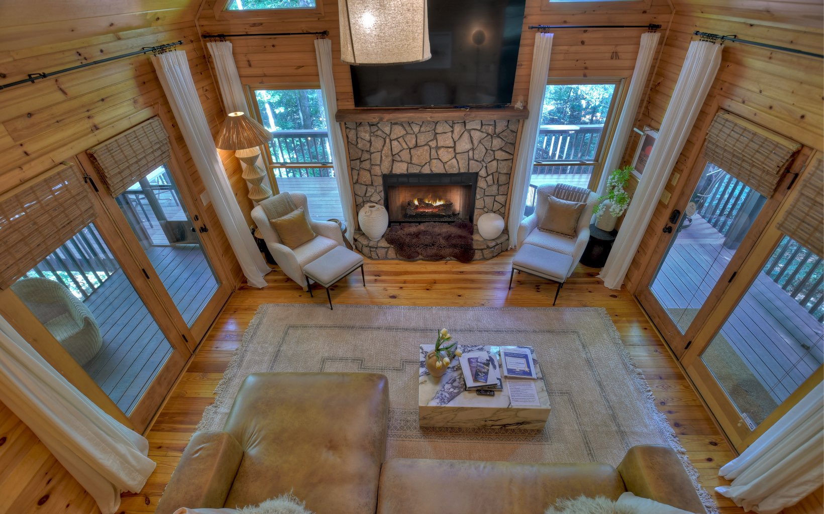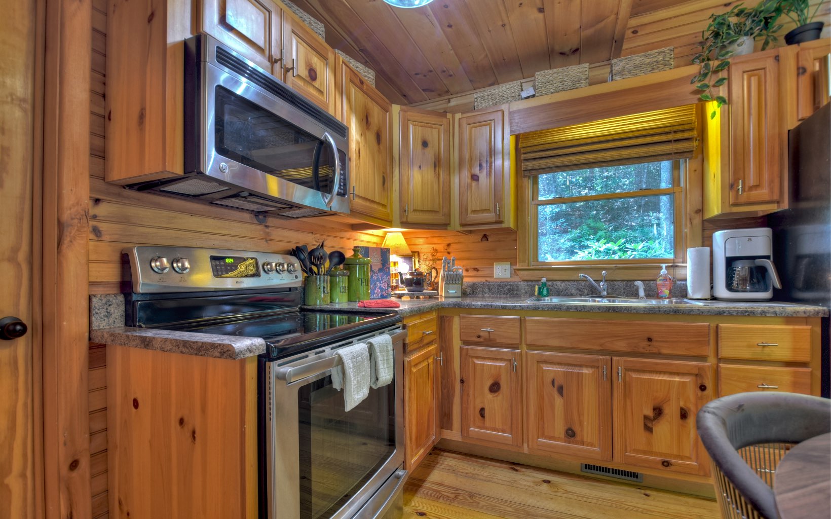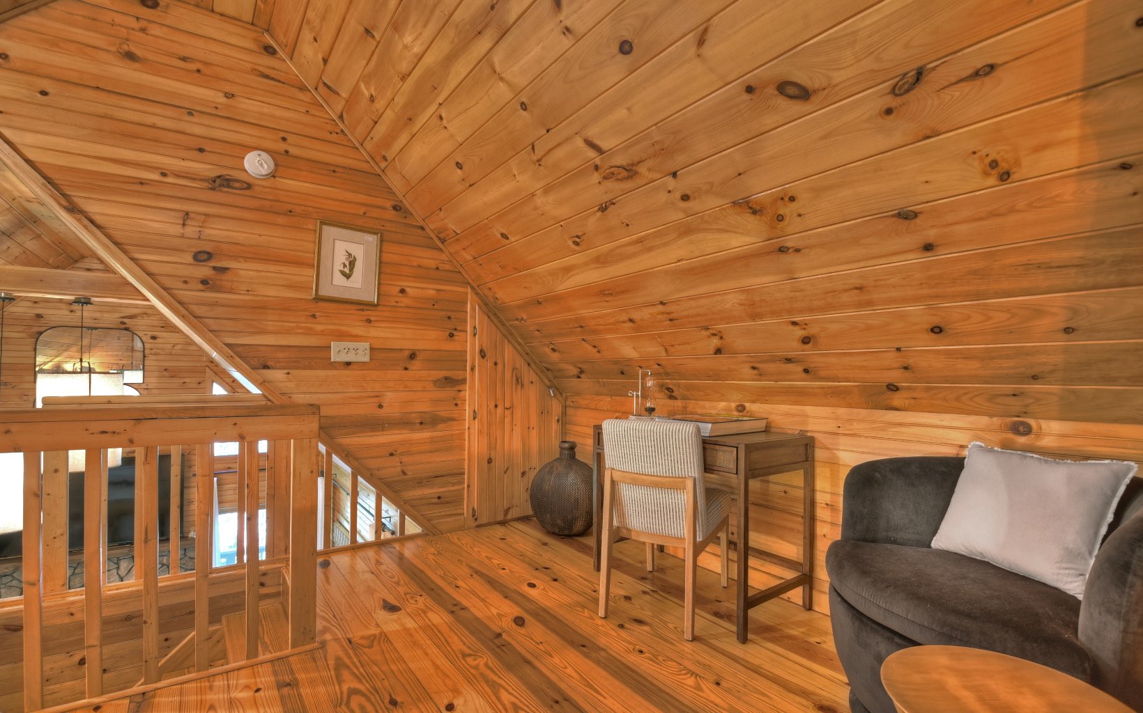 Tucked away in the forest…this treehouse feel cabin is a true charmer…sounds of Fightingtown Creek in the distance and cool mountain breezes create a cozy feel in this 4bedroom/2 bath rustic cottage with modern flair, located just minutes from historic downtown area, the spacious layout offers separate sleeping spaces, lovely loft area, large open living area with sky high ceilings and warm stone fireplace spills onto oversize covered porches and open decks surrounded by the mountains, plentiful cabinetry & stainless appliances, darling dining area, movie/media room, newly remodeled and tastefully furnished for a wonderful retreat or fabulous vacation rental among the hemlocks…nearly all paved and easy access, turn key and ready to enjoy!