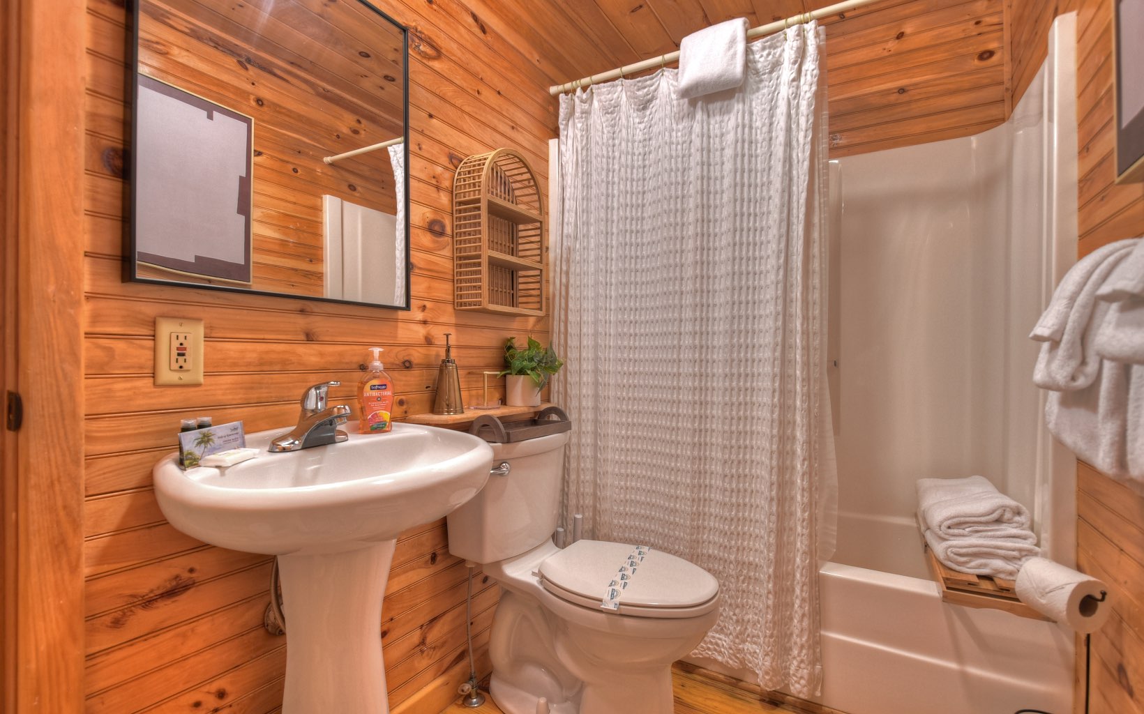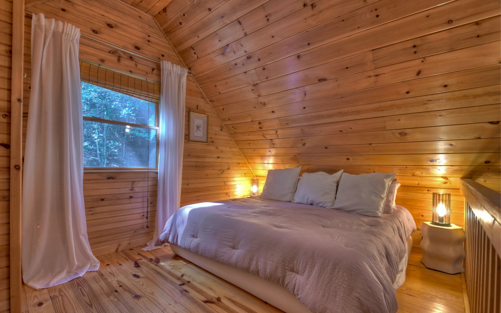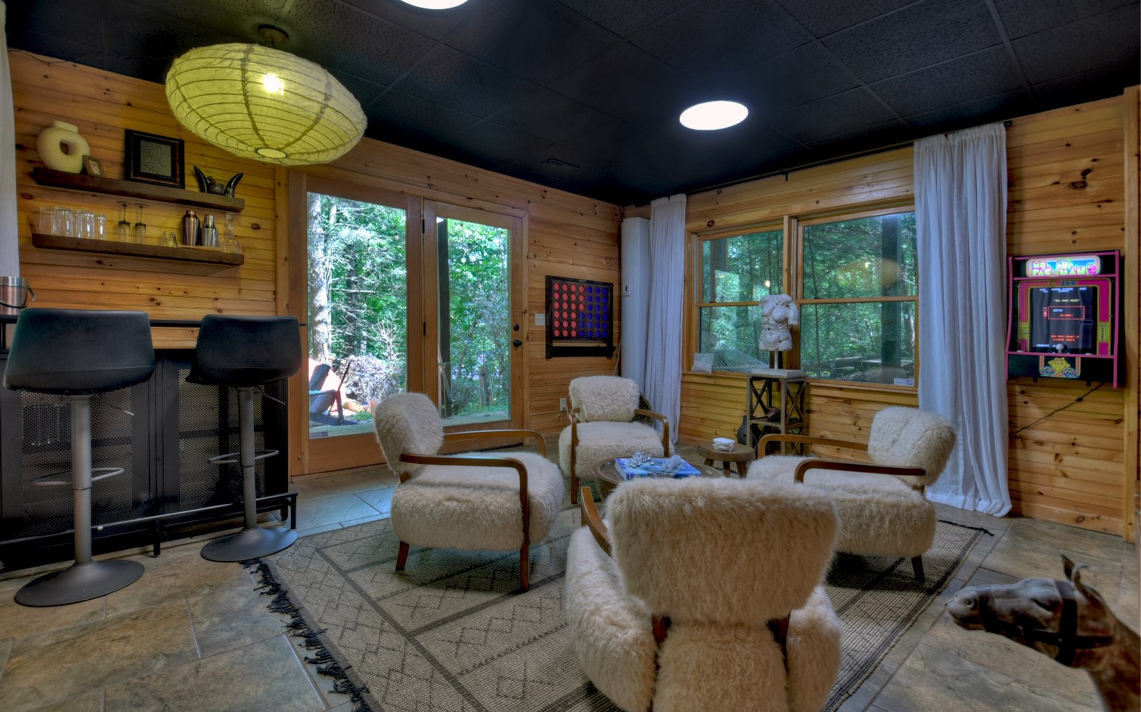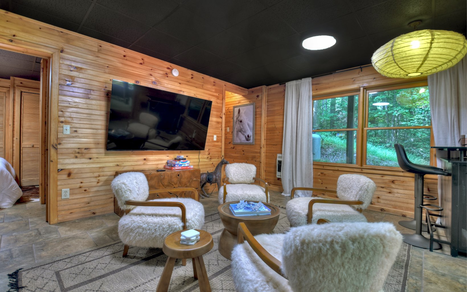Tucked away in the forest…this treehouse feel cabin is a true charmer…sounds of Fightingtown Creek in the distance and cool mountain breezes create a cozy feel in this 4bedroom/2 bath rustic cottage with modern flair, located just minutes from historic downtown area, the spacious layout offers separate sleeping spaces, lovely loft area, large open living area with sky high ceilings and warm stone fireplace spills onto oversize covered porches and open decks surrounded by the mountains, plentiful cabinetry & stainless appliances, darling dining area, movie/media room, newly remodeled and tastefully furnished for a wonderful retreat or fabulous vacation rental among the hemlocks…nearly all paved and easy access, turn key and ready to enjoy!