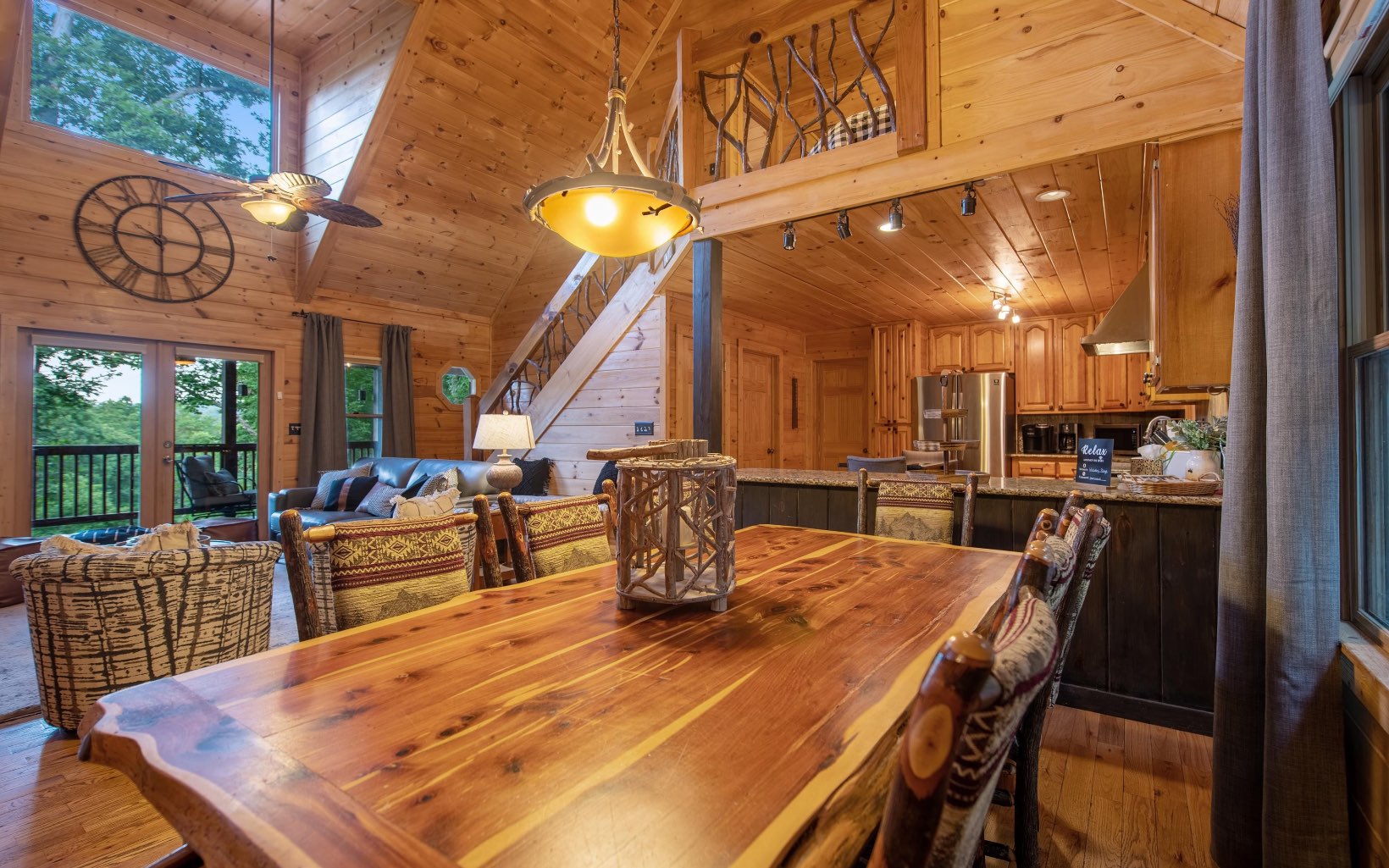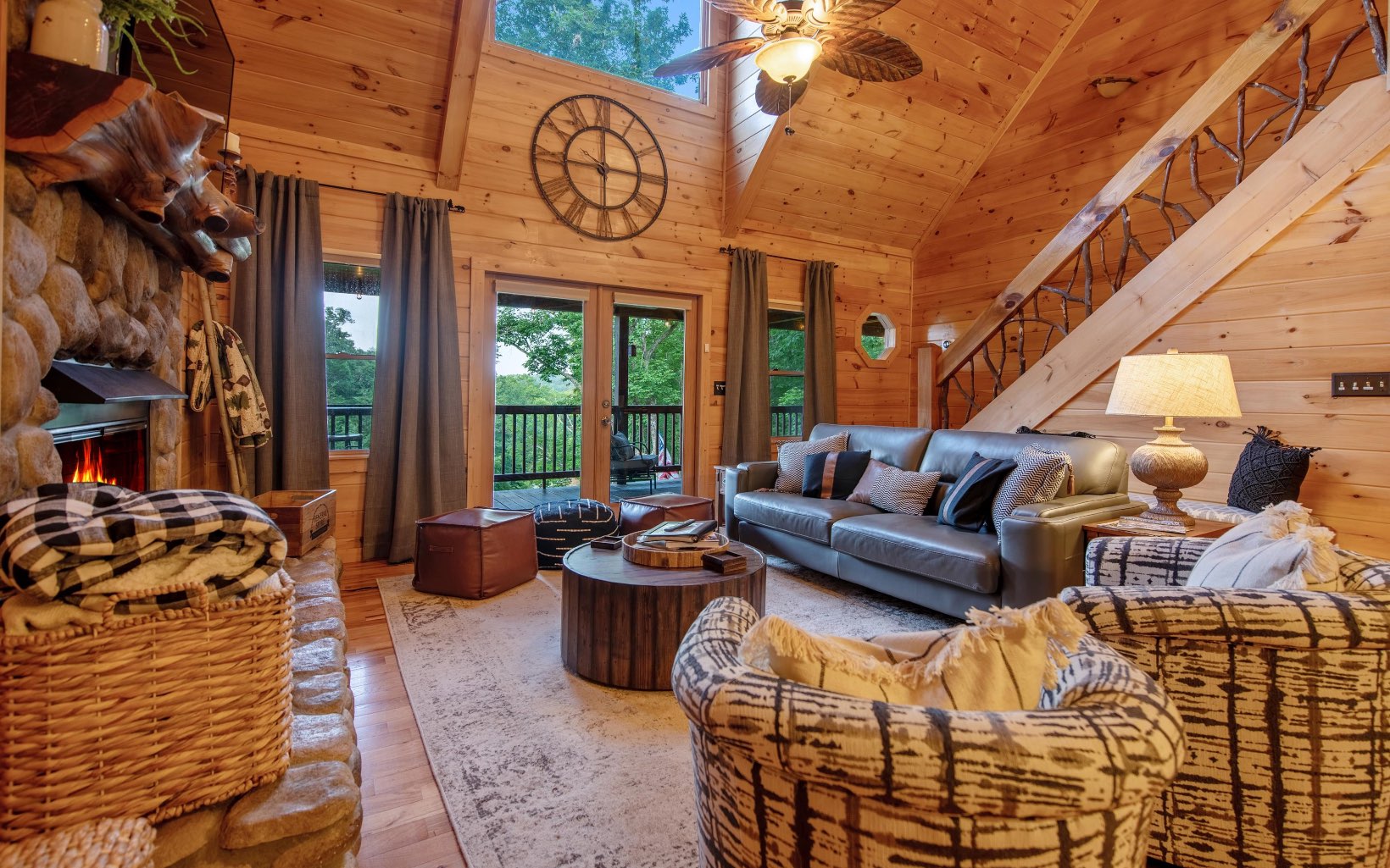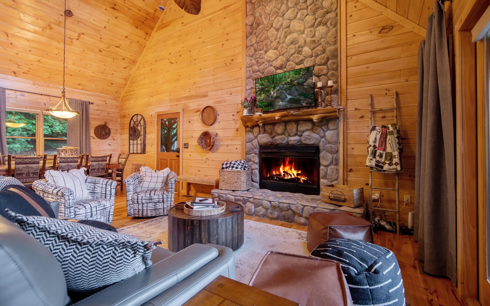 SELLER FINANCING AVAILABLE WITH 15% DOWN! "Whiskey Ridge" is the perfect vacation rental opportunity for those looking to escape to the serene beauty of the Blue Ridge Mountains. This charming home seamlessly combines the cozy rustic ambiance of a cabin with modern amenities, ensuring that guests feel at ease while surrounded by the mountain's natural splendor. With three bedrooms in the main house, a sleeping loft, and an additional ensuite bedroom/bathroom located above the two-car garage with its own private entrance. A beautiful stone fireplace is the center of the open concept living space with cathedral ceilings, and leads over to your eat-in kitchen and dedicated dining area. The upper-level master suite with a private balcony is likely to be a highlight for guests. The garage could easily be converted into a game room. Fenced-in back yard. New hot tub w/ spectacular views! New fire pit area! SOLD FULLY FURNISHED!