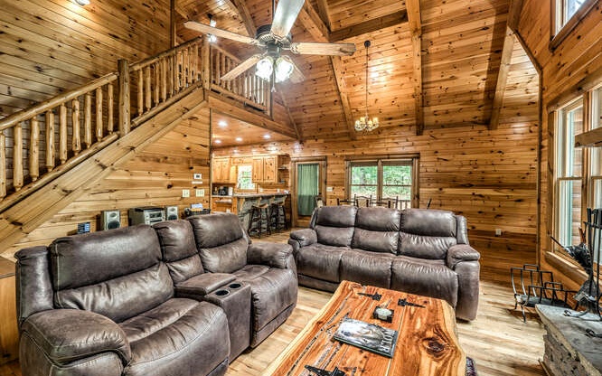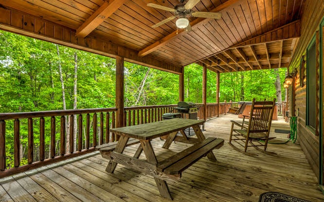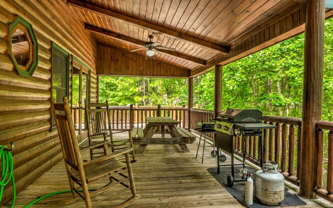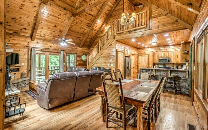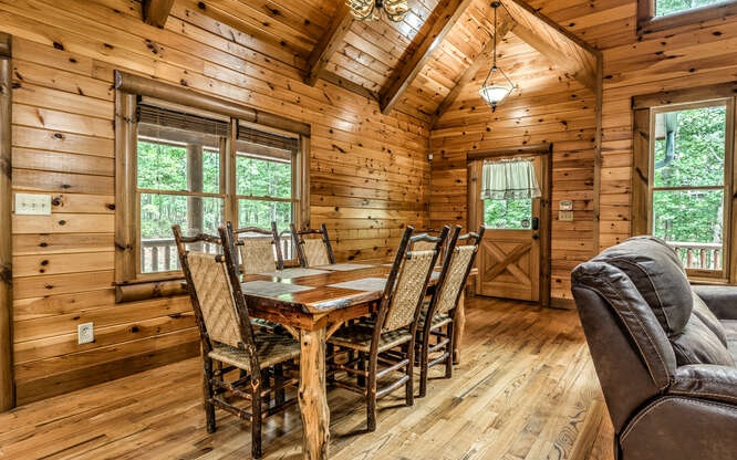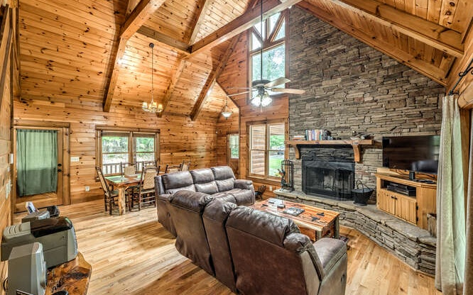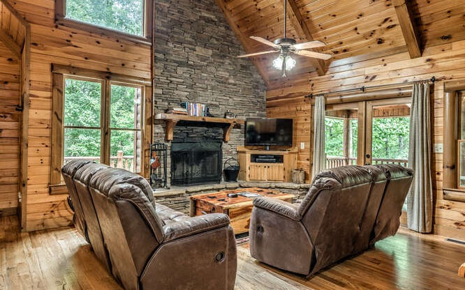 Are you longing for the Peace and Tranquility that the beauty of mountain living offers?-Then long no more with this spectacular rustic mountain dream home including a great room complete with cathedral ceilings and a stone fireplace. This spacious 2 BR (with an unfinished bonus room, possible BR) 3 BA home comes completely furnished as it sits and offers you the luxurious decision each morning of which deck, porch, or patio you'd like to drink your coffee in the quiet stillness. The main level offers a huge covered porch (perfect for entertaining, grilling or enjoying a relaxing soak in the hot tub), a wrap-around deck. The upper level offers you a dreamy covered porch (which could easily be screened) with private access from the bedroom to savor the serene setting of the perfect location for a hammock or just rocking in rocking chairs until your heart's content. Exit the bedroom into a private bath and office/library. The bottom level offers you a concrete all-purpose patio off the family room/game room with its own ext doors for more ease of access. The generous 2.21 wooded acres has lots of level parking with plenty of turn around area for you, your guests, or tenants, along with plenty of room to add a garage or workshop should you desire. Conveniently located to Blue Ridge (Blue Ridge Lake), Blairsville (Nottley Lake) & Murphy NC and all that the scenic tri-state area has to offer. Truly a "safe haven" from the chaos of our busy world!