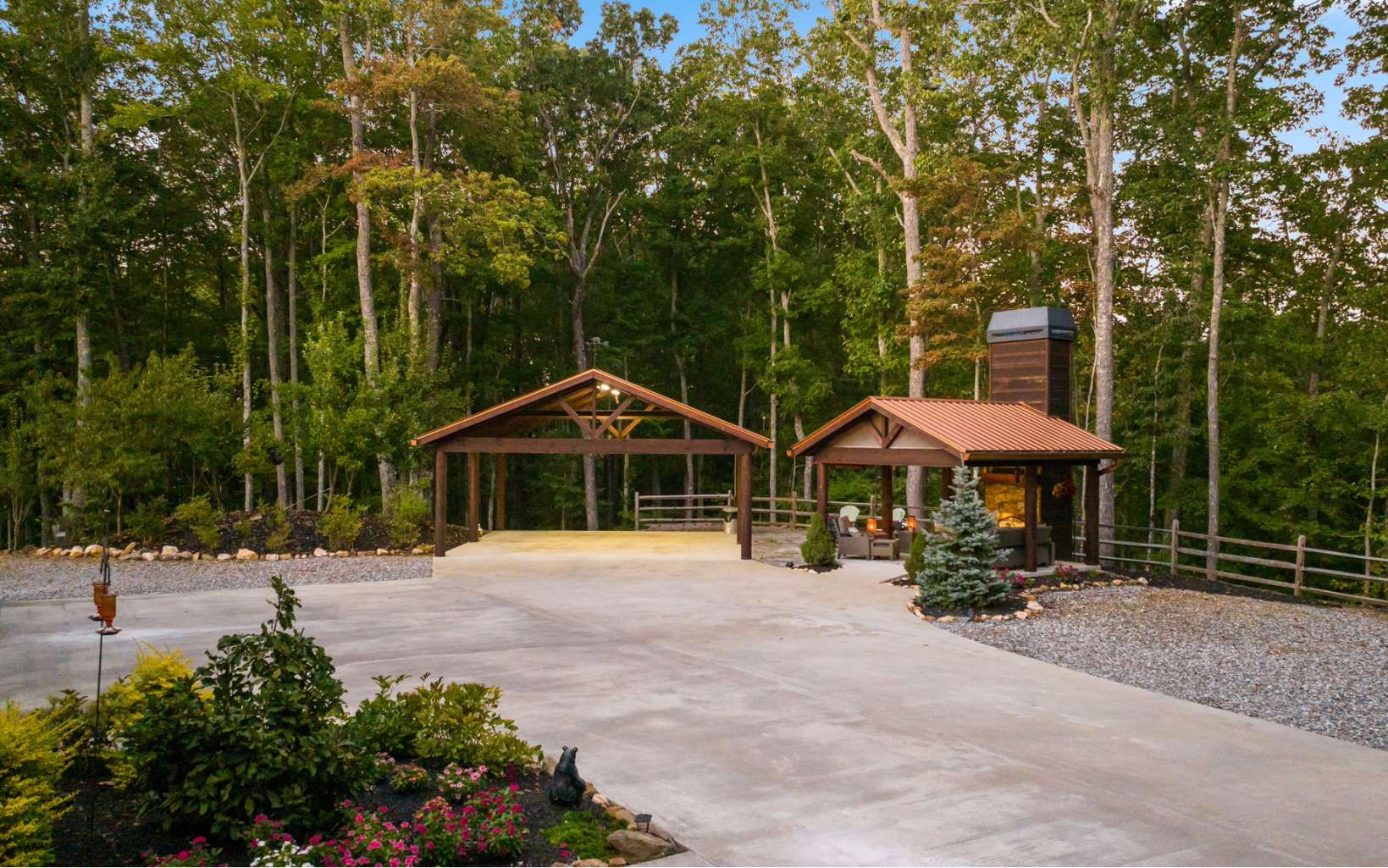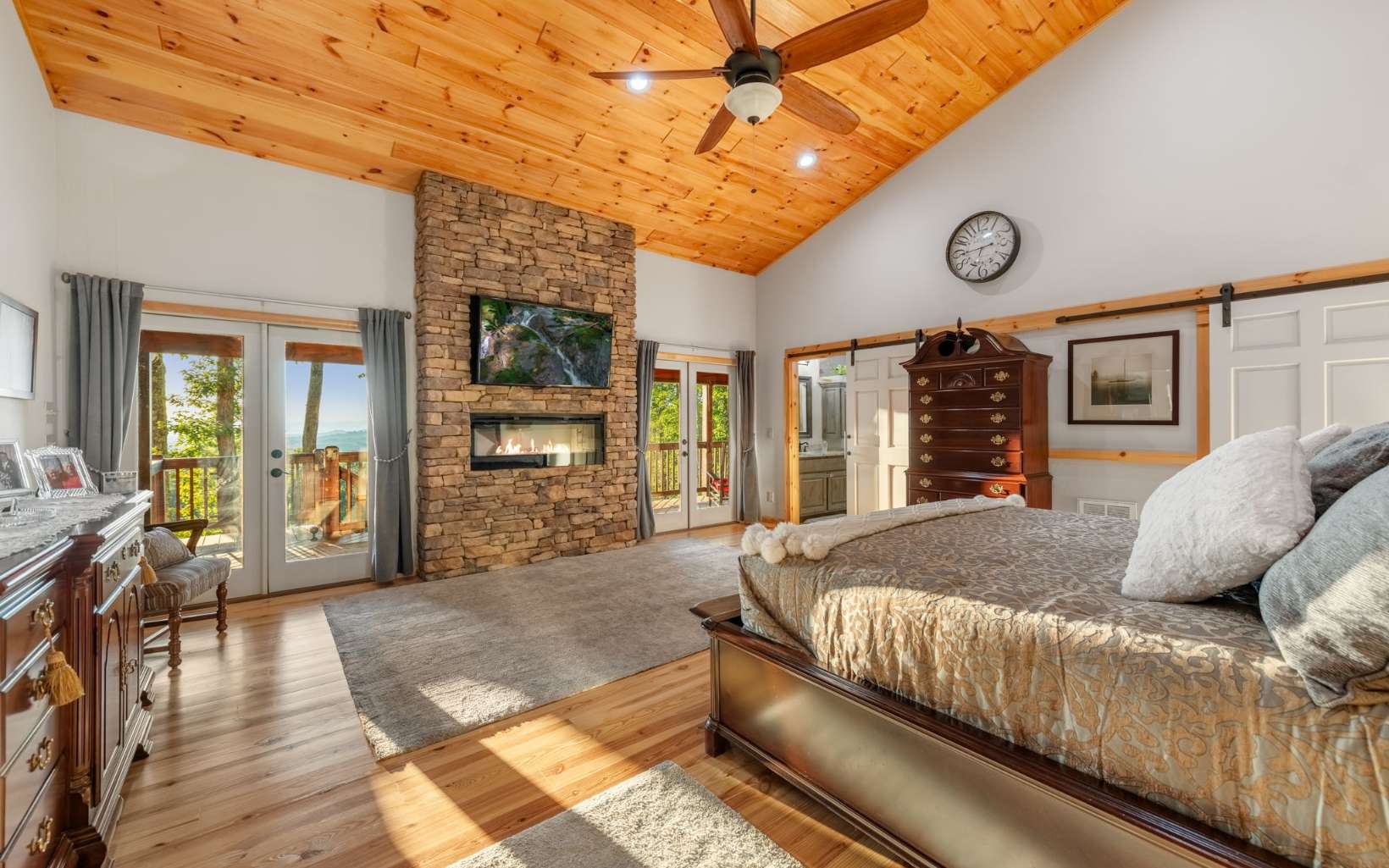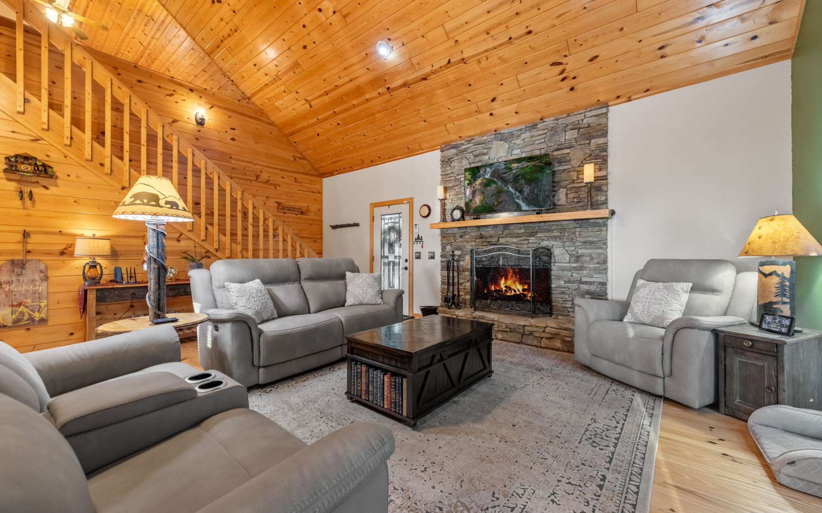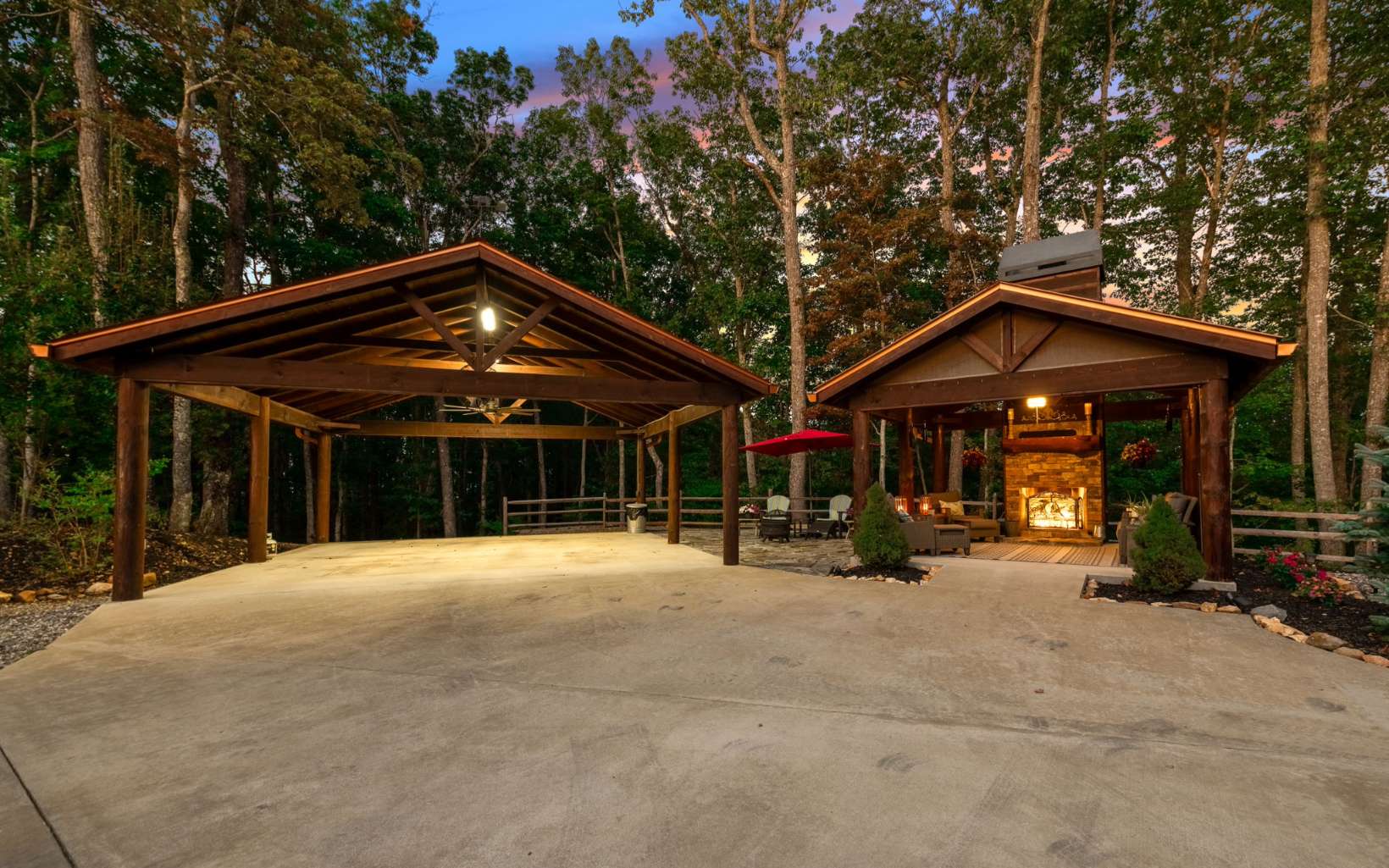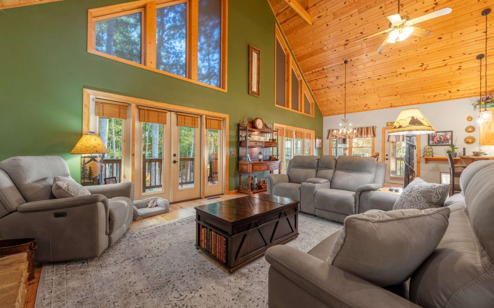 Uncover the secluded gem in this Long Range Mountain View + Unrestricted Property. Nestled on 15 acres of natural beauty, this extraordinary 3br, 4ba cabin offers a serene retreat. The meticulously maintained exterior and landscaping create a captivating first impression. Relax in the private patio with a fire pavilion and a 2+ car carport, adding to the enchanting atmosphere. Inside you will feel the warmth and functionality of the open concept living space. The stunning kitchen showcases modern countertops, high-end appliances, and a spacious pantry, ideal for hosting gatherings. On the main level, the primary bedroom includes a fireplace, a lavish ensuite bathroom with granite counters, exquisite tiled showers, heated floors, and access to the main porch. Additionally, there is an upgraded laundry area and a designated office space. On the upper level, you will find a luxurious master suite with a recently renovated shower, stunning Italian flooring, and granite countertops. The terrace level offers a bunk room, bedroom, and full bathroom. Additionally, there is an outdoor garage with heating and cooling equipment. Noteworthy features include an expansive 80-foot deck perfect for enjoying mountain sunsets, 2.5 car garage, newly installed air conditioners, a whole-house generator, a water well generator, a saltwater hot tub, extra storage space above the garage, and energy-efficient solar panels. This property is an excellent investment opportunity near Blue Ridge!