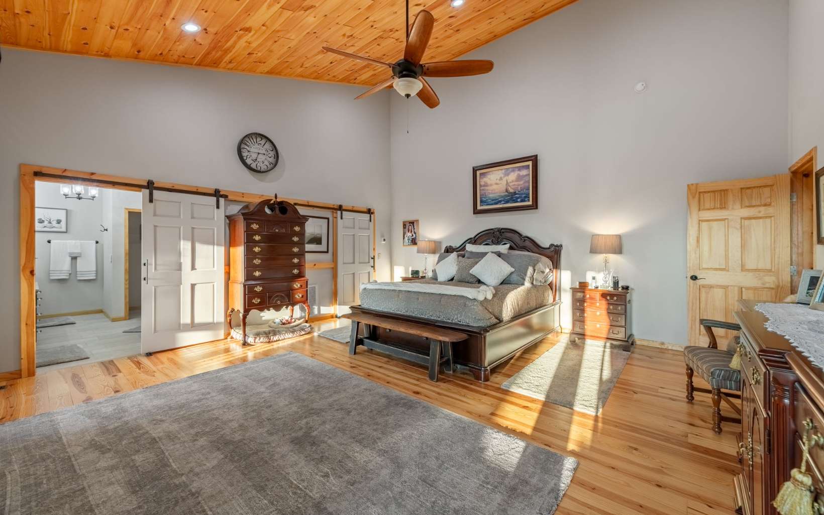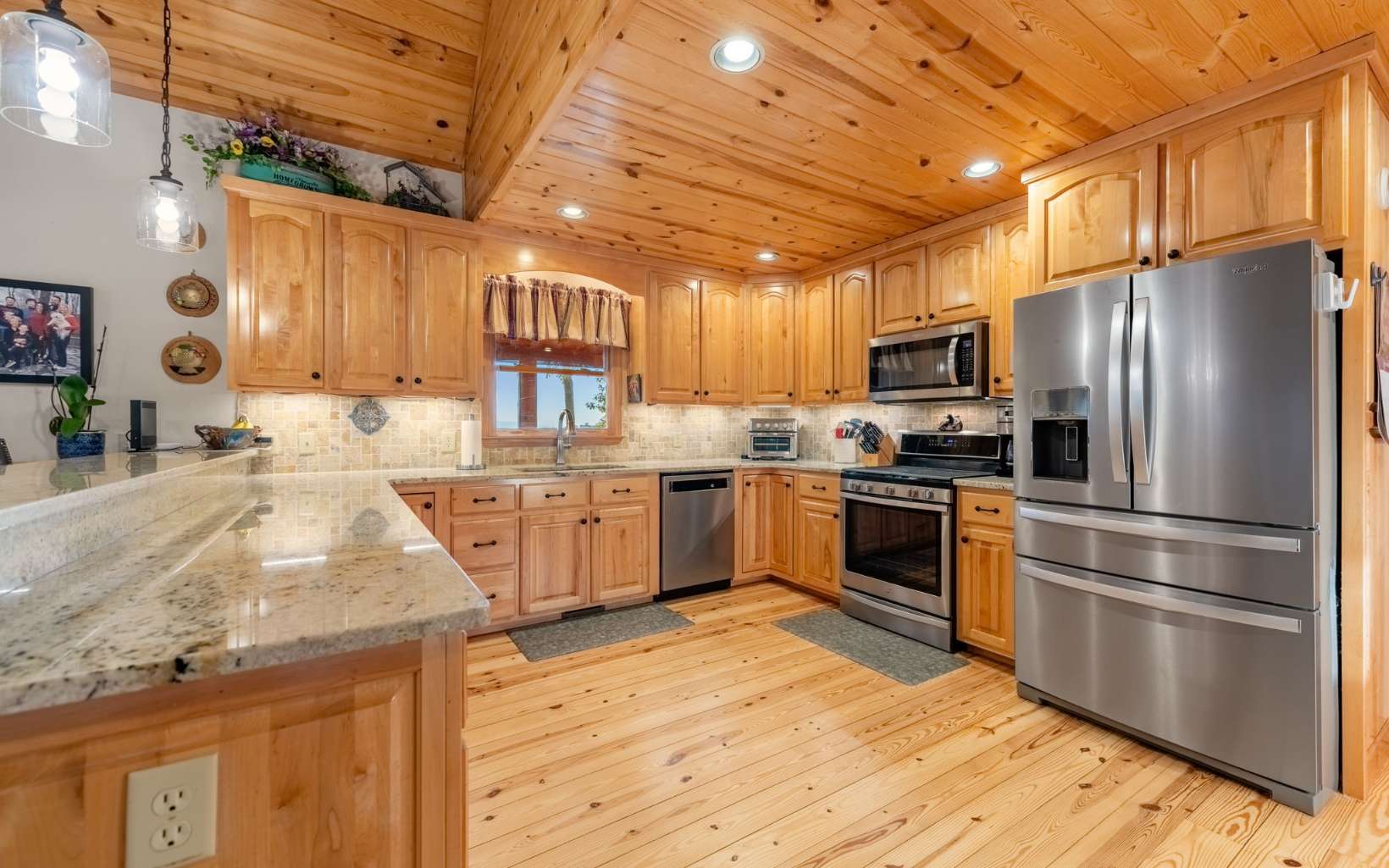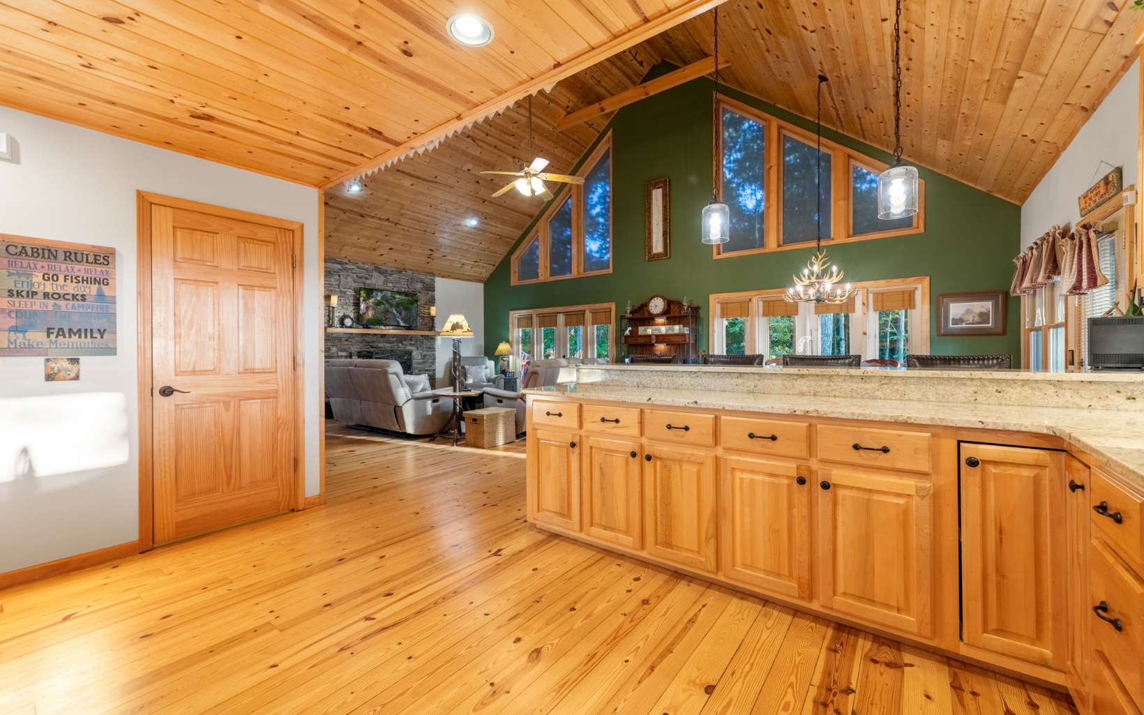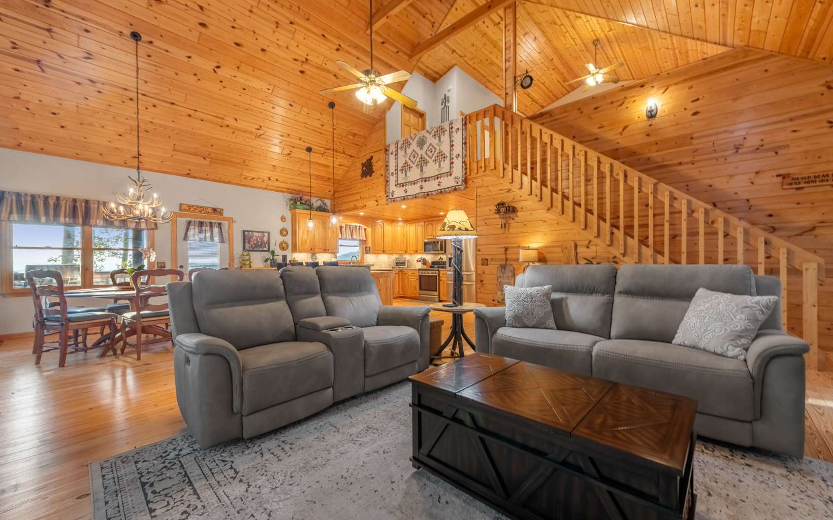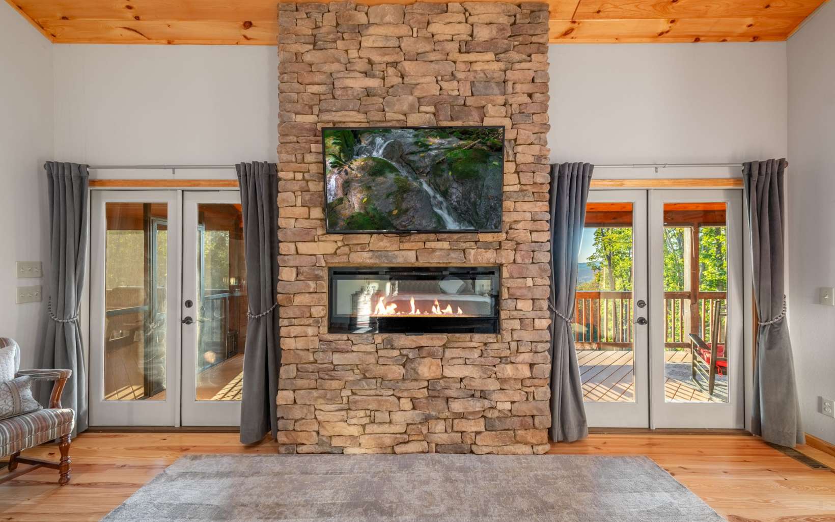 Uncover the secluded gem in this Long Range Mountain View + Unrestricted Property. Nestled on 15 acres of natural beauty, this extraordinary 3br, 4ba cabin offers a serene retreat. The meticulously maintained exterior and landscaping create a captivating first impression. Relax in the private patio with a fire pavilion and a 2+ car carport, adding to the enchanting atmosphere. Inside you will feel the warmth and functionality of the open concept living space. The stunning kitchen showcases modern countertops, high-end appliances, and a spacious pantry, ideal for hosting gatherings. On the main level, the primary bedroom includes a fireplace, a lavish ensuite bathroom with granite counters, exquisite tiled showers, heated floors, and access to the main porch. Additionally, there is an upgraded laundry area and a designated office space. On the upper level, you will find a luxurious master suite with a recently renovated shower, stunning Italian flooring, and granite countertops. The terrace level offers a bunk room, bedroom, and full bathroom. Additionally, there is an outdoor garage with heating and cooling equipment. Noteworthy features include an expansive 80-foot deck perfect for enjoying mountain sunsets, 2.5 car garage, newly installed air conditioners, a whole-house generator, a water well generator, a saltwater hot tub, extra storage space above the garage, and energy-efficient solar panels. This property is an excellent investment opportunity near Blue Ridge!