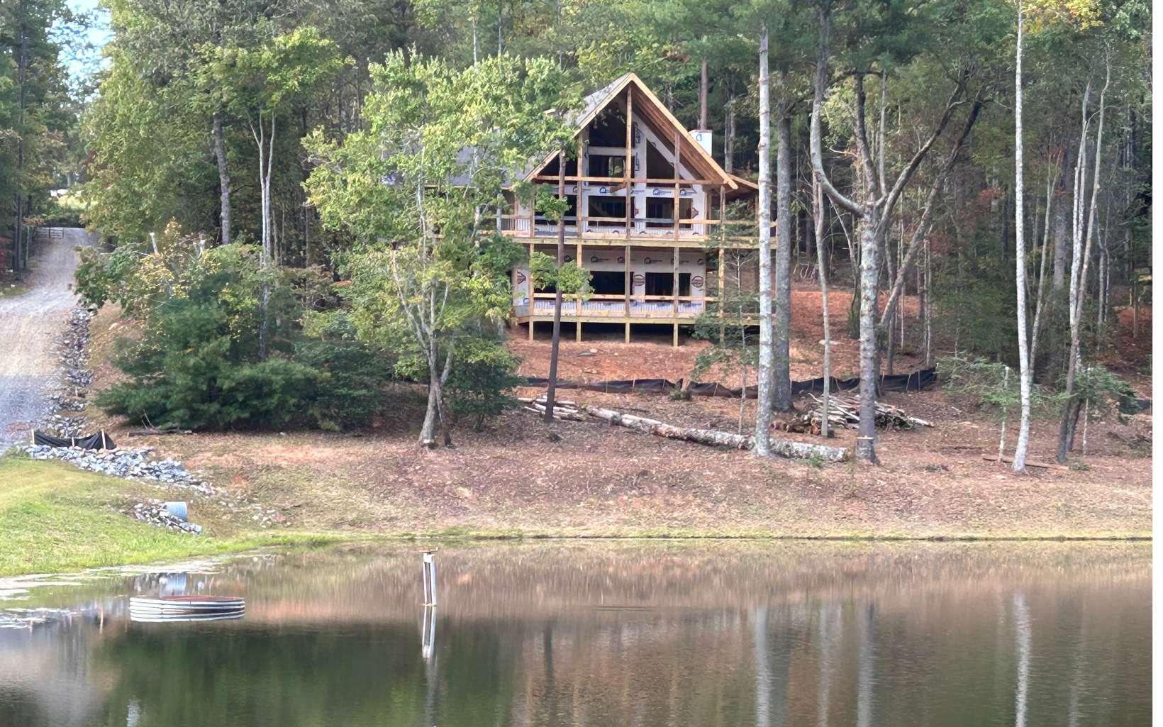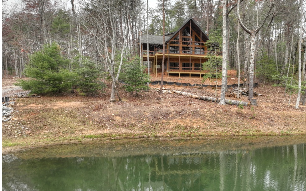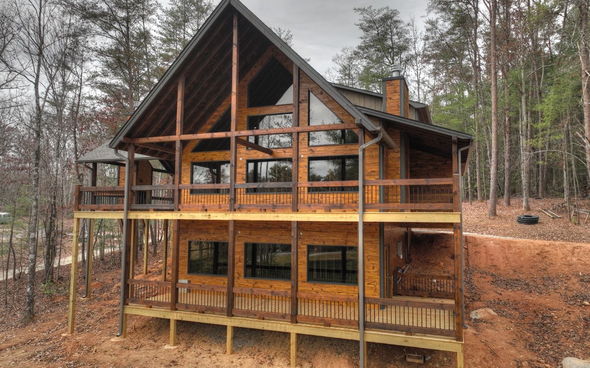 Brand New "DIAL LAKES" 4-Bdrm CHALET w/Beautiful MOUNTAIN & LAKE VIEWS (Frontage on DIAL LAKE with a DOCK on a Level Shoreline). Only about 3 miles from Morganton Point on Lake Blue Ridge w/Plenty of National Forest and the Upper Toccoa River to Explore. (About 6 mi from Ingles) Beautifully Designed Extended Gable "Roof Over" Front Porch. Entry Exterior Fireplace Party Porch leads into a Spacious Great Rm w/GLASS WALL Chalet on the Lake. MAIN LEVEL HUGE MASTER Suite w/Well Appointed Master Bath. Main Level Guest Half Bath/Laundry. (2) Upper Level Guest Rms w/Full Bath w/Full Tile Shower. Finished Terrace Level w/BONUS Family Rm featuring a Gas Log Fireplace & Wet bar. 4th Bedroom & Full Bath. Interesting Rustic Appointments (Wainscoting, Live-Edge Accents & Cedar Shake Gables). Time to Customize w/Non-Refundable Construction Deposit. Granite Countertops, Custom Tile Showers & Backsplash, Flooring etc. STR permitted.