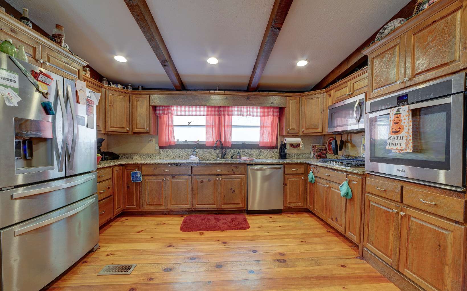 This freshly remodeled, 4 bedroom 3 1/2 bath, home has plenty of room to grow. Living room and den both have rocked gas log fireplaces, wood beams and vaulted ceilings. Seller has added wood wainscoting and textured sheetrock through out the entire home. Interior doors are solid wood, not the typical hollow core doors. There's more than enough space for parking and there are 2 septic systems on the property. The lower portion has a park like feel and lots of creek and a place for a camper to be parked already set up. Newer HVAC and metal roof already in place. Sold furnished except for some personal items.