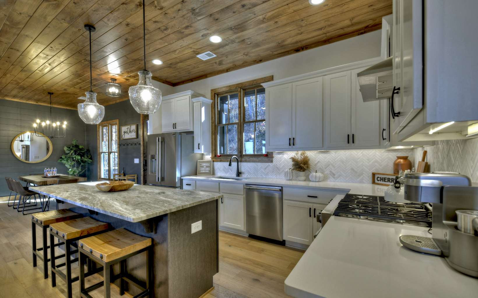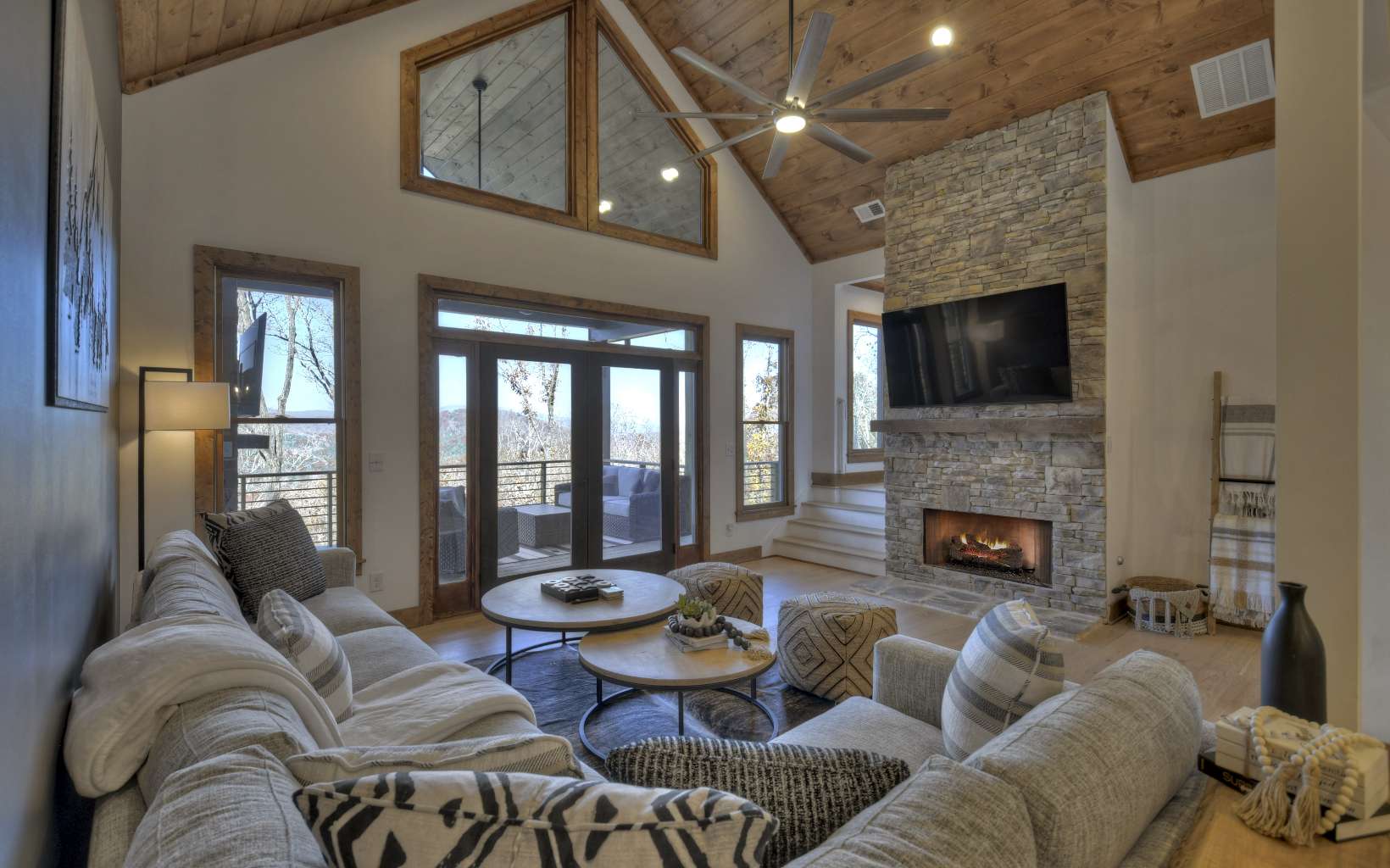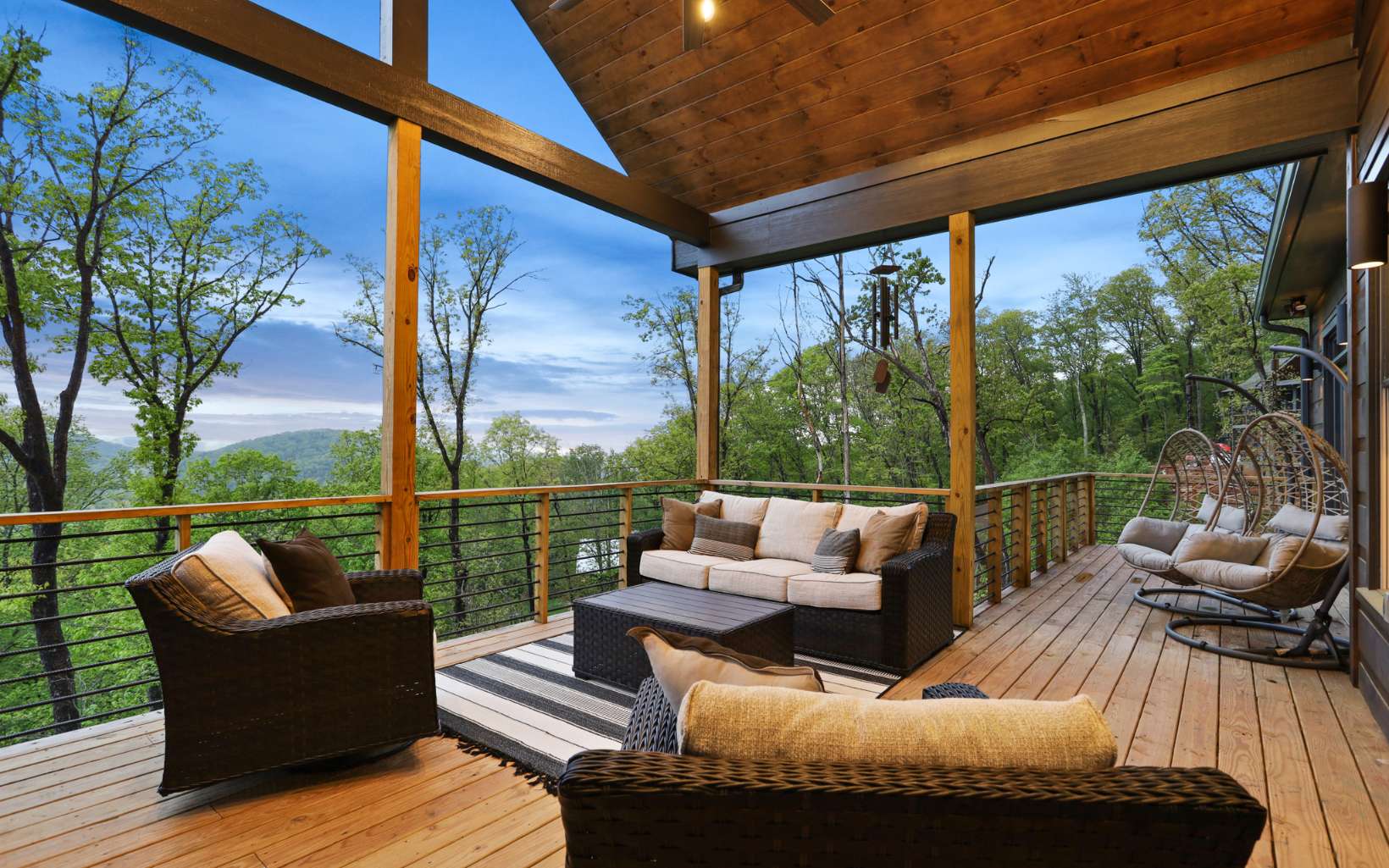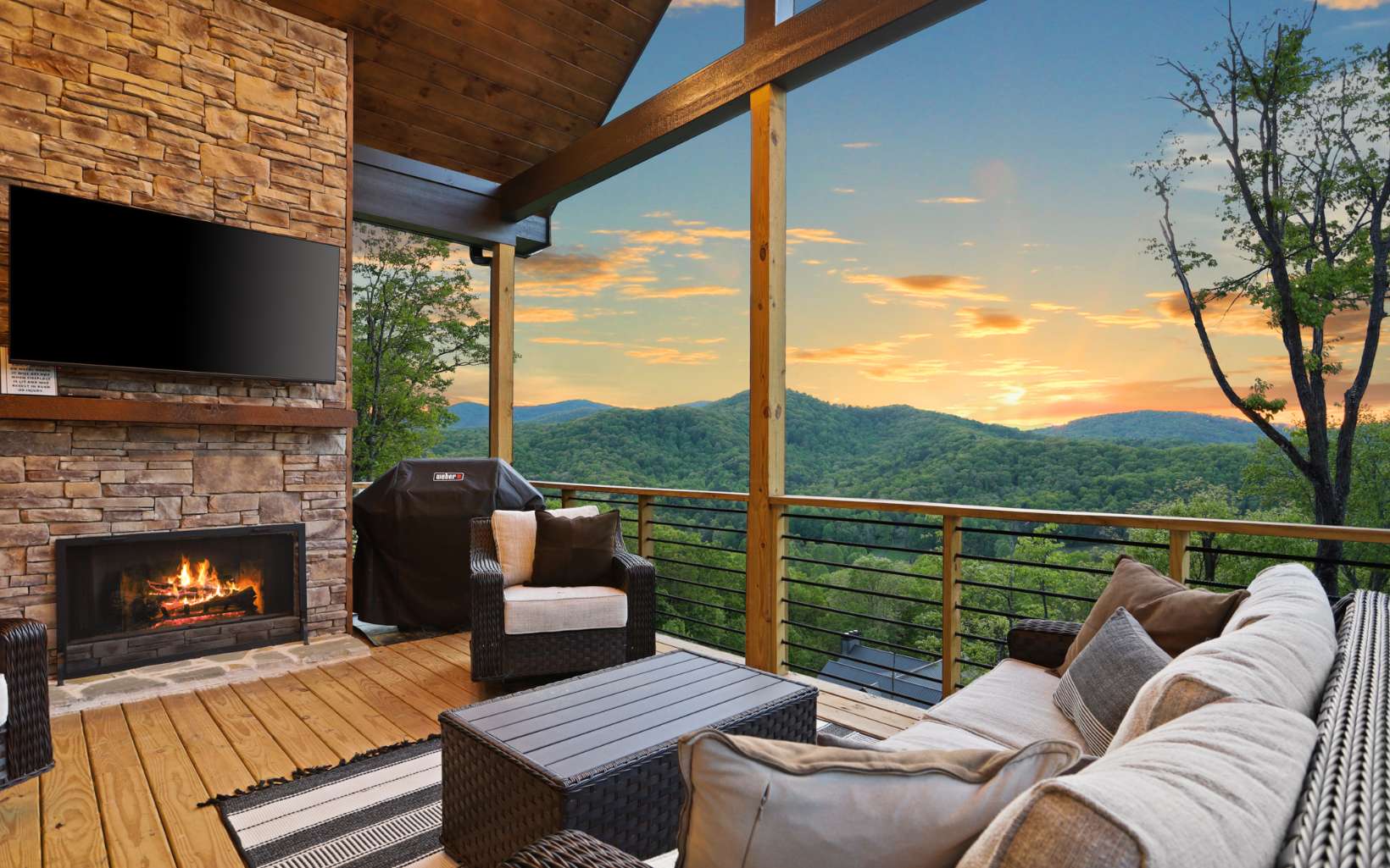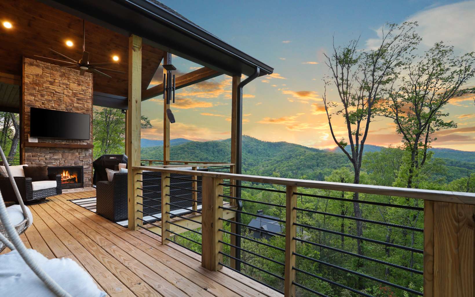 Luxury mountain escape with STUNNING, unobstructed SUNSET VIEWS overlooking the Cohutta Wilderness! Small, upscale gated community with all paved roads, underground power and fiber internet. Professionally designed with high-end finishes and upgrades throughout, with an open concept floor plan that features vaulted ceilings and floor-to-ceiling windows to take in the incredible long range views. Meticulously maintained 4 bedroom, 4 bath plus additional sleeping loft with wow factor views from every room! Well-appointed chefs kitchen with separate dining area for large family gatherings. Plenty of outdoor entertaining areas including oversized covered porch off great room featuring a must-have outdoor fireplace and dining area overlooking one of the best views in Blue Ridge!. Terrace level features 2 additional guest suites, wet bar, game room and additional covered porch area with hot tub. Whole house water filtration system. Top of the mountain with plenty of parking, perfect for luxury rental program, full time living or much needed mountain getaway. Scenic drive conveniently located to historic downtown Blue Ridge, as well as, hiking, trophy trout fishing, Lake Blue Ridge, horse back riding, shopping, dining and more!
