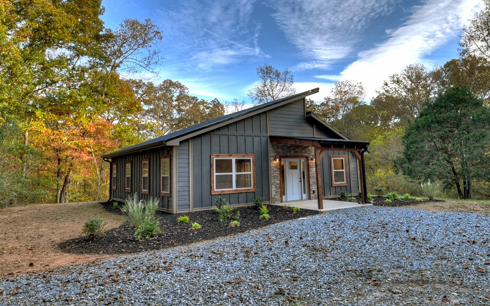 Sizzling with style this newly constructed contemporary charmer showcases designer finishes inside and out. This home features a blend of modern mountain textures that include wood, drywall, stone, tile, & granite, and they are complemented by modern fixtures throughout. This home is one level and offers two bedrooms; one bathroom with a double vanity and spacious custom tile shower; open living room, kitchen & dining area with soaring ceilings, and laundry. You’ll also appreciate the finishing touches such as custom cabinetry with granite countertops, easily maintained yet eye-catching landscaping outdoors, and more. Less than three miles from downtown Blue Ridge, you’ll appreciate the perks of in-town living and all paved access, yet you’ll feel privately tucked away within your 2+ acre lot. The level terrain outdoors allows plenty of parking and room for future property enhancements. Move-in ready this cozy retreat is ready to be your new home sweet home!