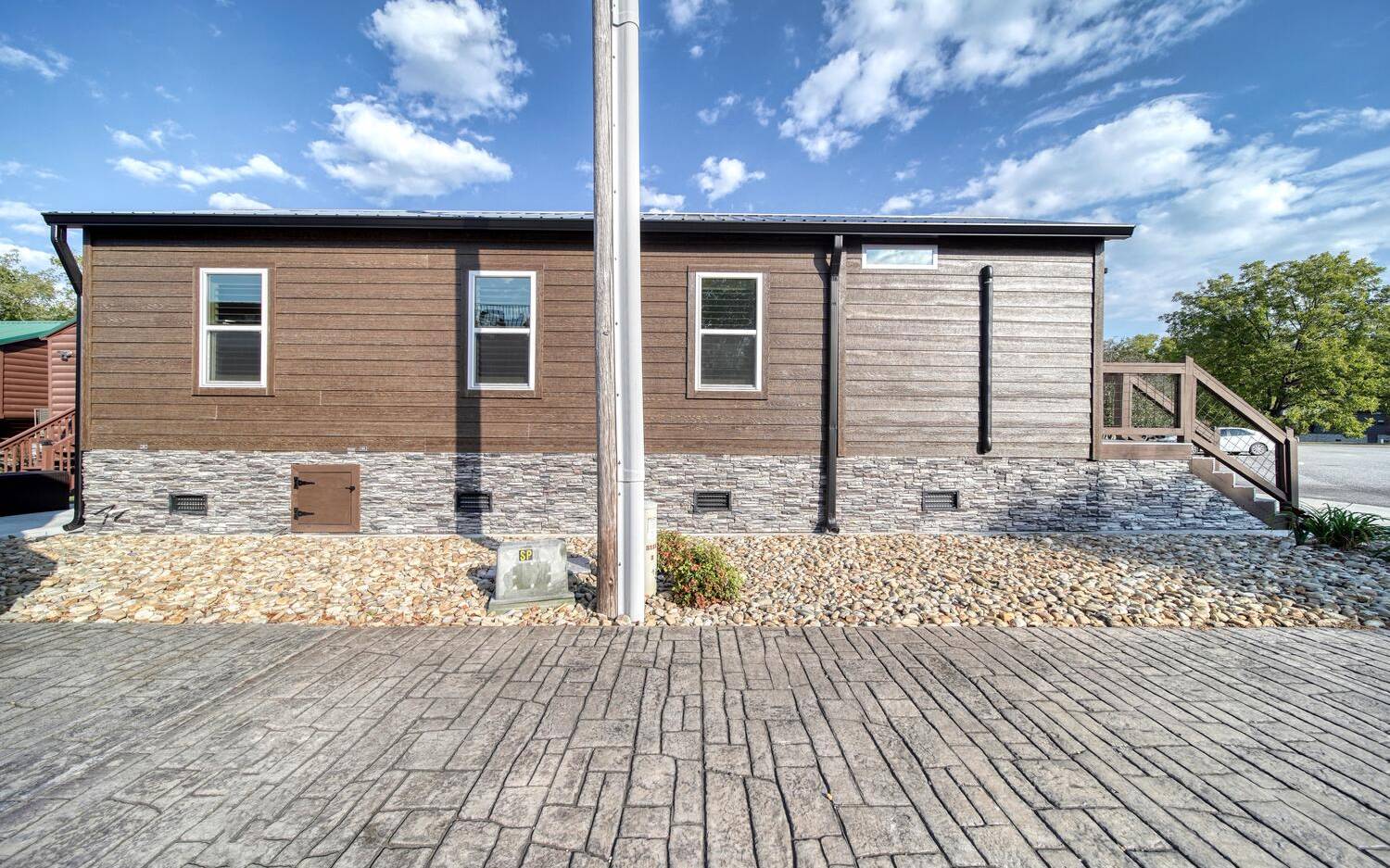 BETTER THAN NEW! Stone Canyon park model! HIGH CEILINGS, QUALITY window coverings, conveniently, located close to a multitude of fun amenities, the entrance and town! Ample parking, hardy plank siding, METAL ROOF, winter insulated package for comfort and affordability, expansive cement driveway, enclosed porch, makes for more spacious living, attractively enclosed crawlspace. Room to park 40’ RV with hook ups. Beautifully finished, insulated HE/SHE SHED with heating and Air. Please see list of FEATURES in Docs. Come, enjoy the pool, gym, pickle ball, sauna and spa to mention a few in this fun and friendly neighborhood!