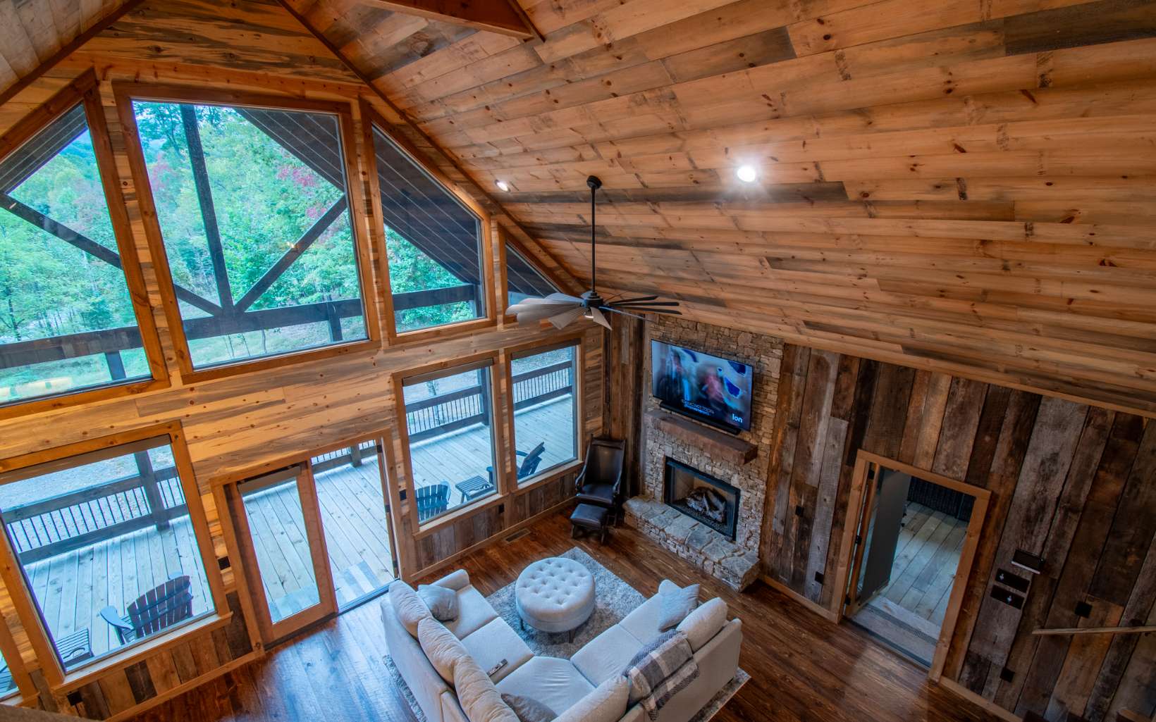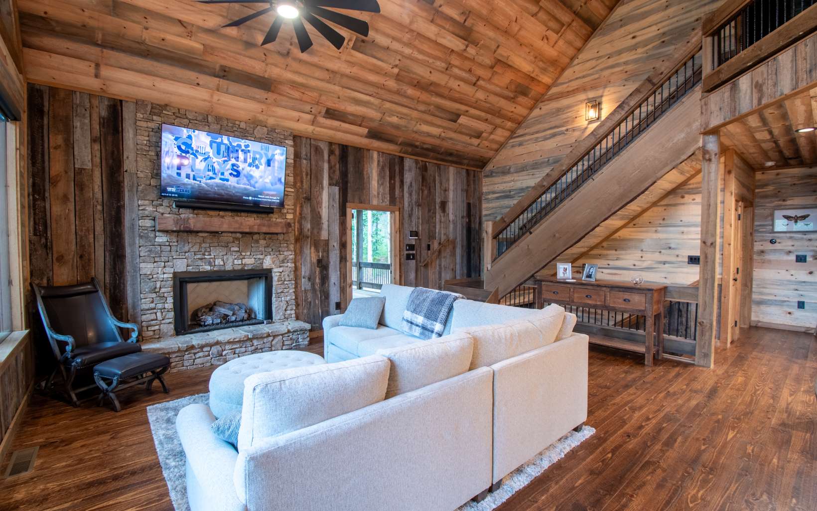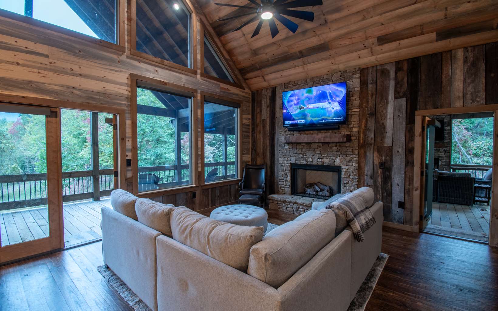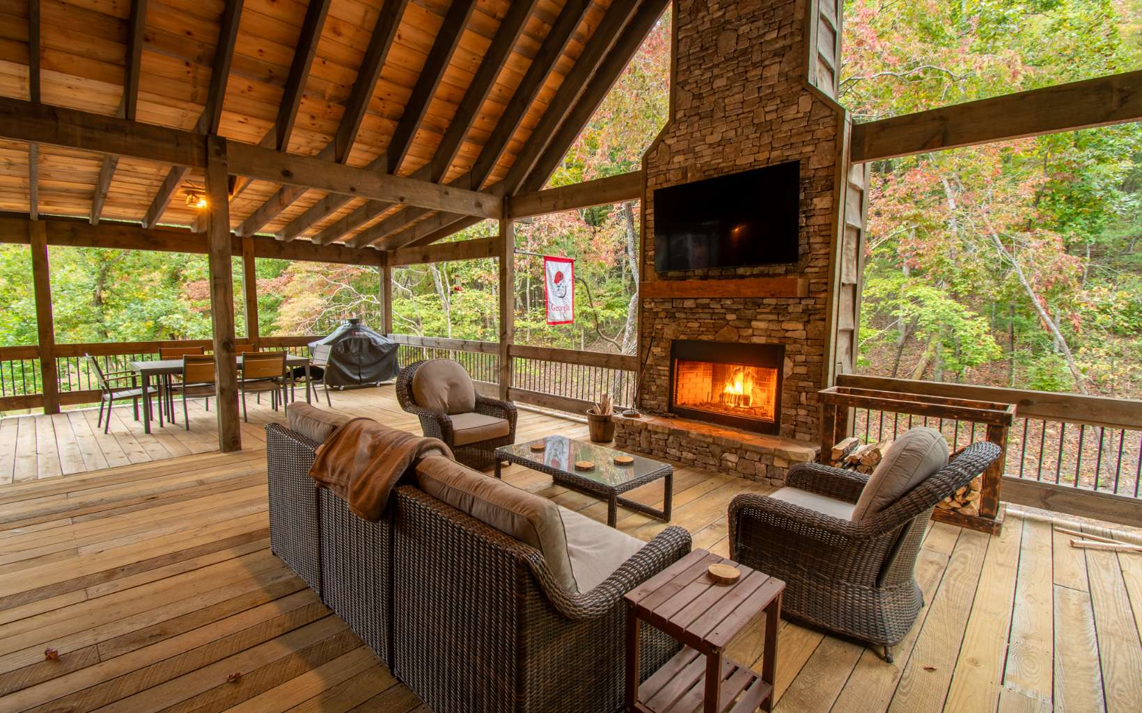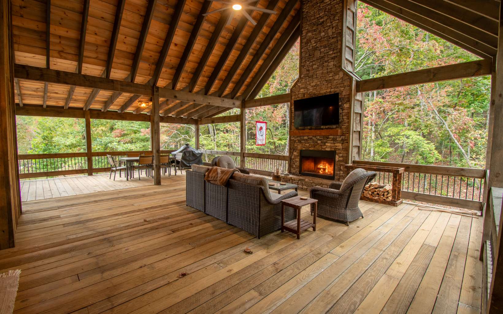 Once in a lifetime opportunity to own this brand new masterpiece private retreat nestled in the Cohutta's. Priced below market ready to move. This master piece has a party porch you will never see again that measures 52 ft x 35 ft with vented stacked stone fireplace, once you see this party deck all covered with cathedral ceilings you will have to have it. And the adjoining back deck with second dining area. Two more stacked stone fireplaces on the interior on main floor and lower level. Gourmet kitchen with all top of the line Kitchen Aid appliances, wide open kitchen to dining room. Brand new top of the line Speed Queen washer and dryer on the main level. Upstairs, boasts a balcony loft, a large master suite with custom master bath and closet. Entire home furnished with all new furniture from Town and Country in Blue Ridge available on separate bill of sale. All of the extra's no room left to list. Blue and buggy wood, reclaimed barn wood just a few of all of the variety of woods from the exterior throughout the interior.