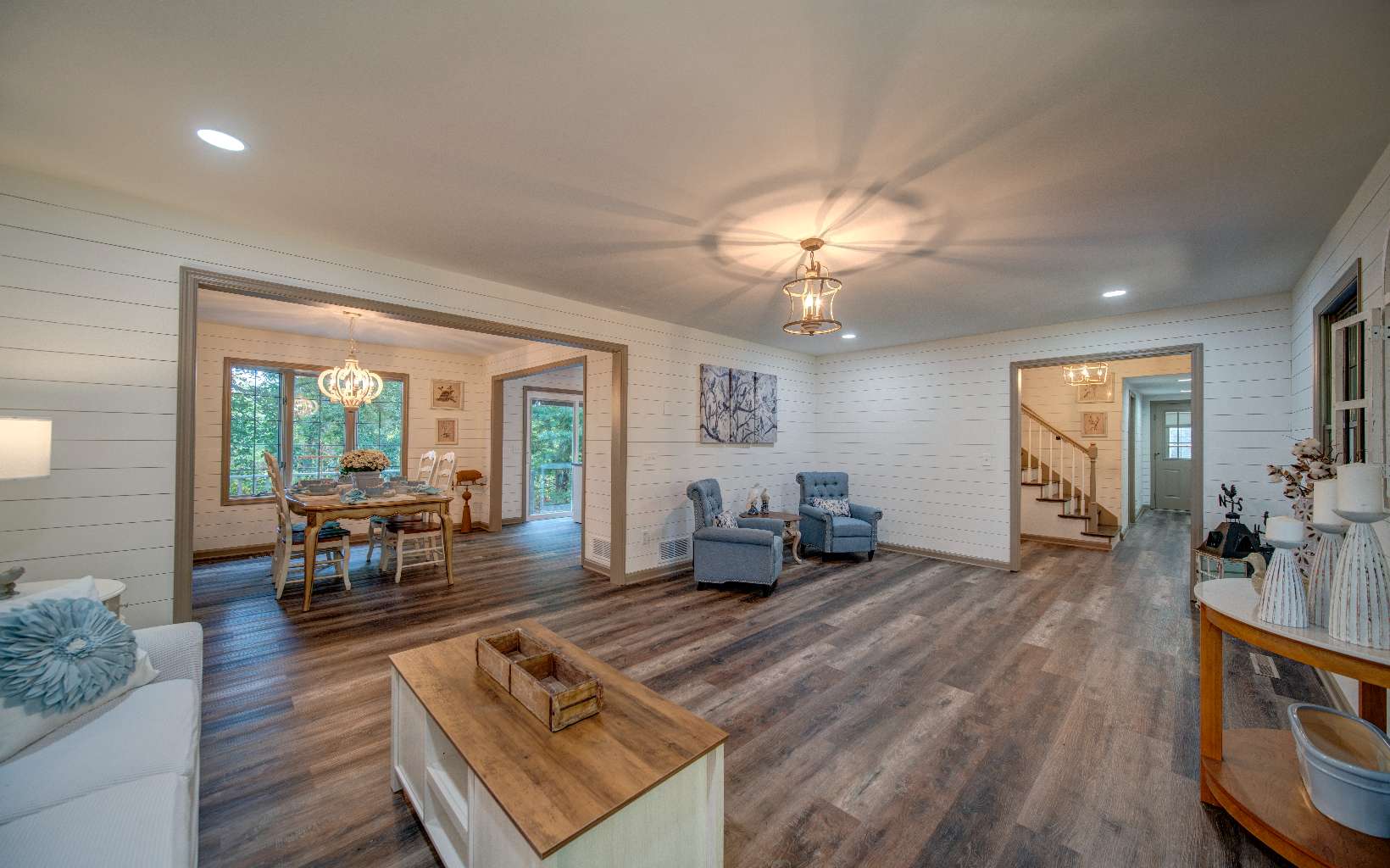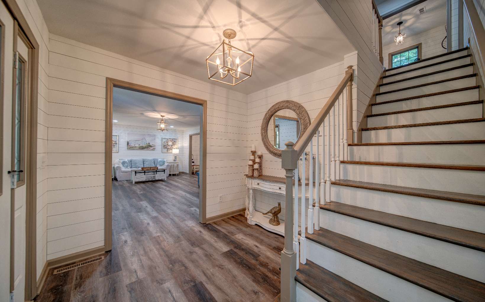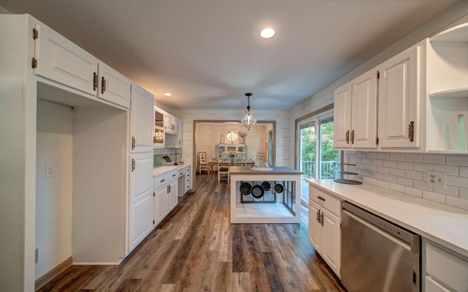 BEAUTIFUL just renovated modern farmhouse conveniently located within walking distance to popular events on Main Street yet located at the end of a quiet single street cul de sac. This roomy home offers 2 large ensuites, an in-law or income producing basement apartment with efficiency kitchen and private entrance, an additional bedroom with huge closet upstairs and 2 additional flex rooms to accommodate a large family. The gorgeous modern bathrooms attached to the primary suites are huge and amazing and total number of bathrooms is 4 1/2. The farmhouse features a large kitchen with a wonderful walk in pantry, quartz countertops, gas range, herb window and a large island that can moved around where needed. A separate dining room with a large bay window for picturesque seasonal mountain views. Luxury vinyl plank flooring and shiplap walls throughout. Laundry on the main with lots of cabinets and closet space. Two new HVAC systems and water heater recently installed. Great workshop and storage building for all your outdoor needs in the backyard and a workspace and storage area in basement. Wait 'til you see the massive wrap around porch that ends in a private oasis complete with swing bed and curtains. Underground utilities. You'll love the convenience of deliveries to your front door from local stores and restaurants. If you love the decor of this incredibly designed home, most items are available to be sold with home.